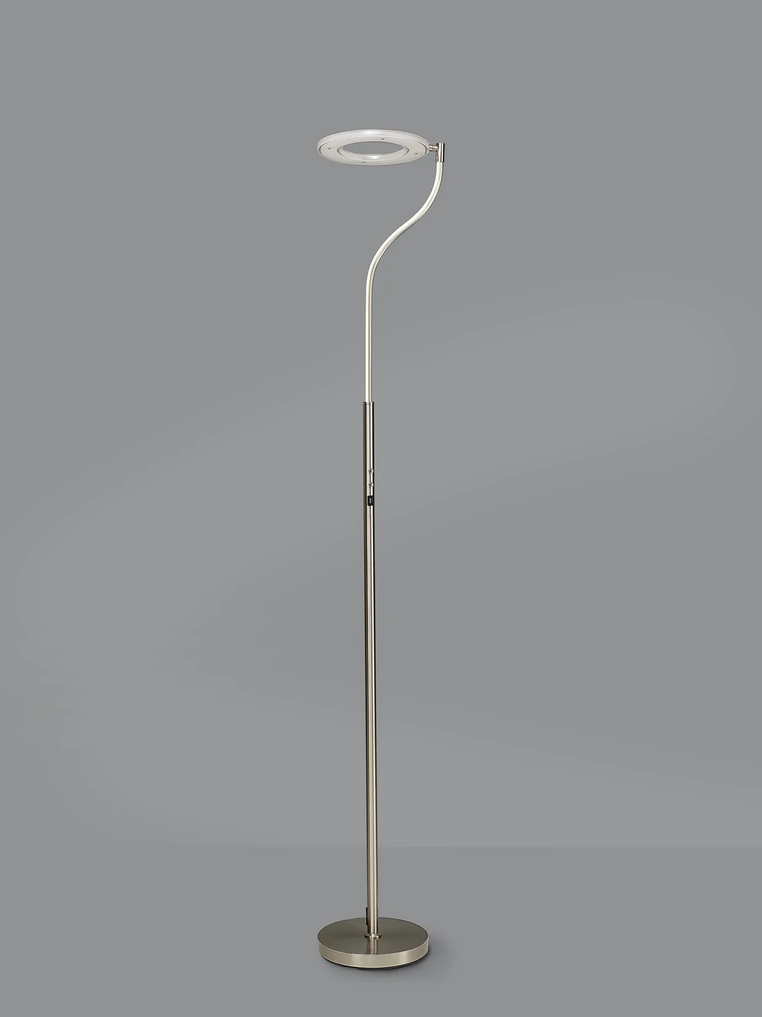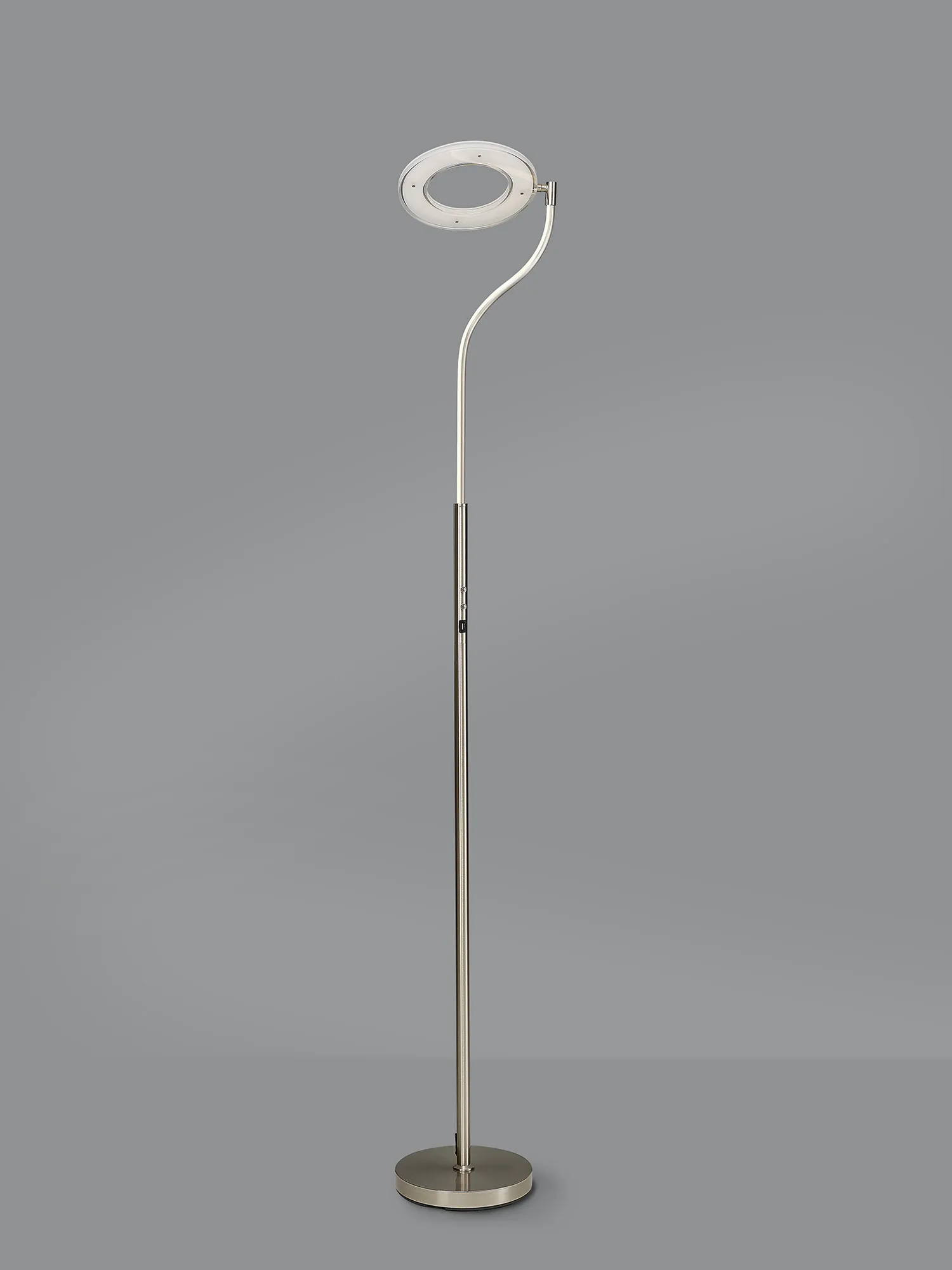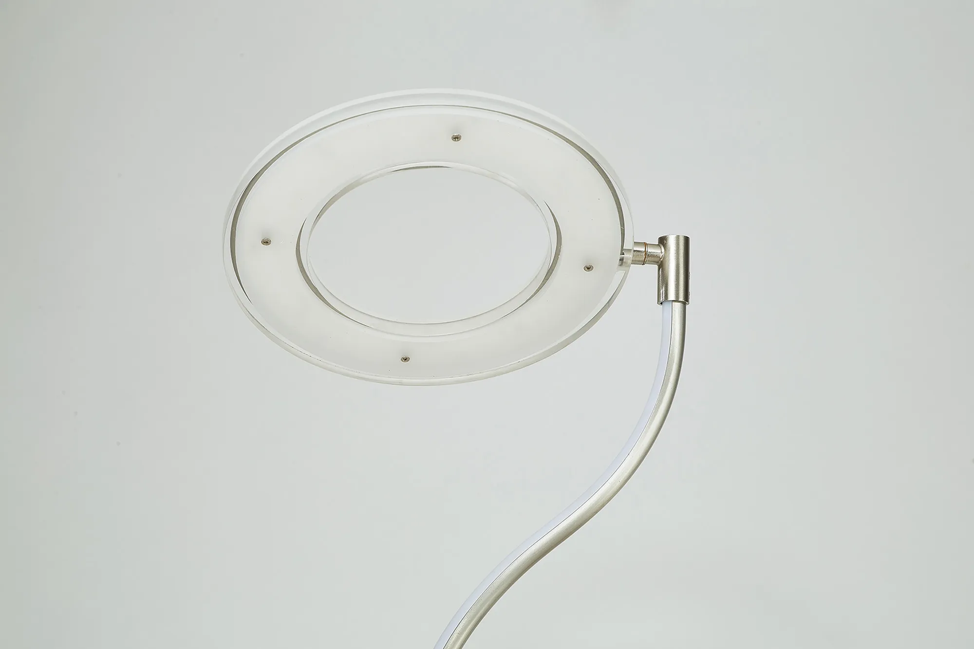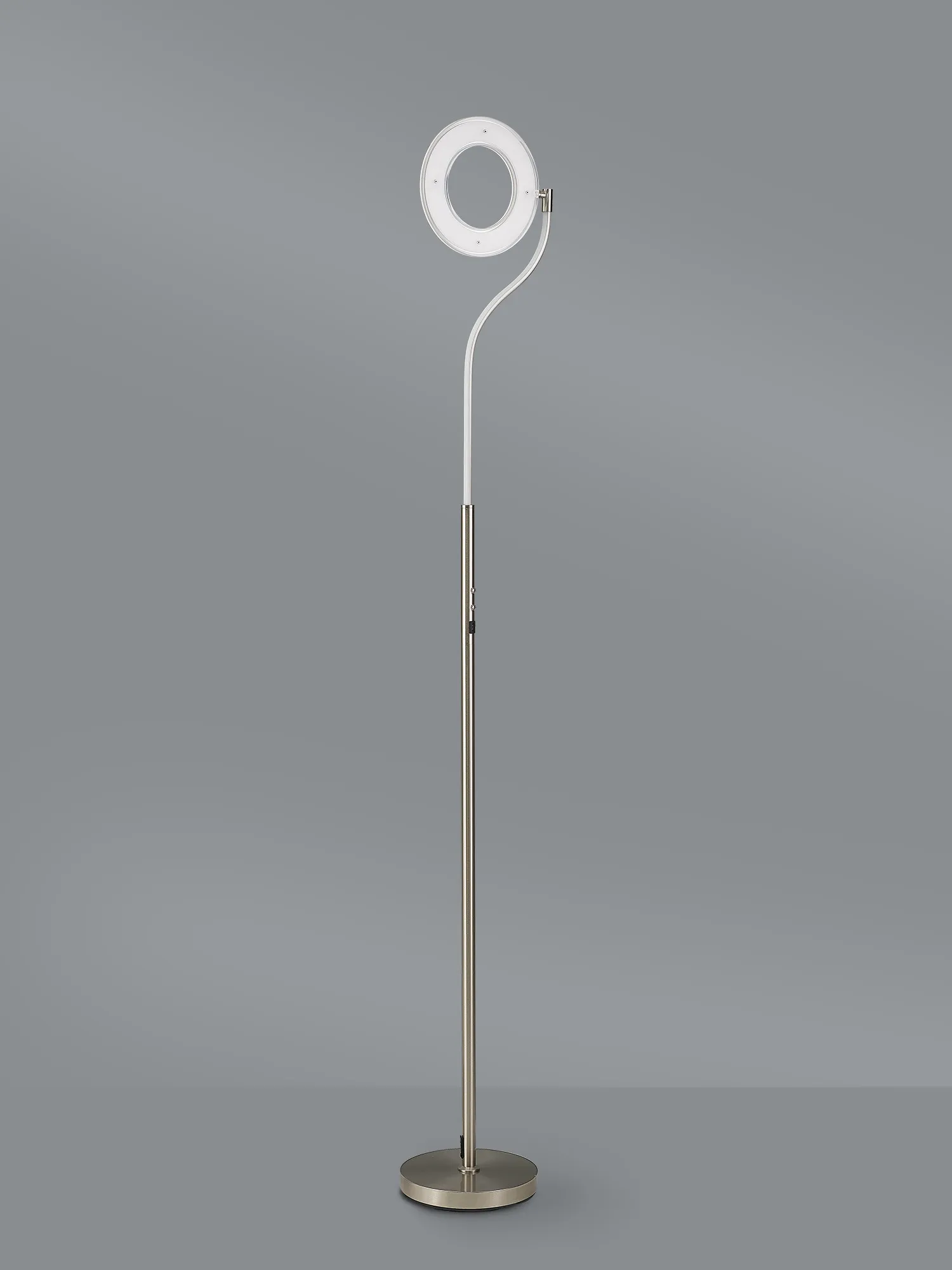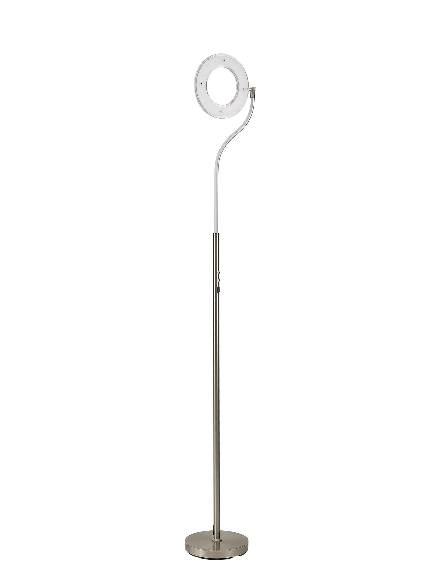 The Kimberley floor lamp collection is a new modern, sleek design. Available in two colour finishes; satin gold and satin nickel, it compromises of a slim stem leading into a halo shaped housing of the integral LEDs. The LED head has the ability to pivot creating a uniqueness and exclusivity as well as heightened control of the lights directionality. To even further amplify the range's appeal, the floor lamp also includes a touch dimmer feature and USB charging ports.