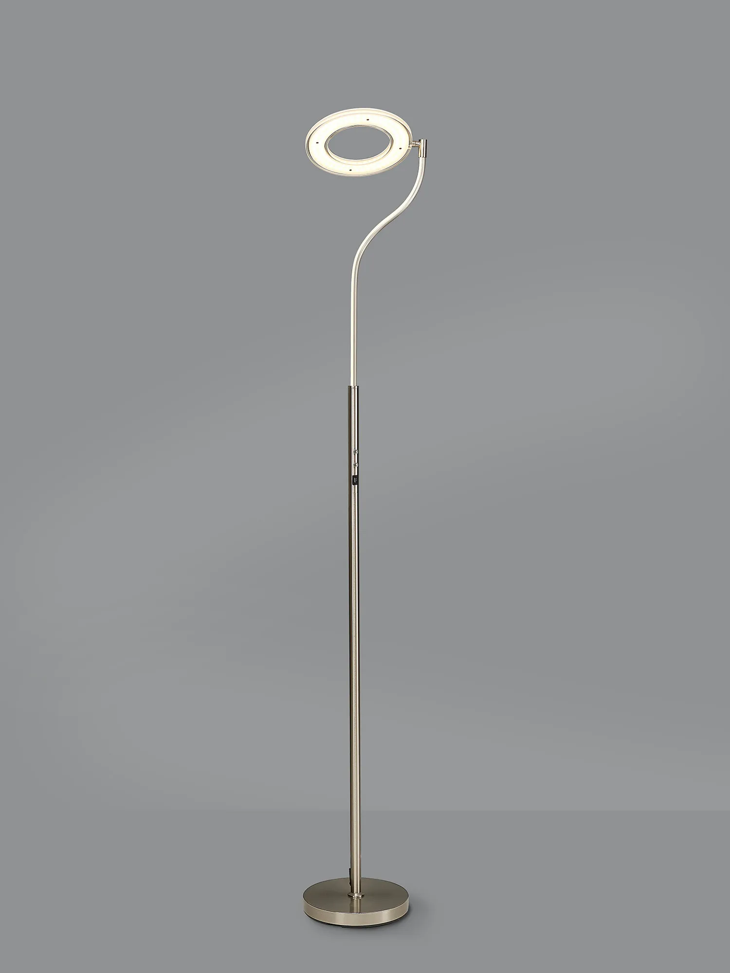 Kimberley 2 Light Floor Lamp With USB 2.1 mAh Socket, 18+7W LED, 3000K Touch Dimmer, 2500lm, Satin Gold, 3yrs Warranty