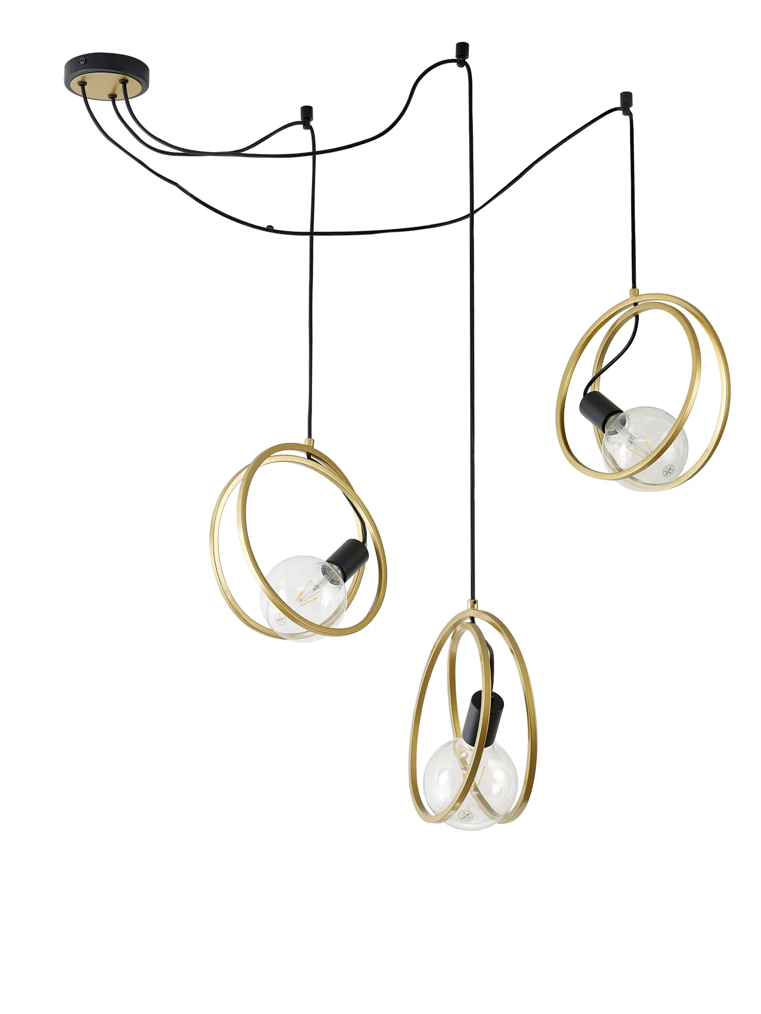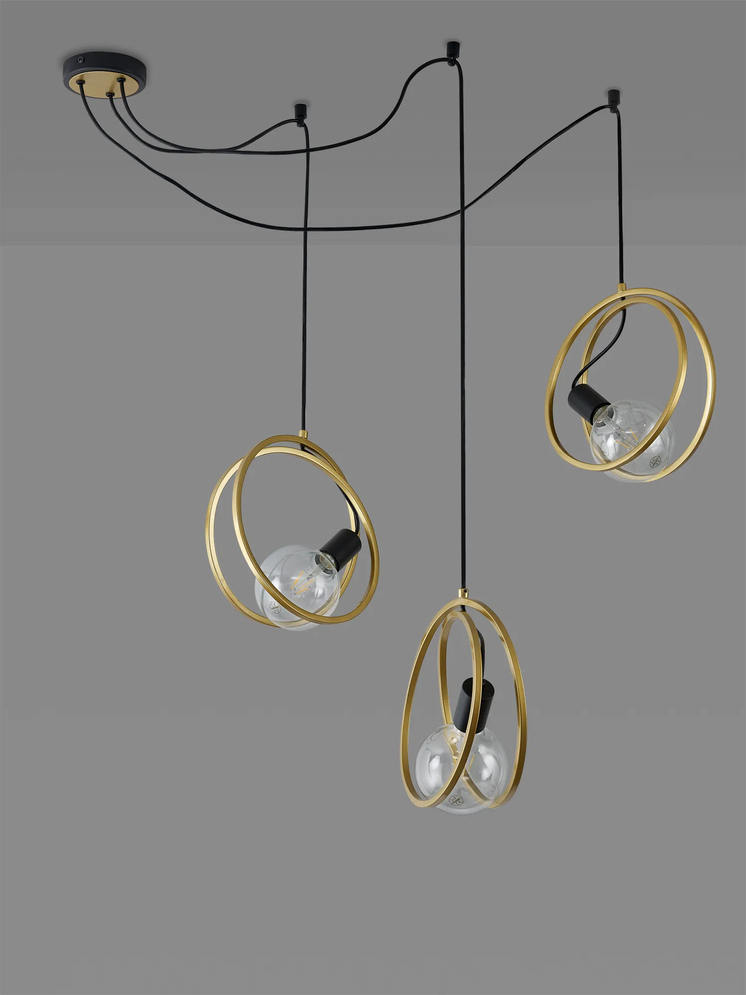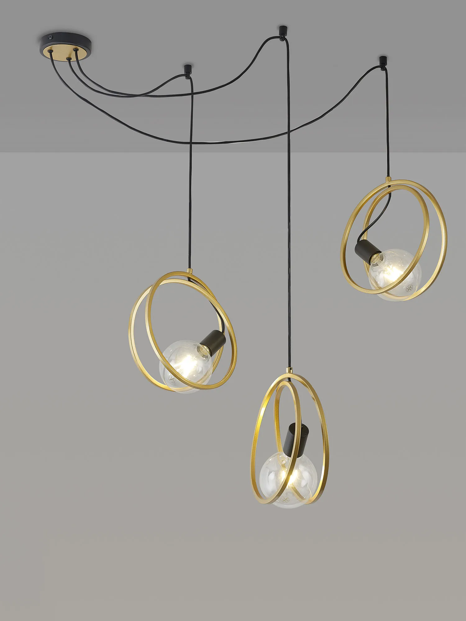 Langford is a fully comprehensive range of modern lighting. The elegant bands of painted gold Rings encircle the E27 lamp holders and are perfectly offset against the matt black framework, an appealing combination that is becoming increasingly popular. The Rings are set in paired rings to create a more substantial three-dimensional form. A wide variety of fixtures meet the specification needs of any setting from flush ceiling lights, round and linear pendants to a wall, table and floor lamp. One pendant within this range allows for the suspensions of each of the three drops to be fixed at various points along the ceiling allowing you to create your own bespoke look.