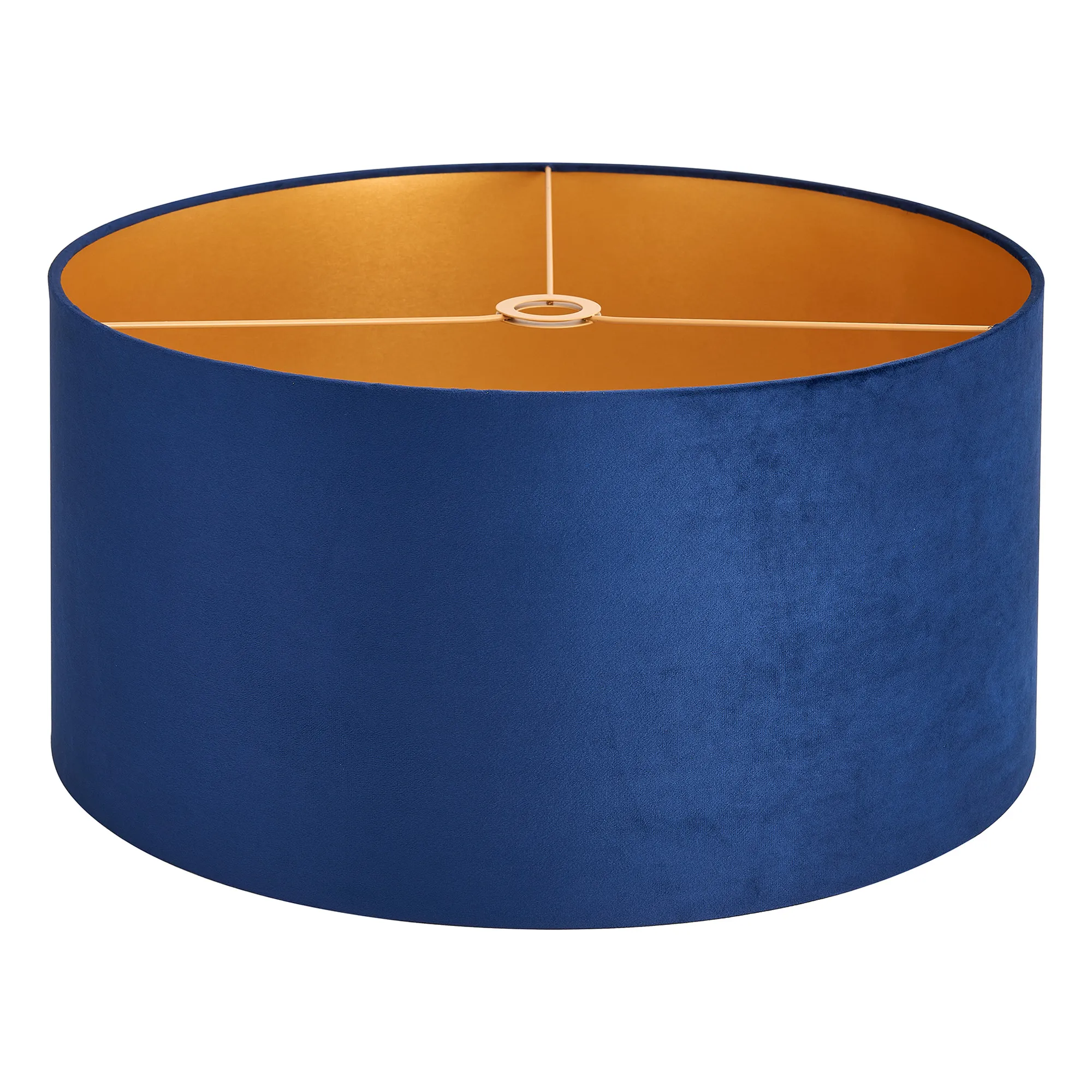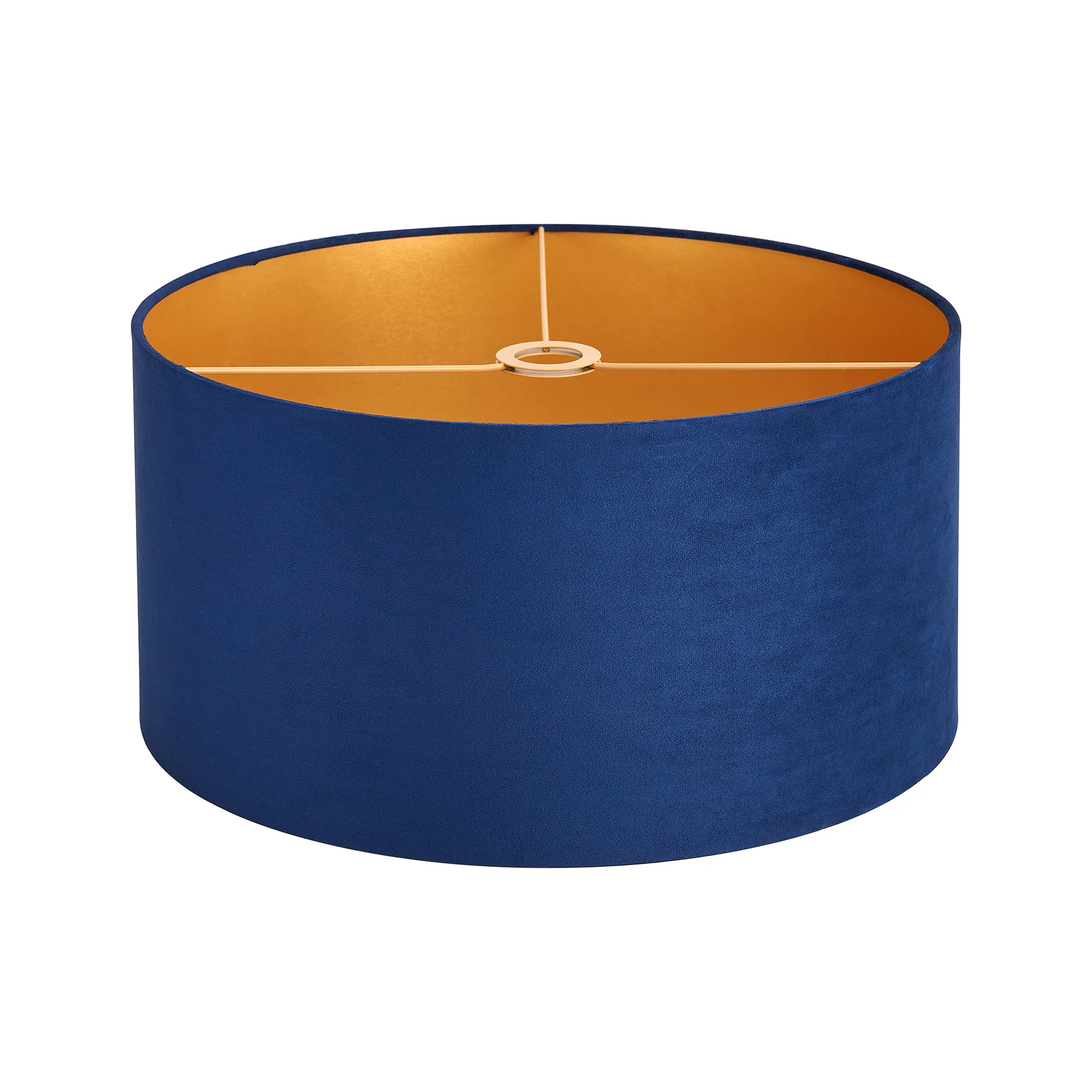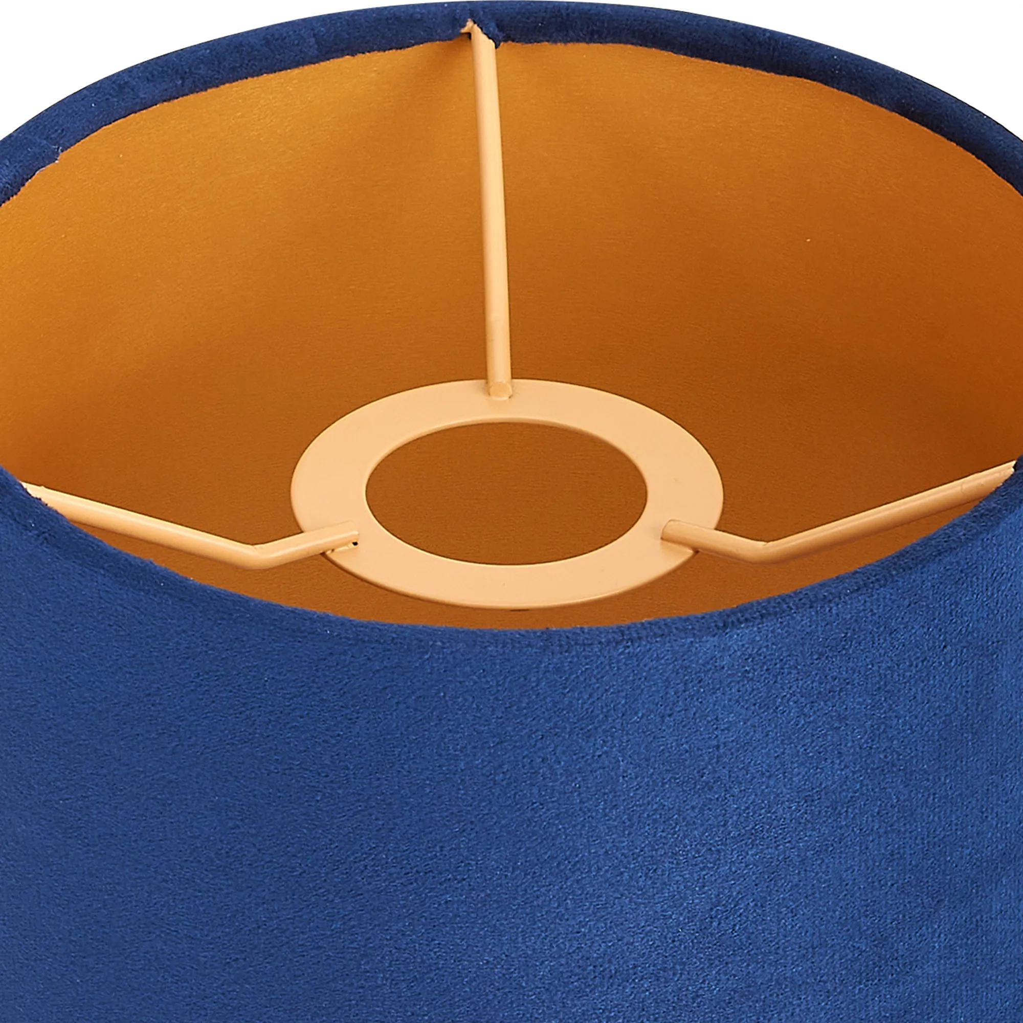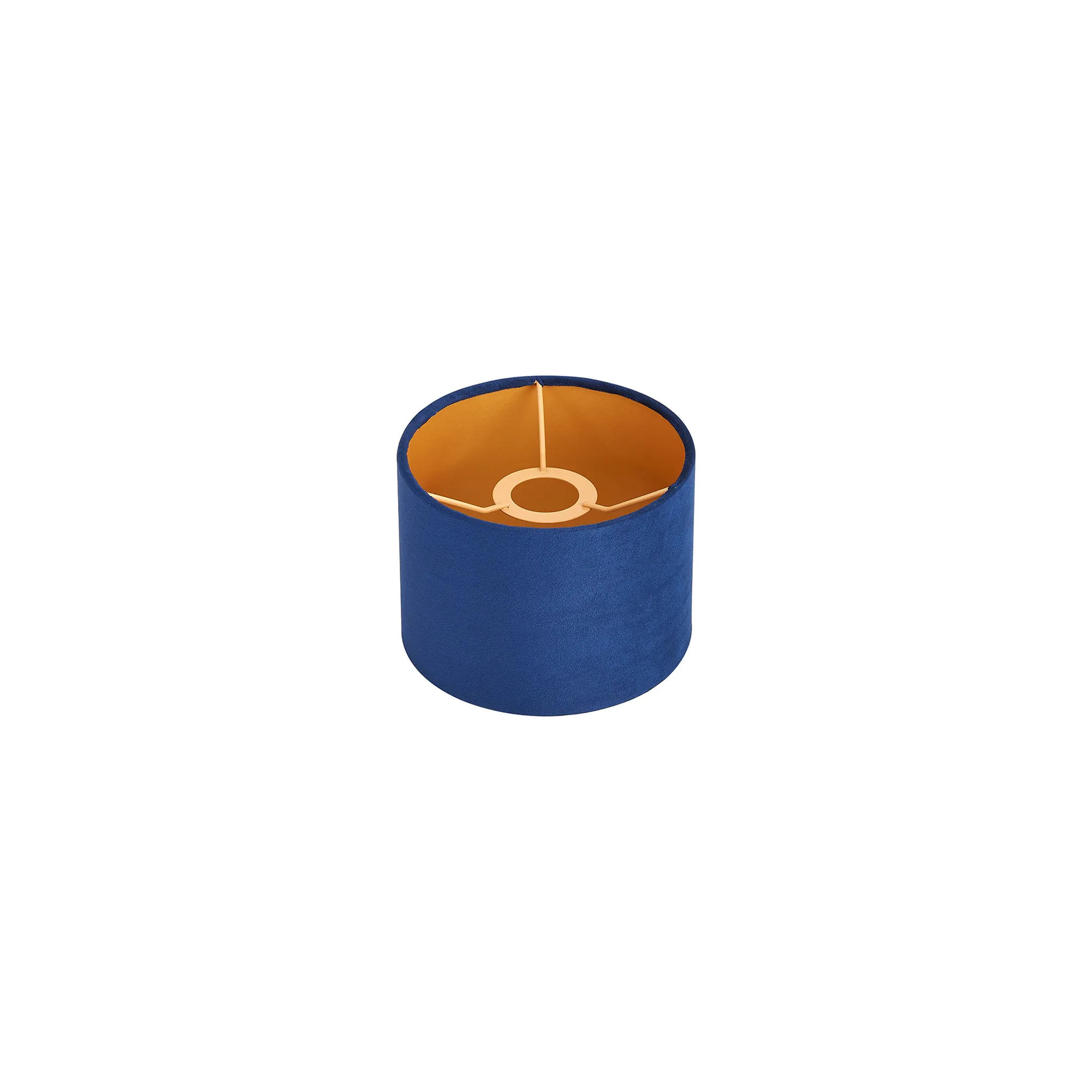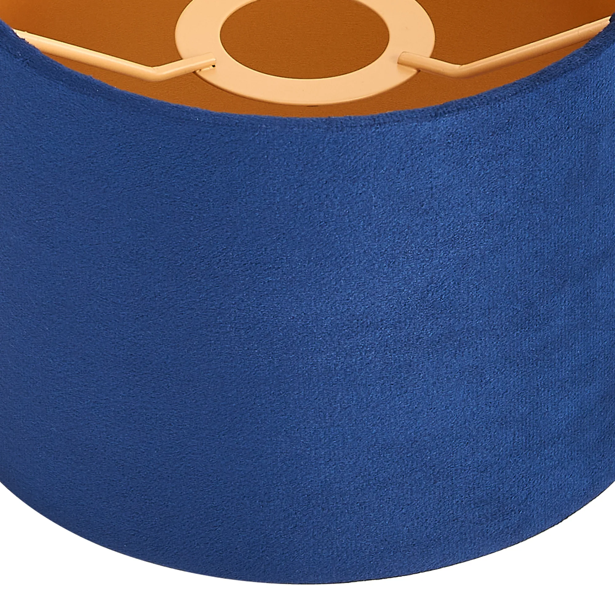 Langley Round, 20x16.5cm Shade, Navy Velvet With Gold Paper Lining & Gold Finish Carrier