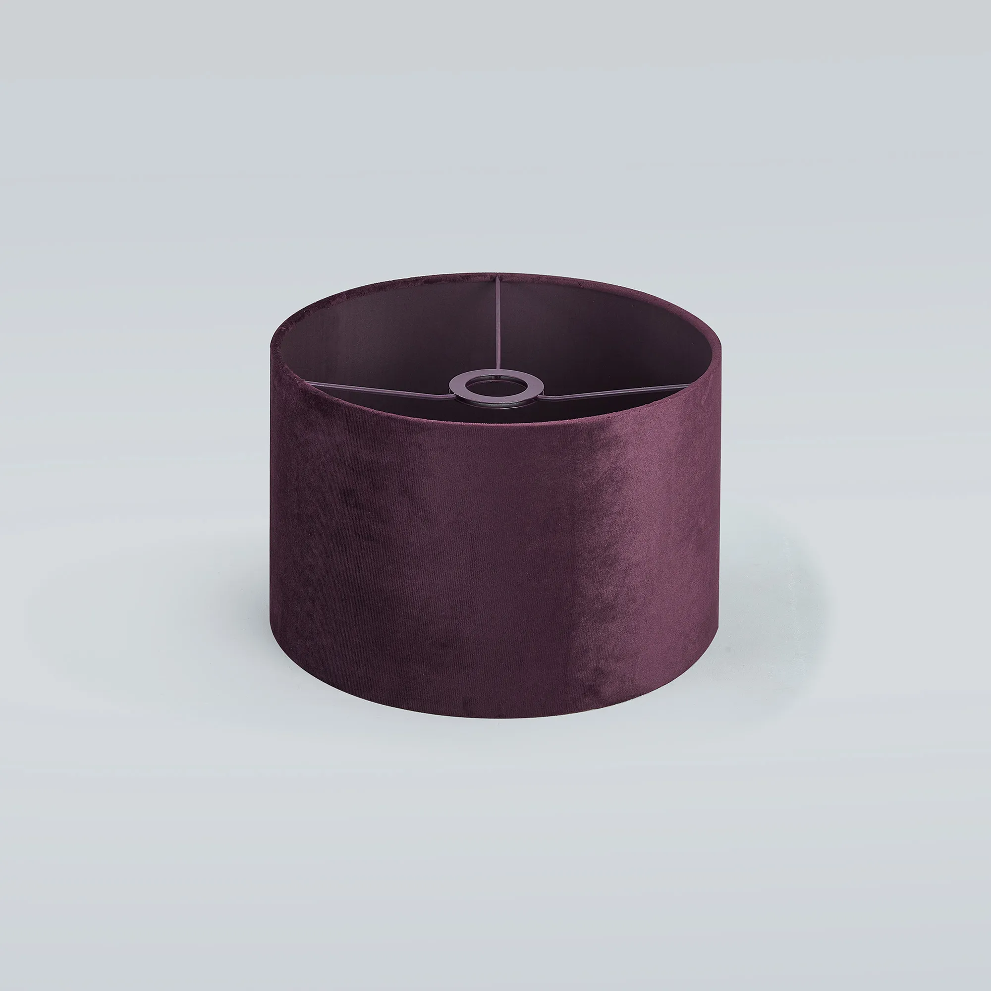 Langley Round, 18x13.5cm Shade, Aubergine Velvet With Aubergine TC Lining & Aubergine Finish Carrier