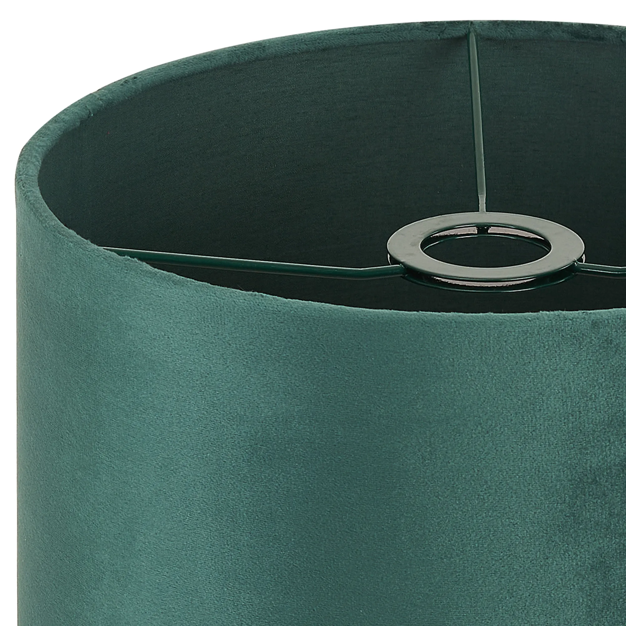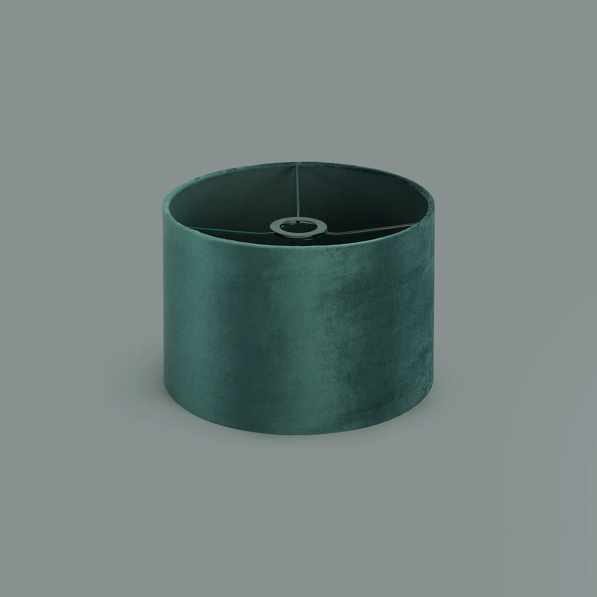 Langley Round, 18x13.5cm Shade, Self Lined Forest Green Velvet & Green Finish Carrier