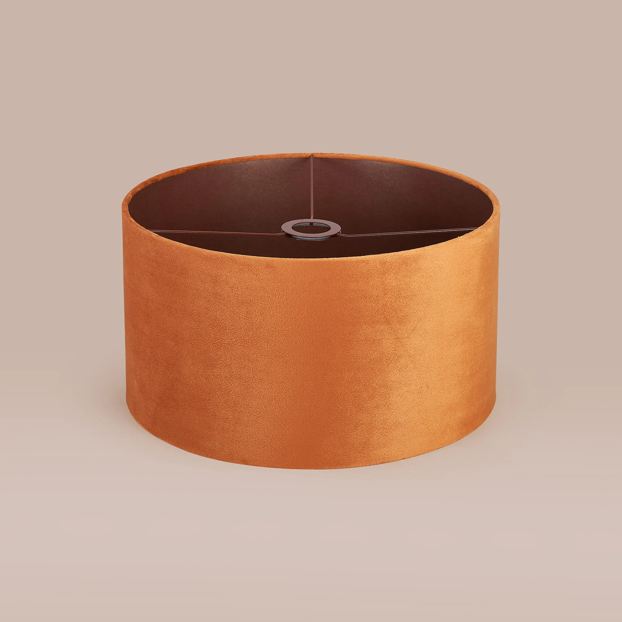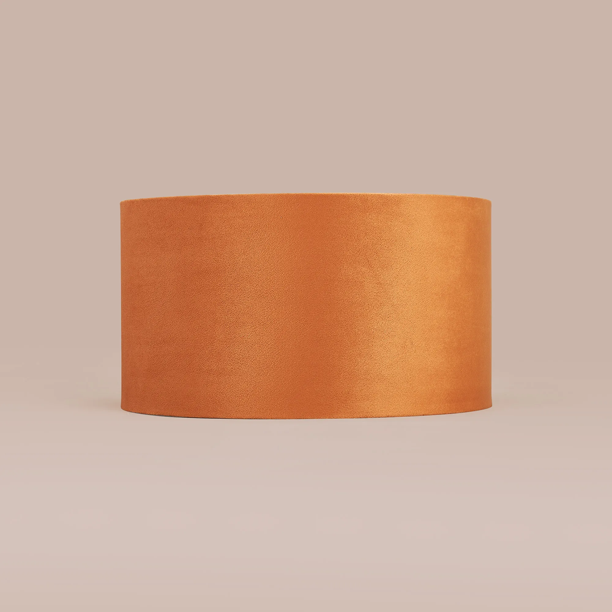 Langley Round, 18x13.5cm Shade, Burnt Orange Velvet With Copper Paper Lining & Copper Finish Carrier
