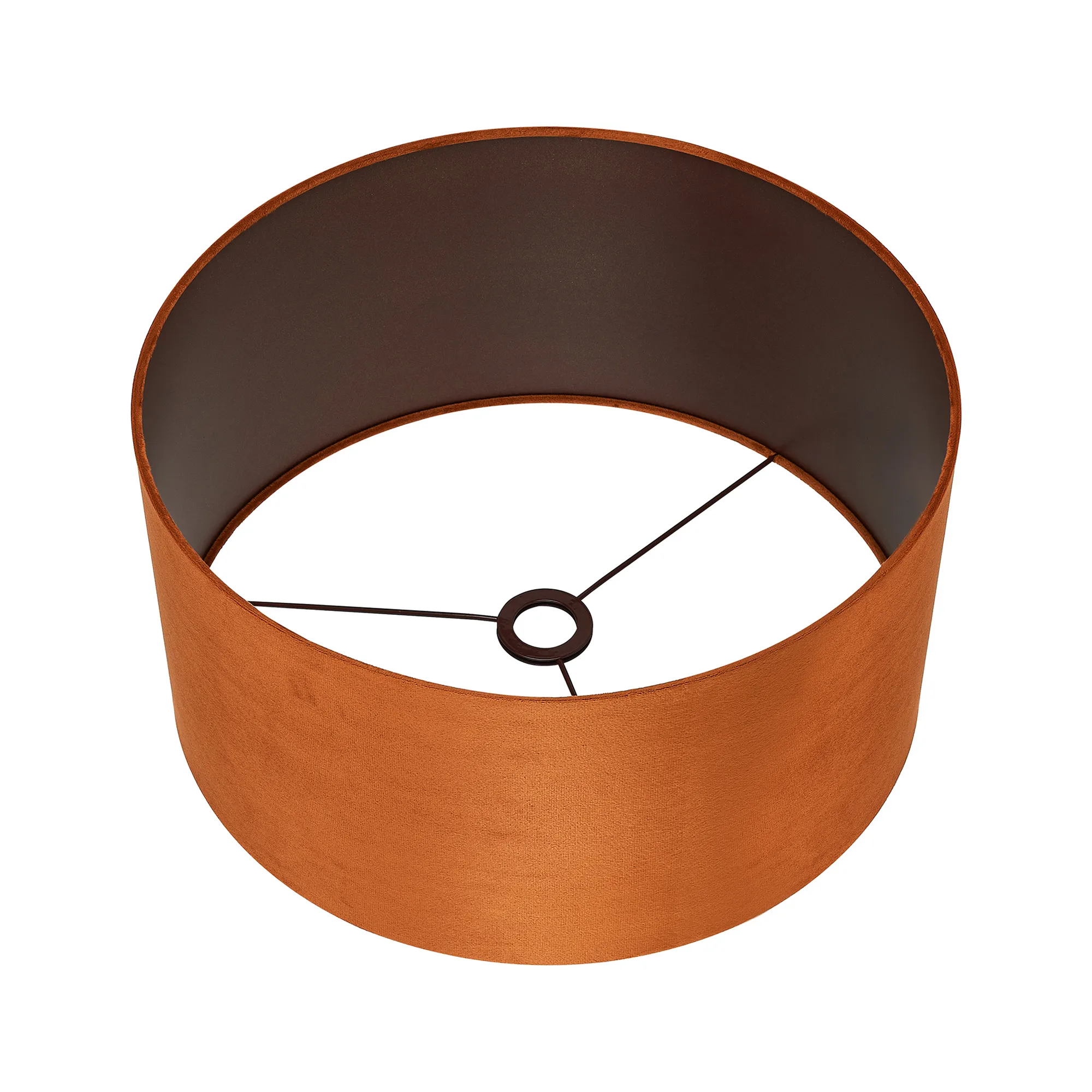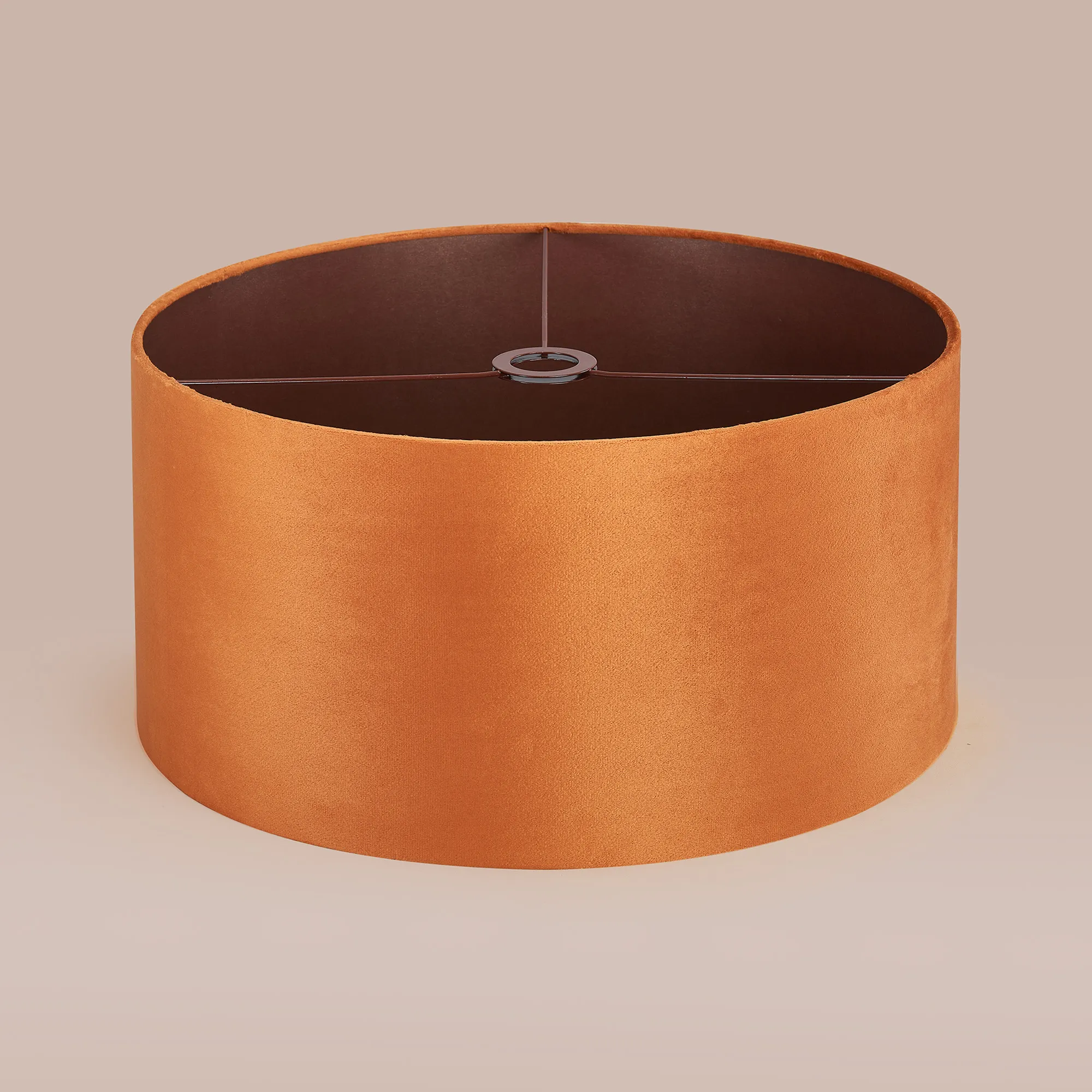 Langley Round, 18x13.5cm Shade, Burnt Orange Velvet With Copper Paper Lining & Copper Finish Carrier