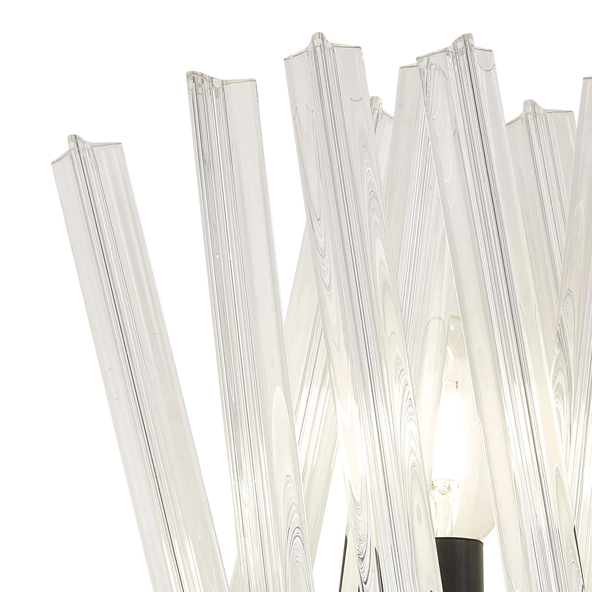 The Tora collection presents an intriguing glass shape moulded into a three dimensional triquetra. The grooves along each sized glass create an appealing optical effect which is effortlessly enhanced with the use of tubular lamps. The wide variety of fixtures available in this range span from a 6 light semi flush to an impacting 32 light pendant. The complementing wall lamps available allow for further application built around the same lighting family. Each frame can be chosen with either a brown oxide, polished nickel or matt black frame with either clear, champagne gold or smoke glass.