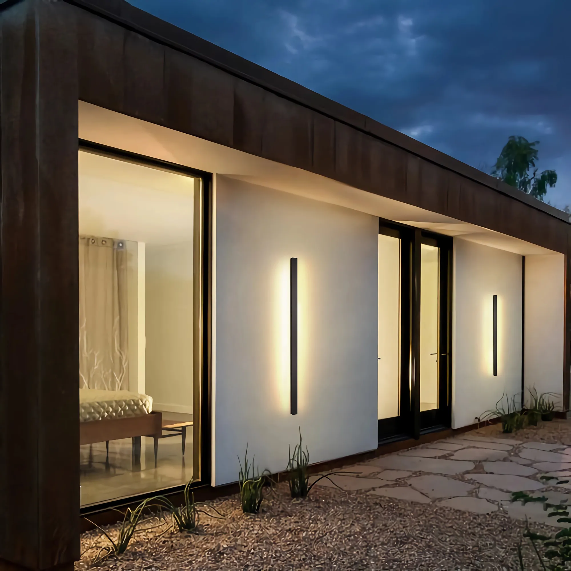 The Merritt collection is a sleek and durable IP65-rated outdoor LED wall lamp, designed to deliver both performance and style in exterior environments. Featuring a modern rectangular form, Merritt provides powerful backlit illumination through integrated LEDs, emitting a 3000K warm white light that enhances outdoor spaces with a welcoming glow. Available in four finishes black, white, dark grey, and dark brown, the Merritt range seamlessly complements a variety of architectural styles. With four size options, including striking 1m and 1.4m models, the larger fixtures create a dramatic visual impact, making them ideal for feature walls, entrances, or pathways. Designed for longevity, weather resistance, and minimalist appeal, Merritt is the perfect choice for modern outdoor lighting solutions that balance form and function.