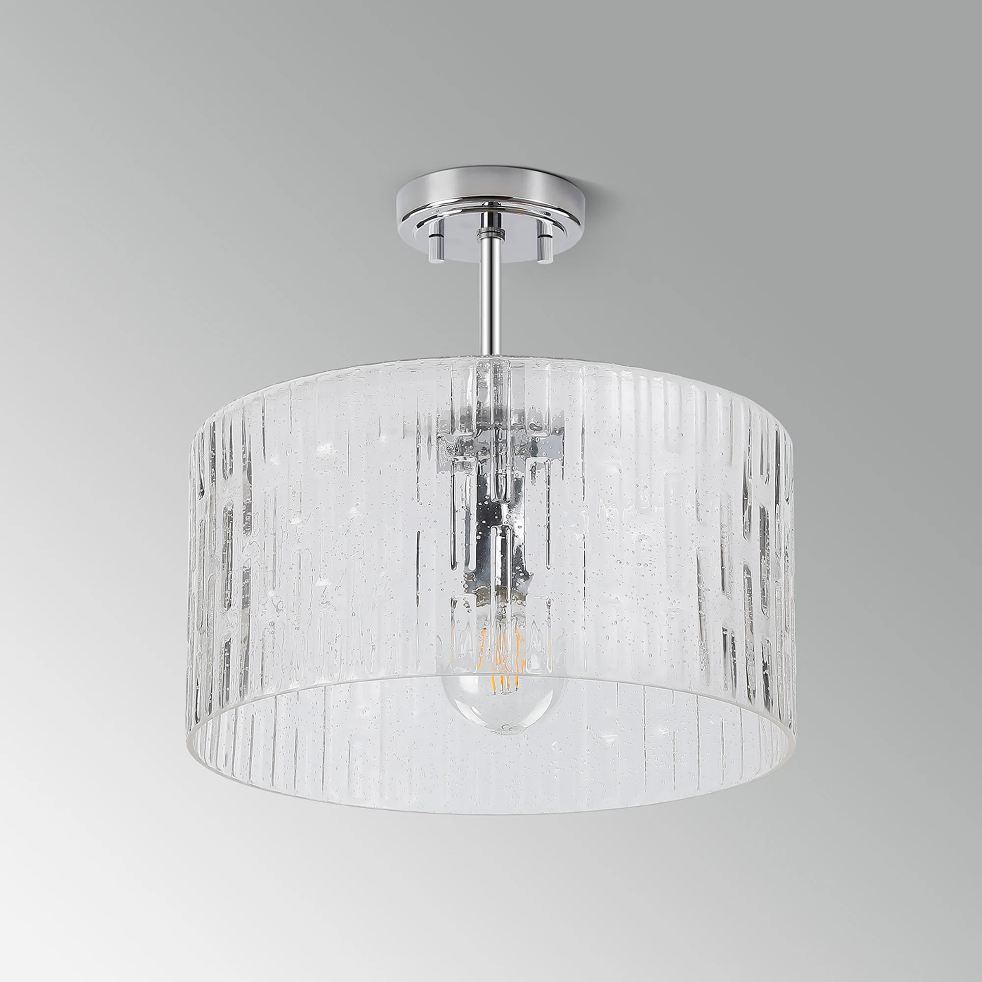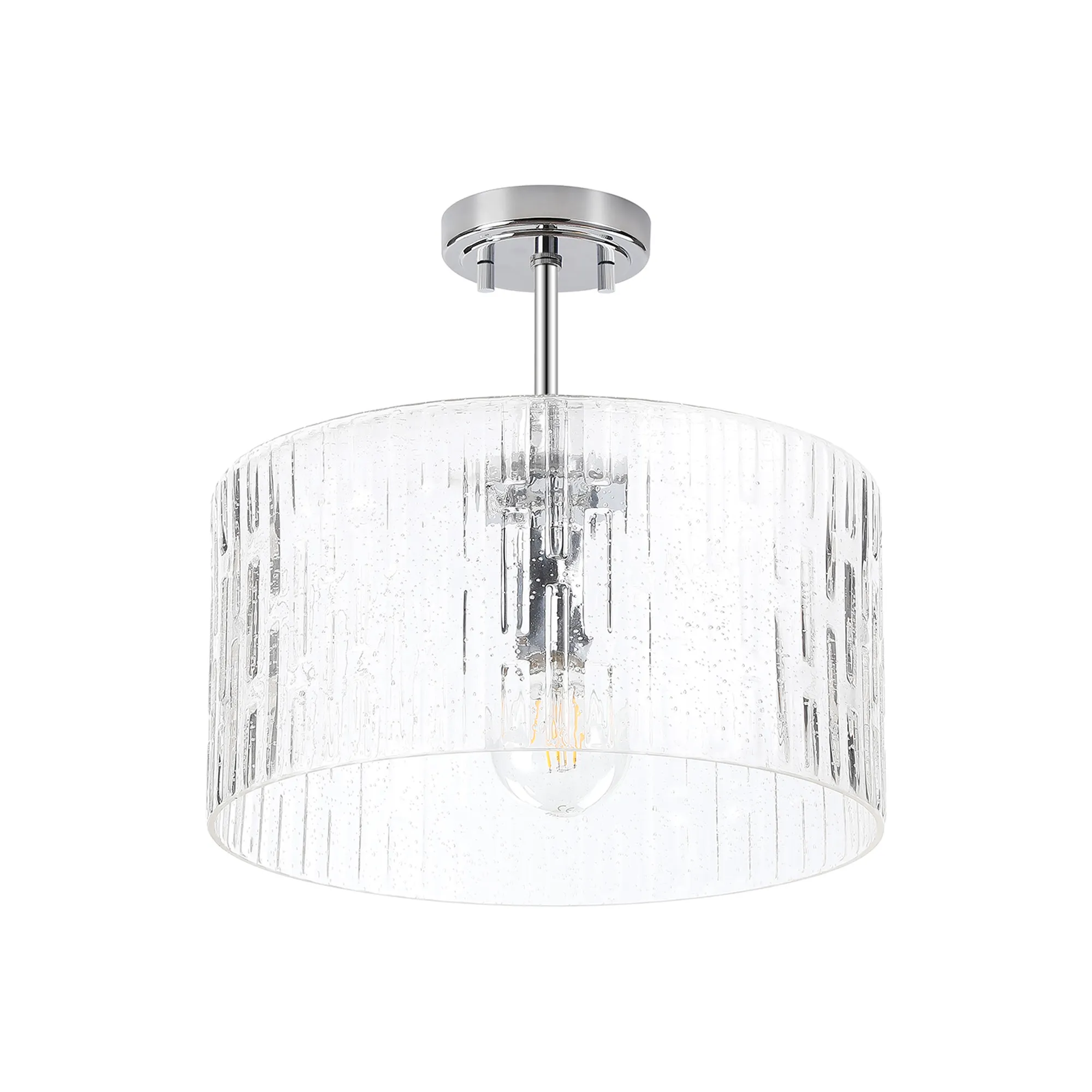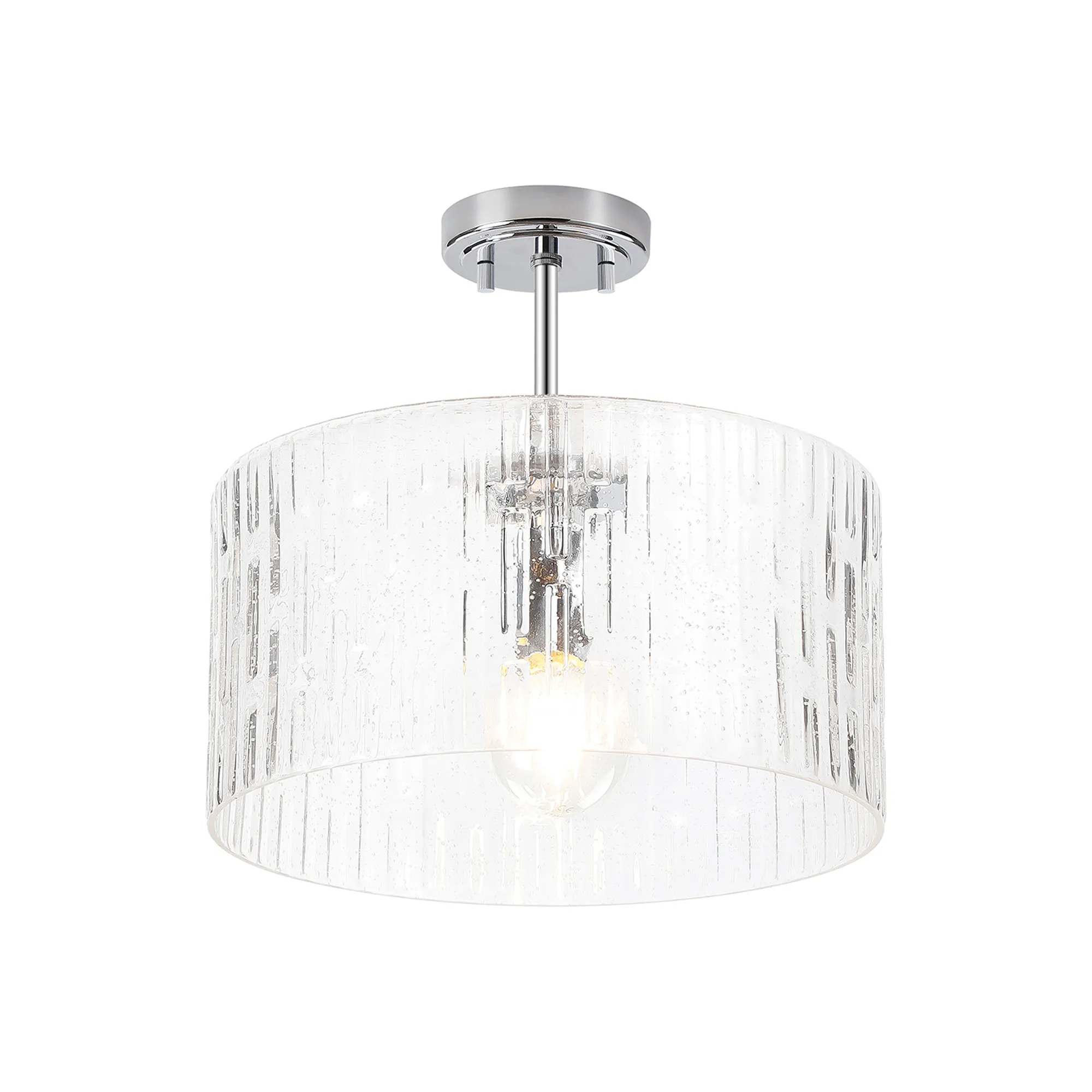 Parksville Polished Chrome Pendant/Semi Flush/Semi Flush 1 x E27 With Cylinder Ribbed Glass (A)