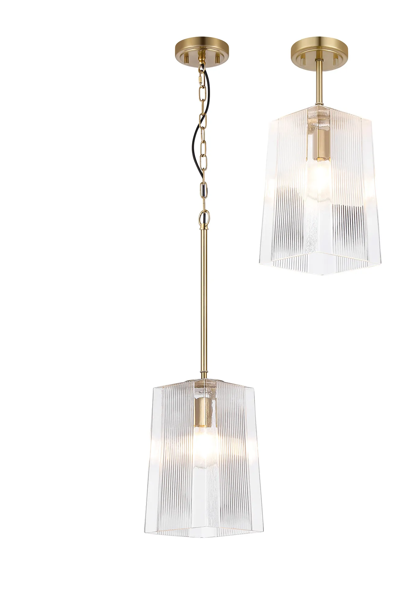 Parksville Polished Chrome Pendant/Semi Flush/Semi Flush 1 x E27 With Cylinder Ribbed Glass (A)