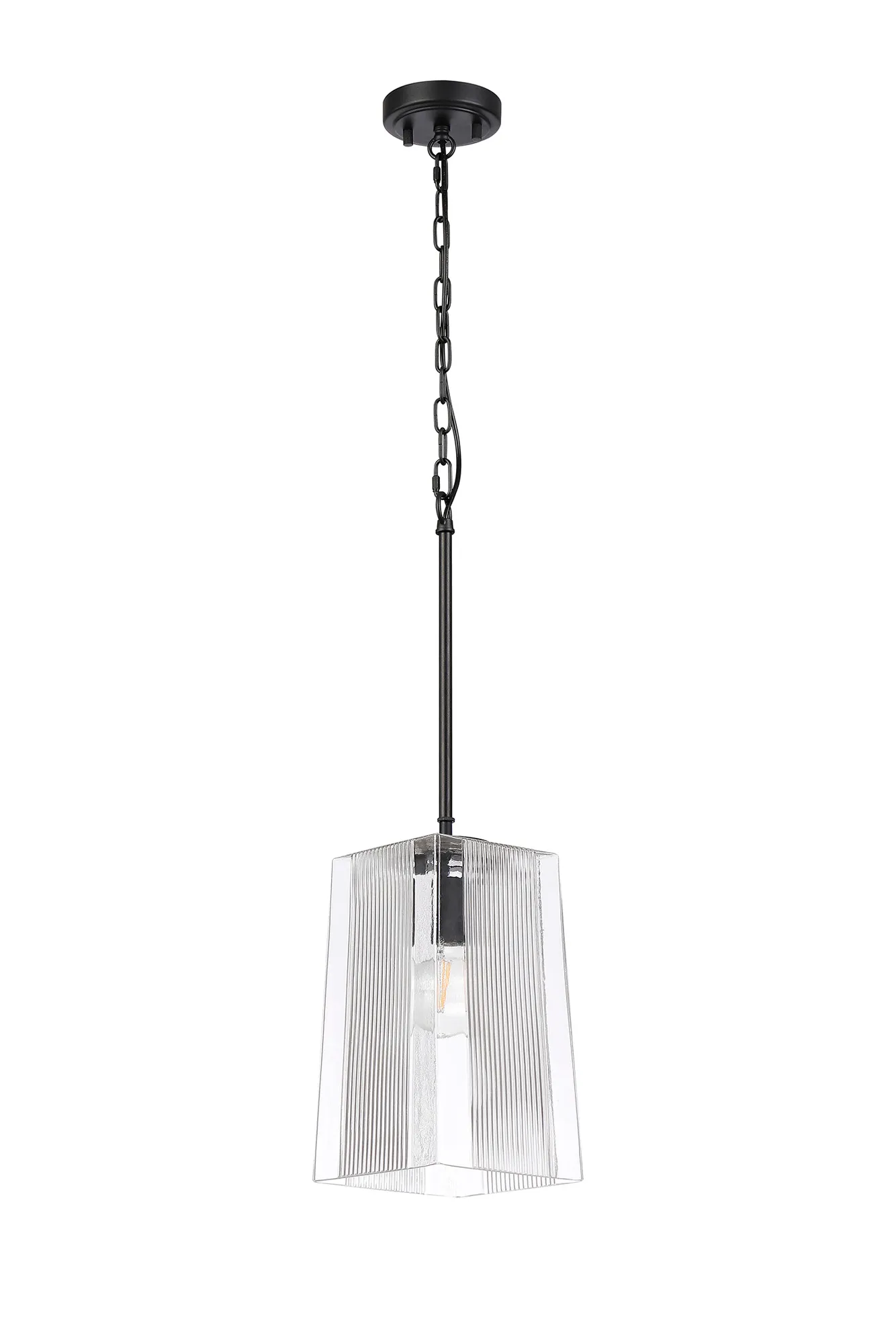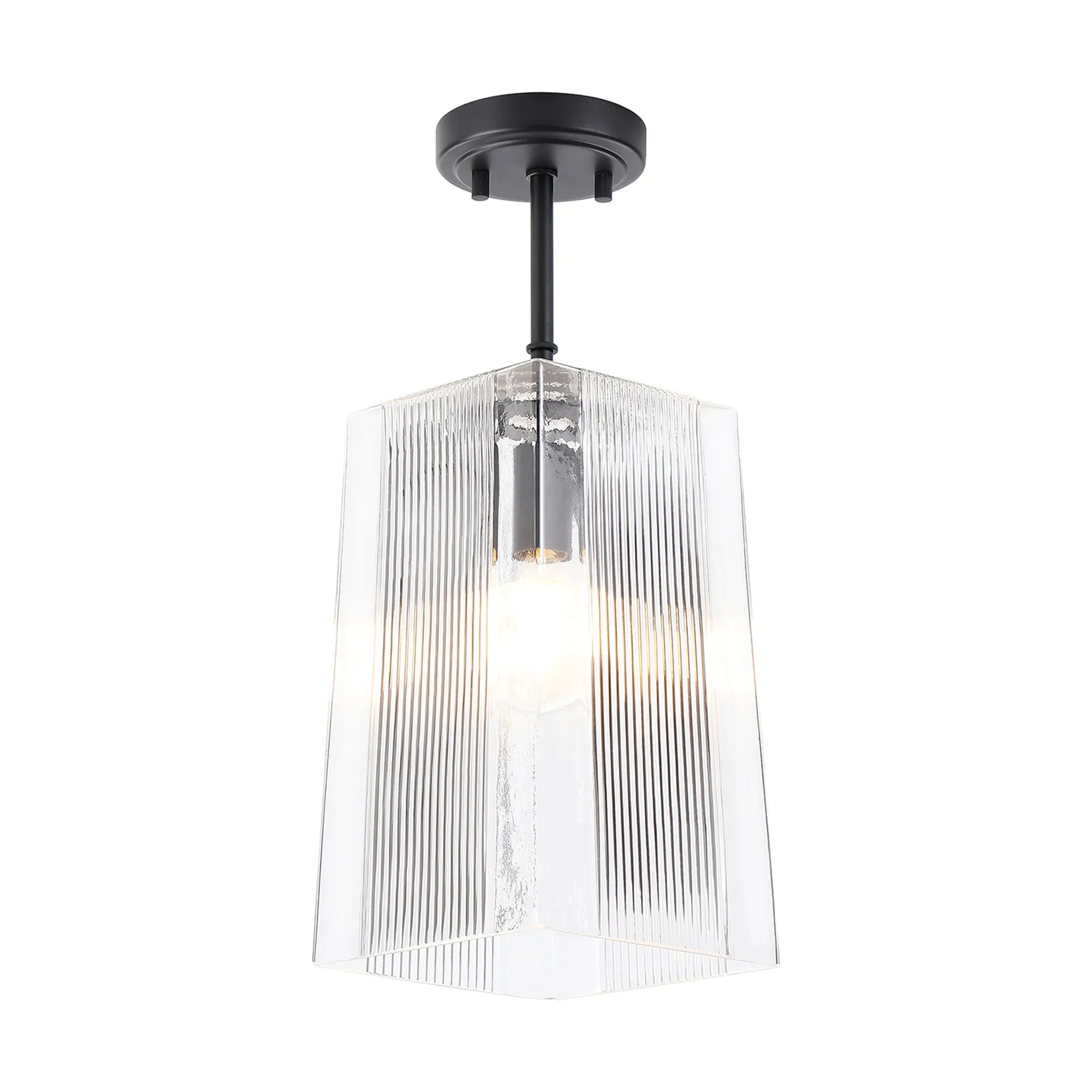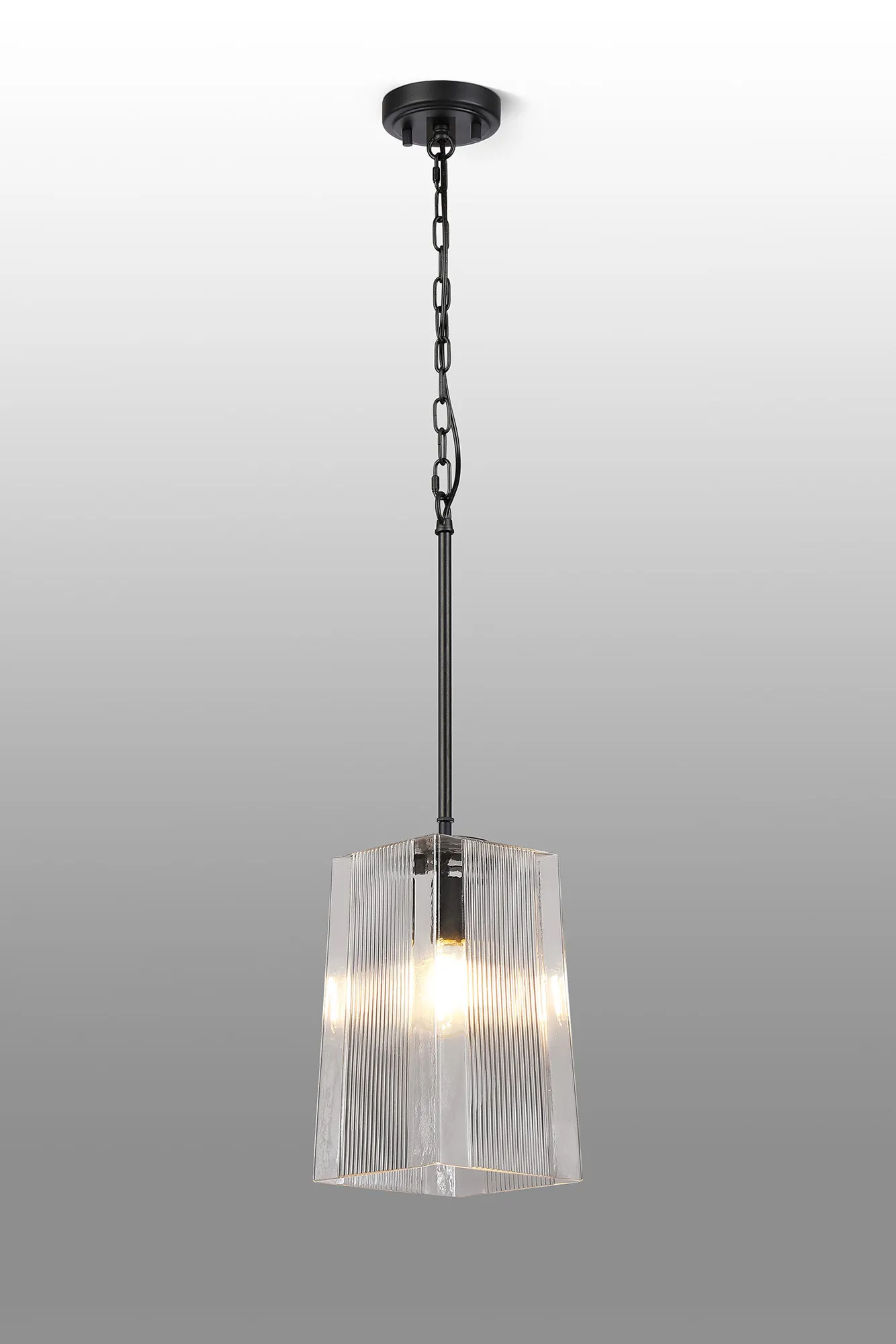 Parksville 18cm Polished Chrome Pendant/Semi Flush/Semi Flush 1 x E27 With Cylinder Ribbed Glass (A)
