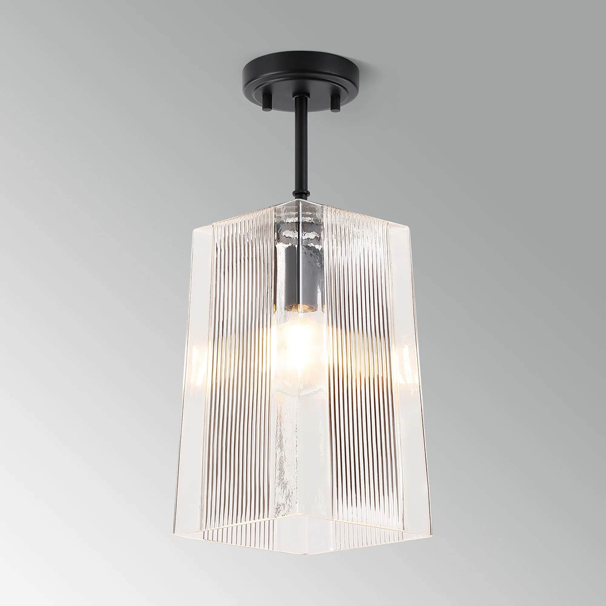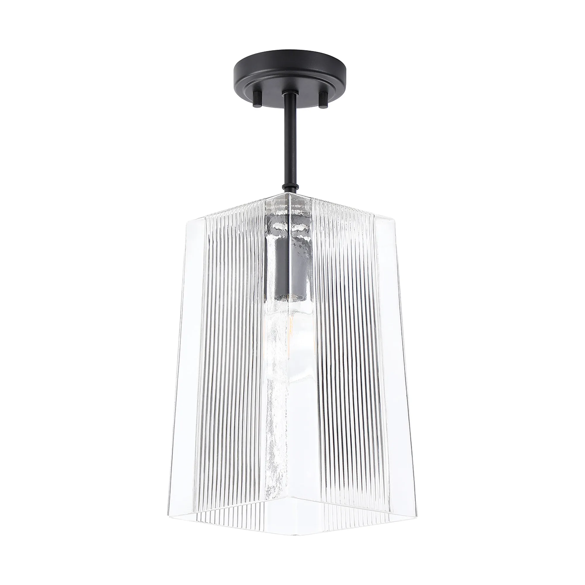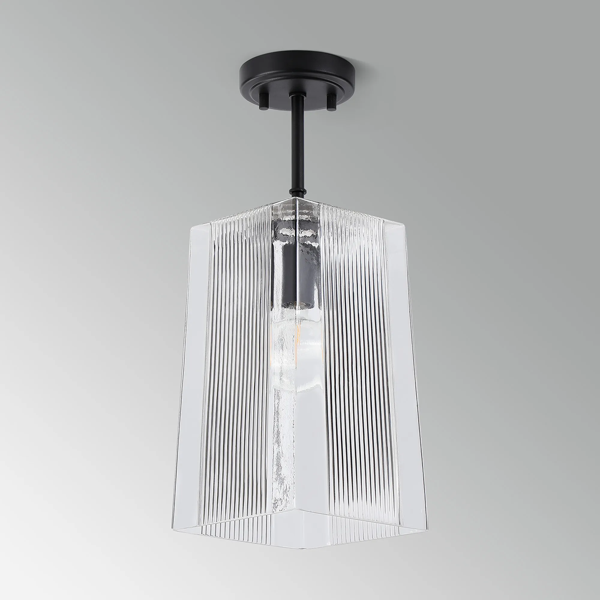 Parksville 18cm Polished Chrome Pendant/Semi Flush/Semi Flush 1 x E27 With Cylinder Ribbed Glass (A)