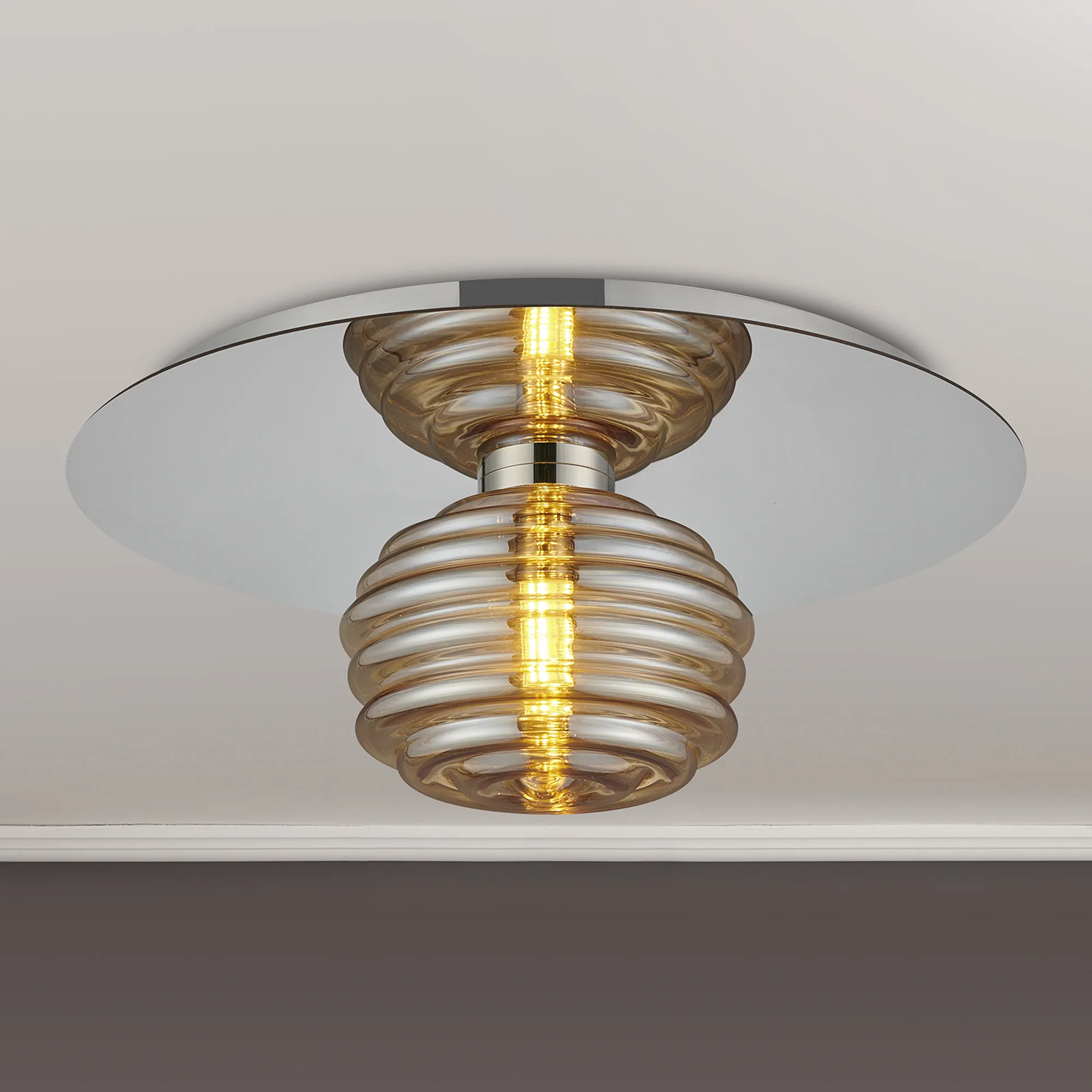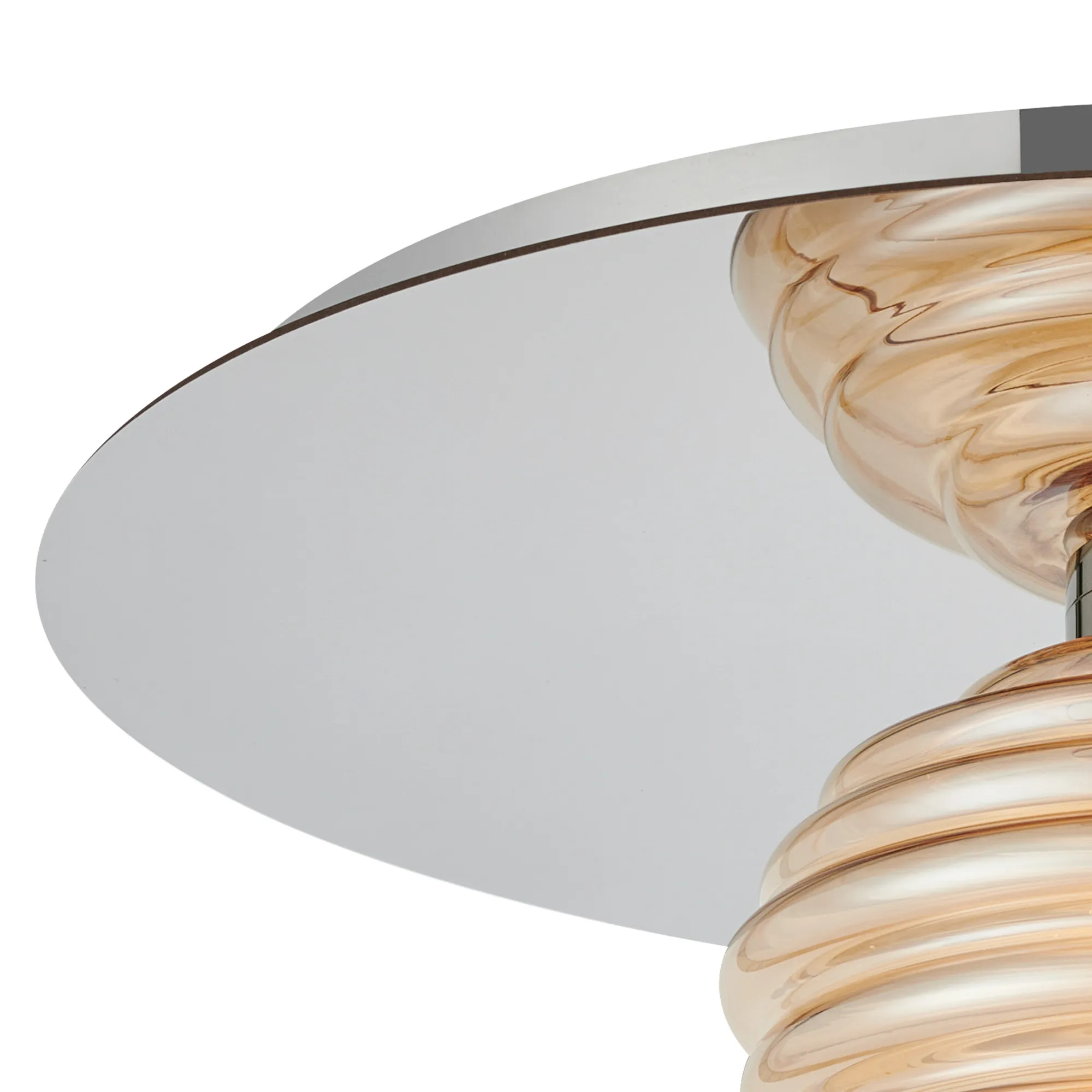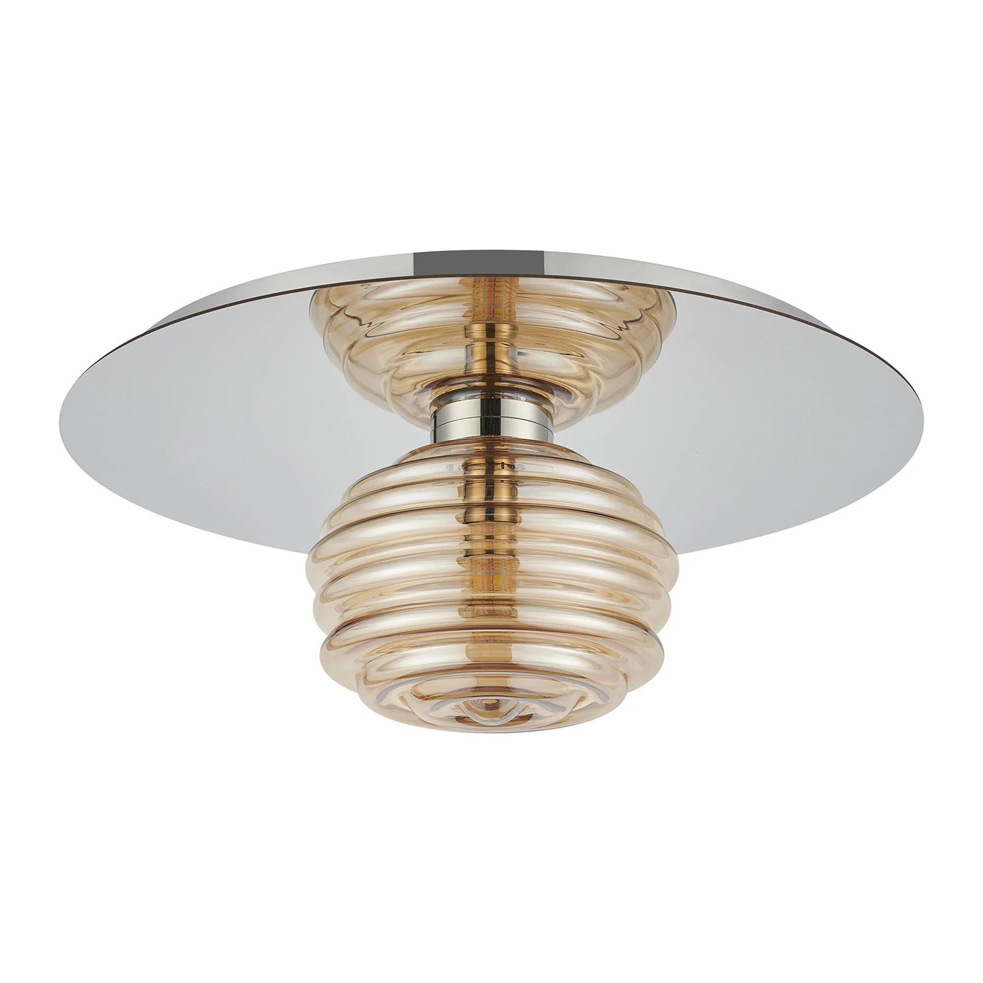 OTHER Penticton Round 1 Light Flush/Wall Light With 180mm Glass, Polished Nickel/Amber