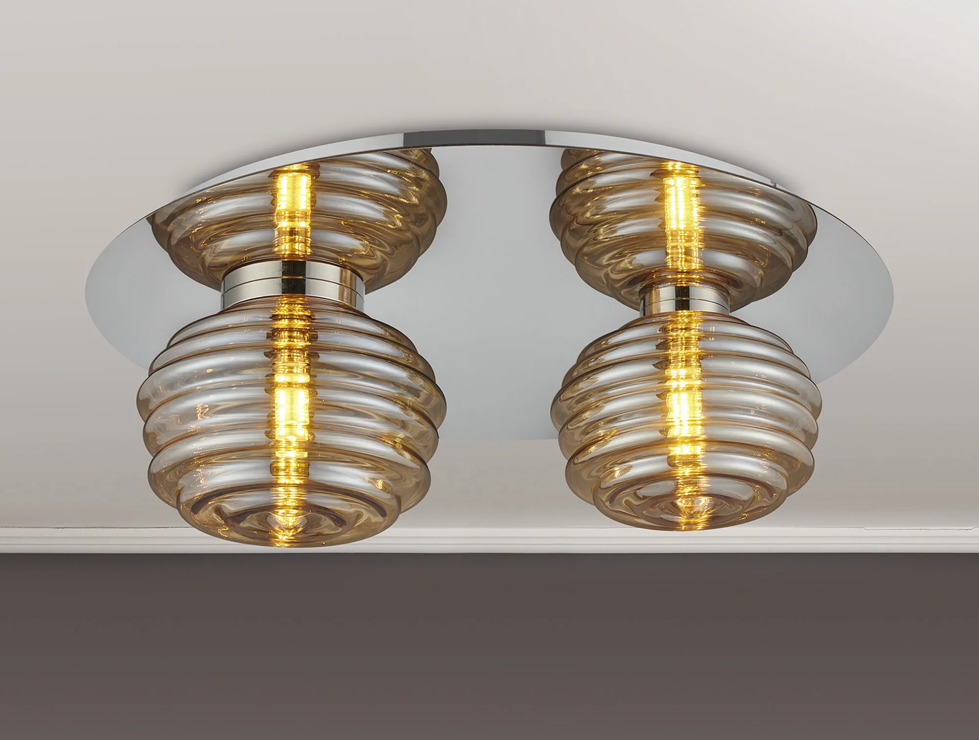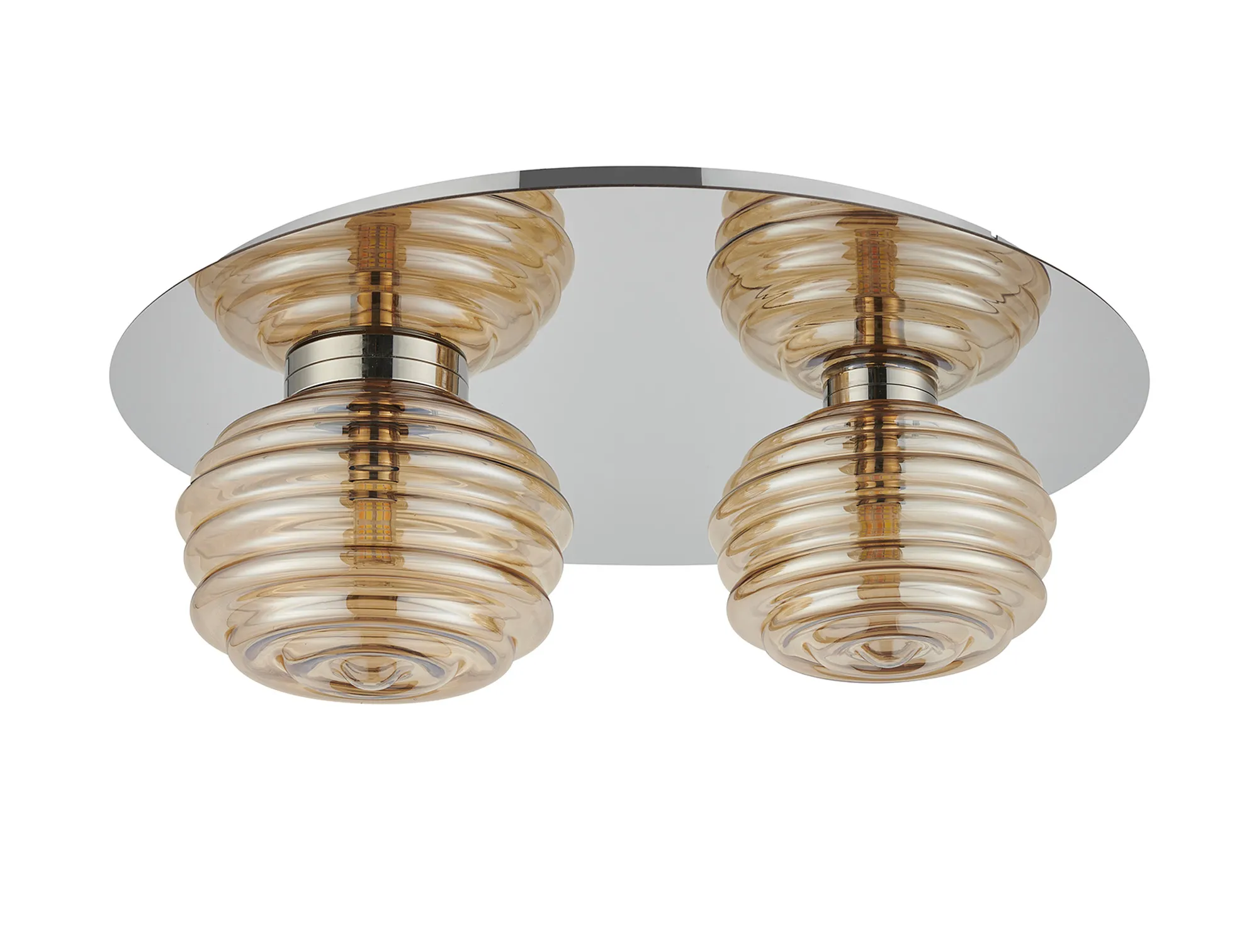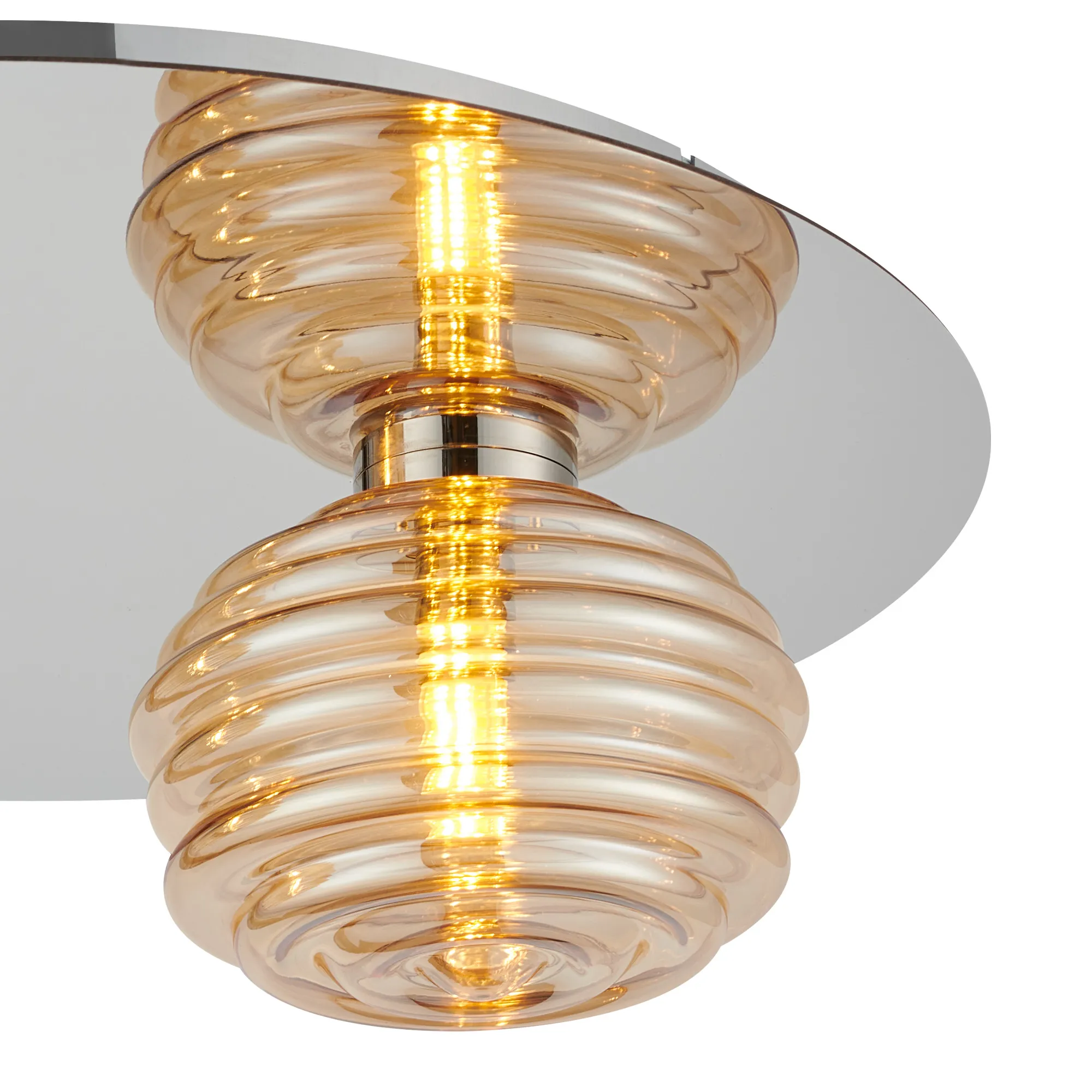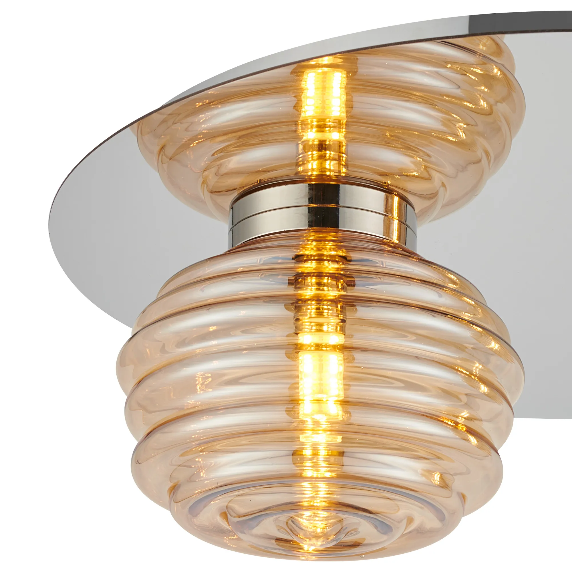 OTHER Penticton Round 2 Light Flush With 160mm & 180mm Glass, Polished Nickel/Amber