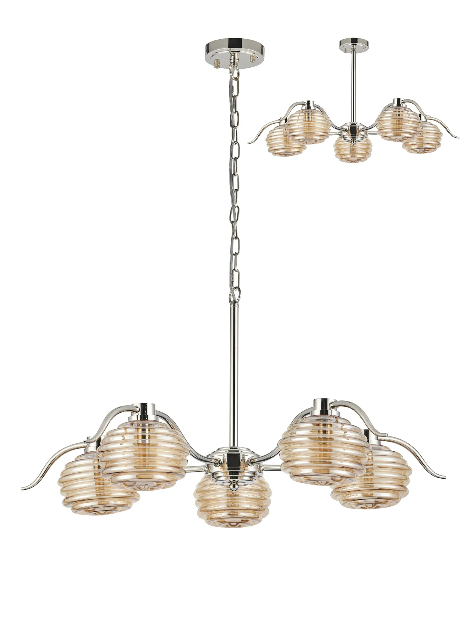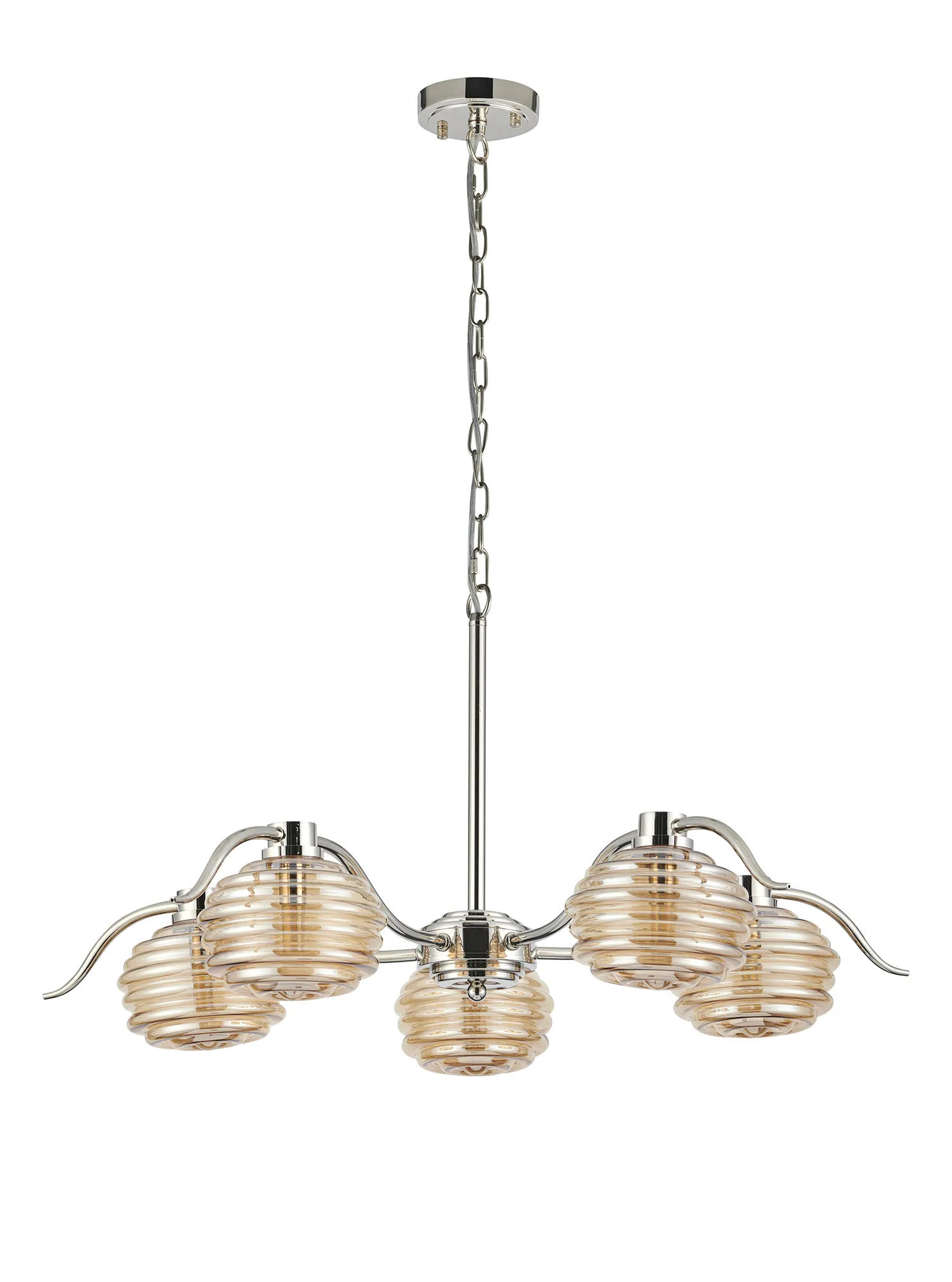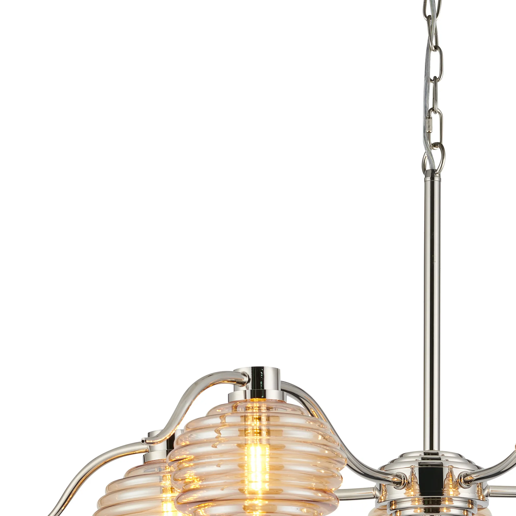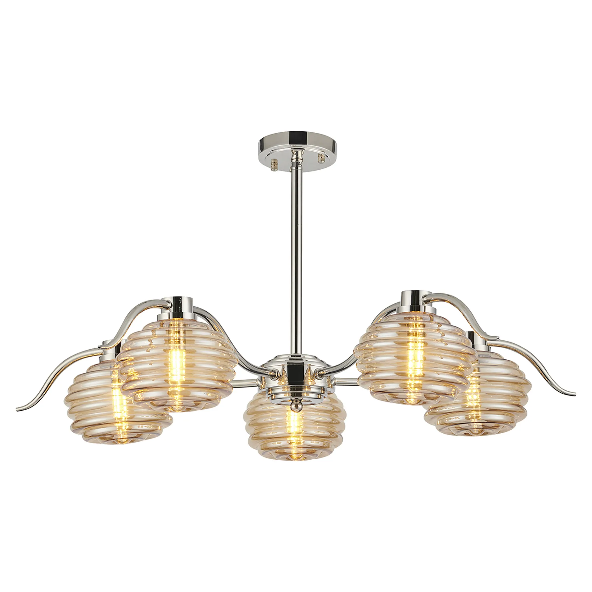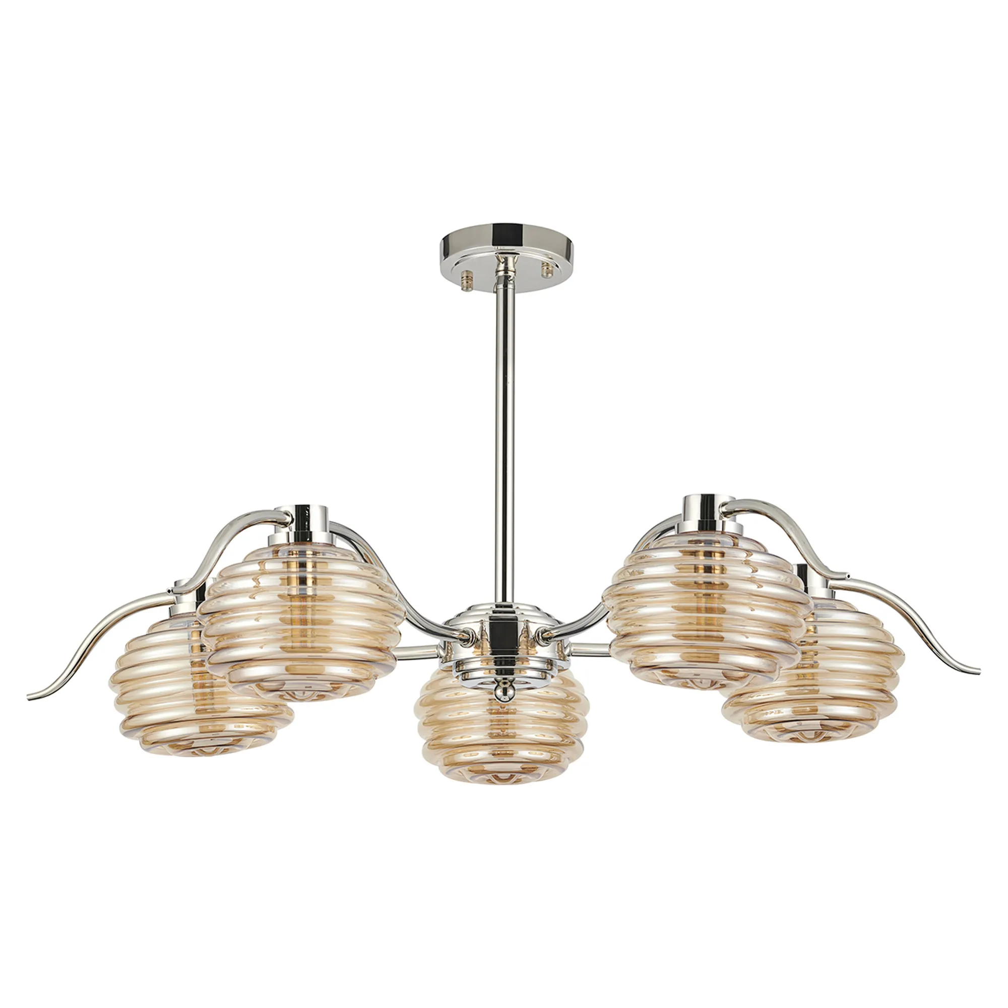 OTHER Penticton 5 Light Multi Arm Pendant/Semi Flush With 160mm Glass, Polished Nickel/Amber