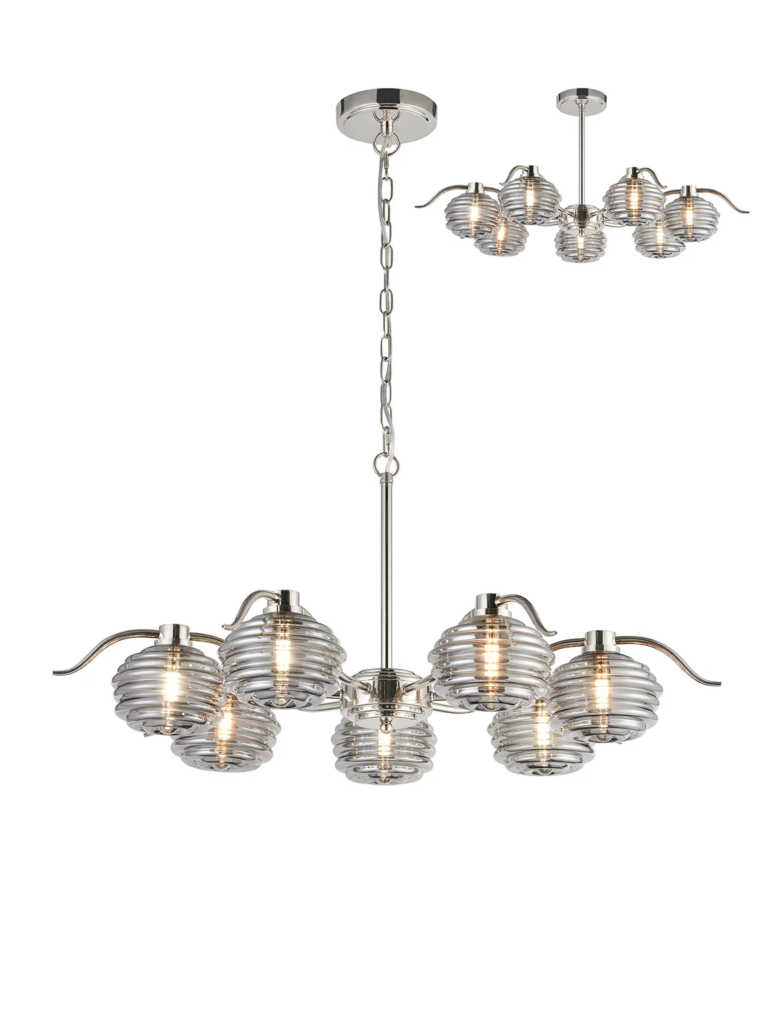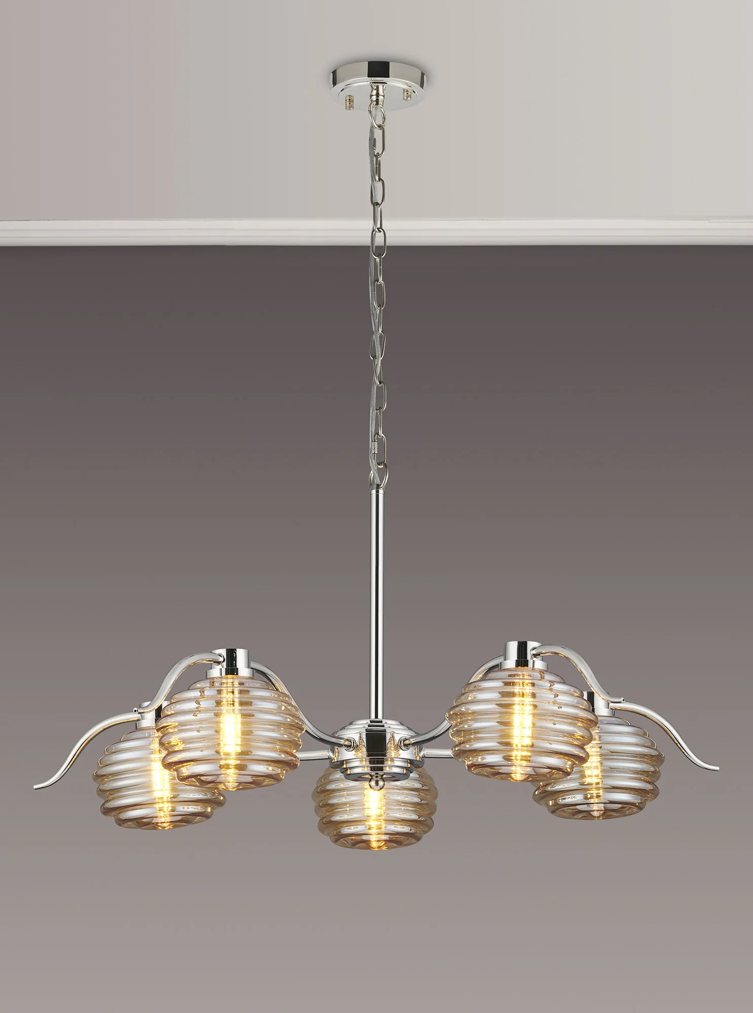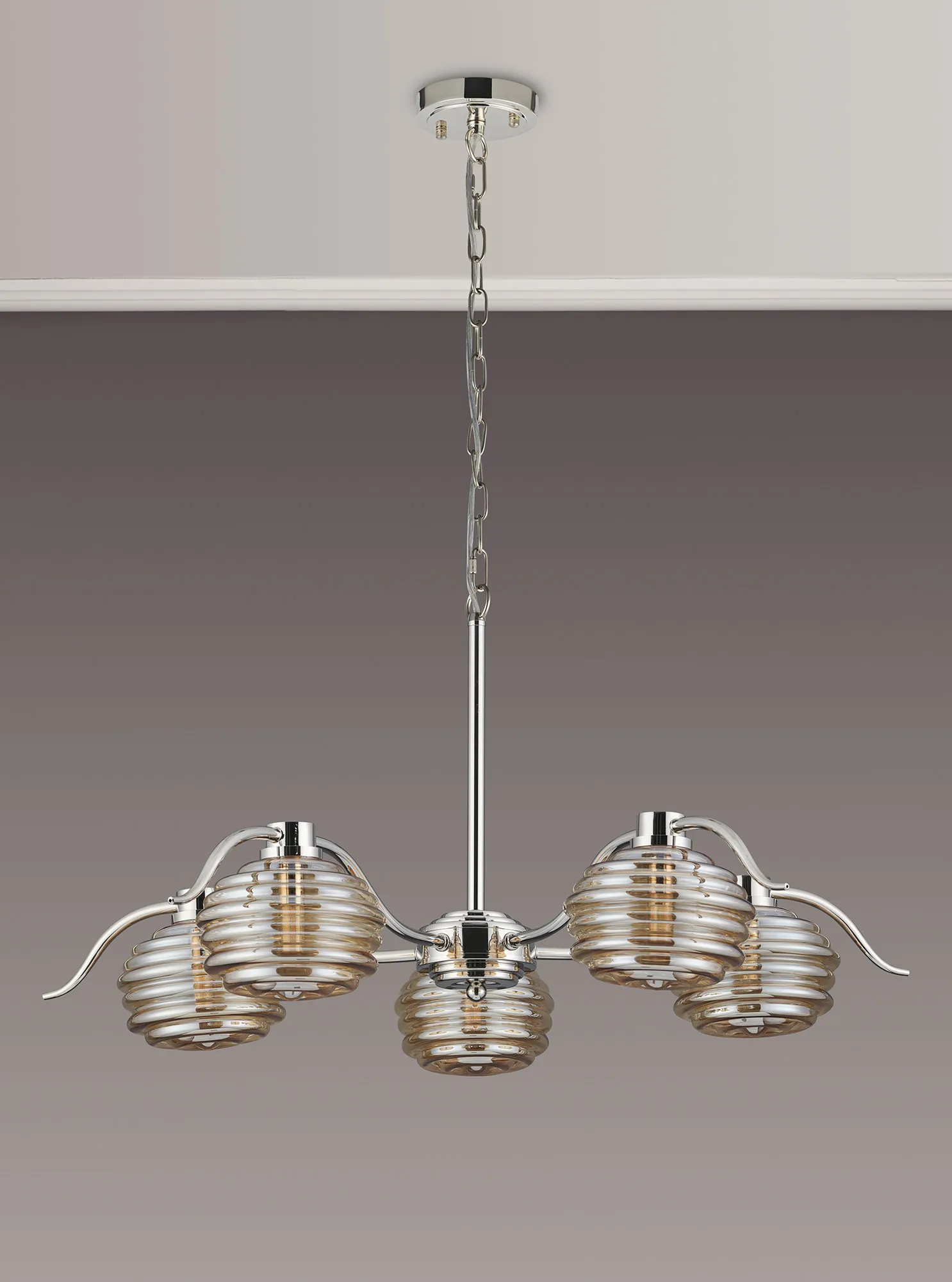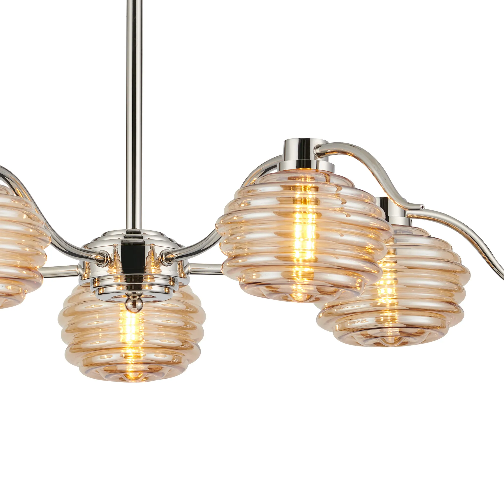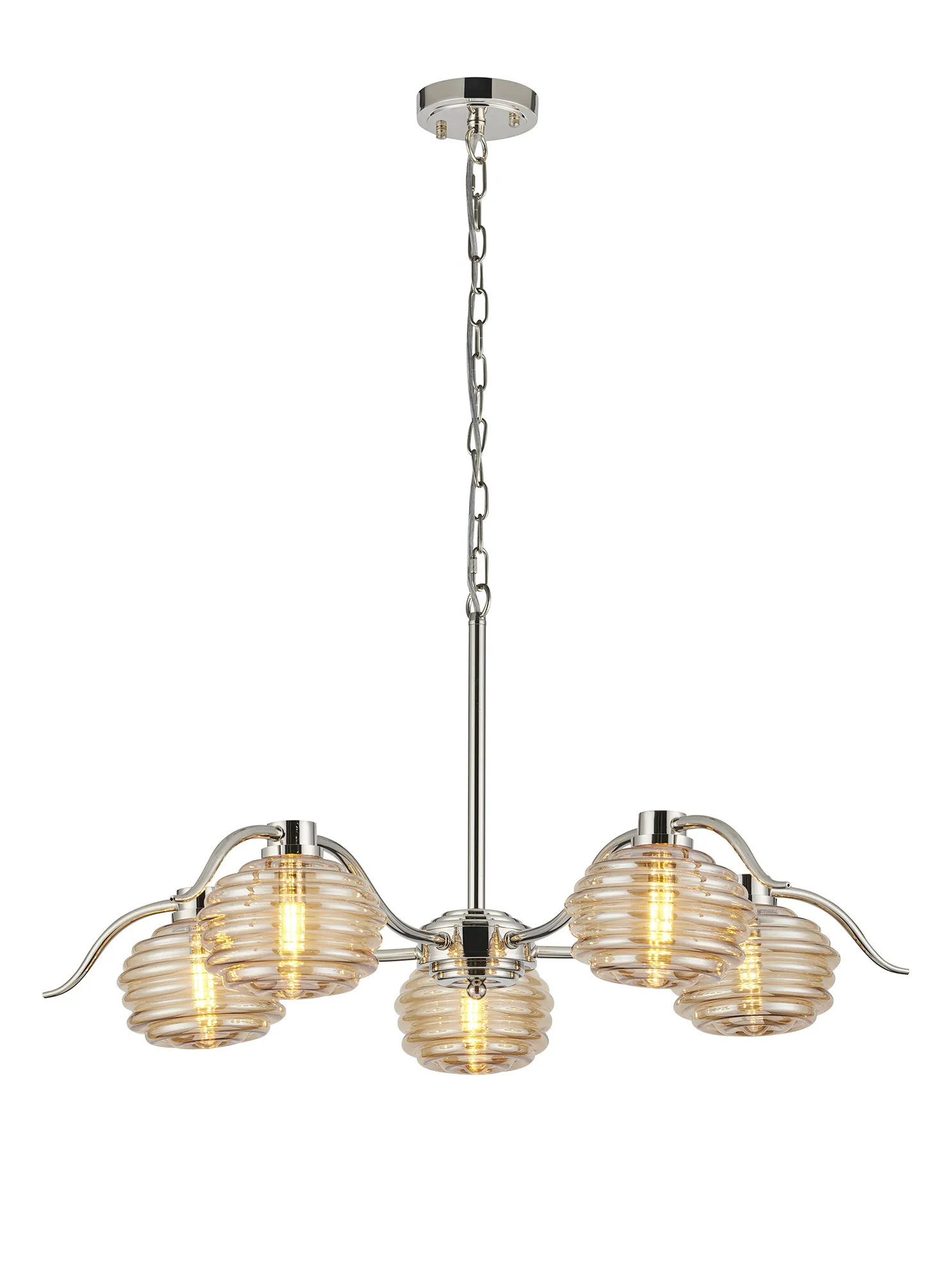 OTHER Penticton 5 Light Multi Arm Pendant/Semi Flush With 160mm Glass, Polished Nickel/Amber