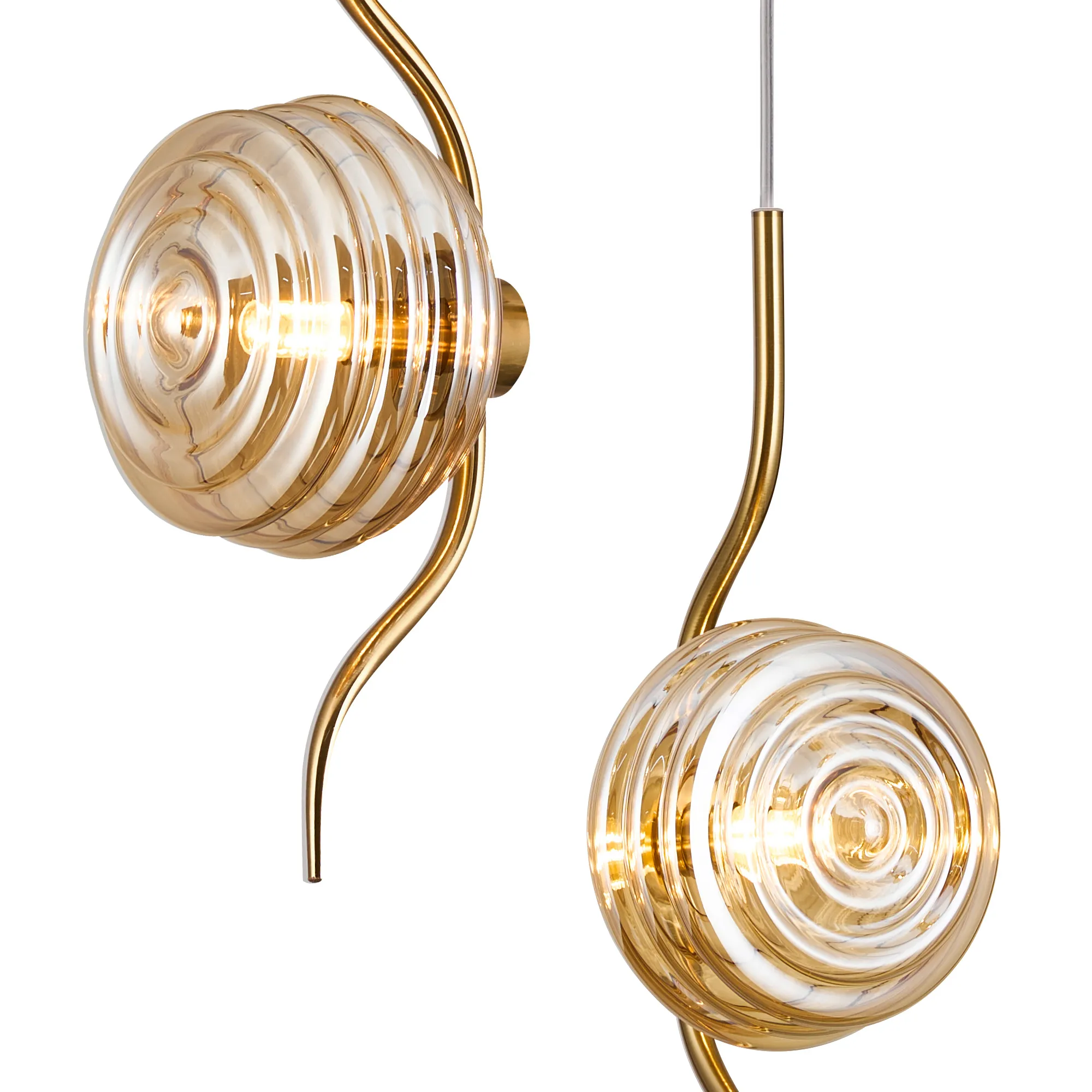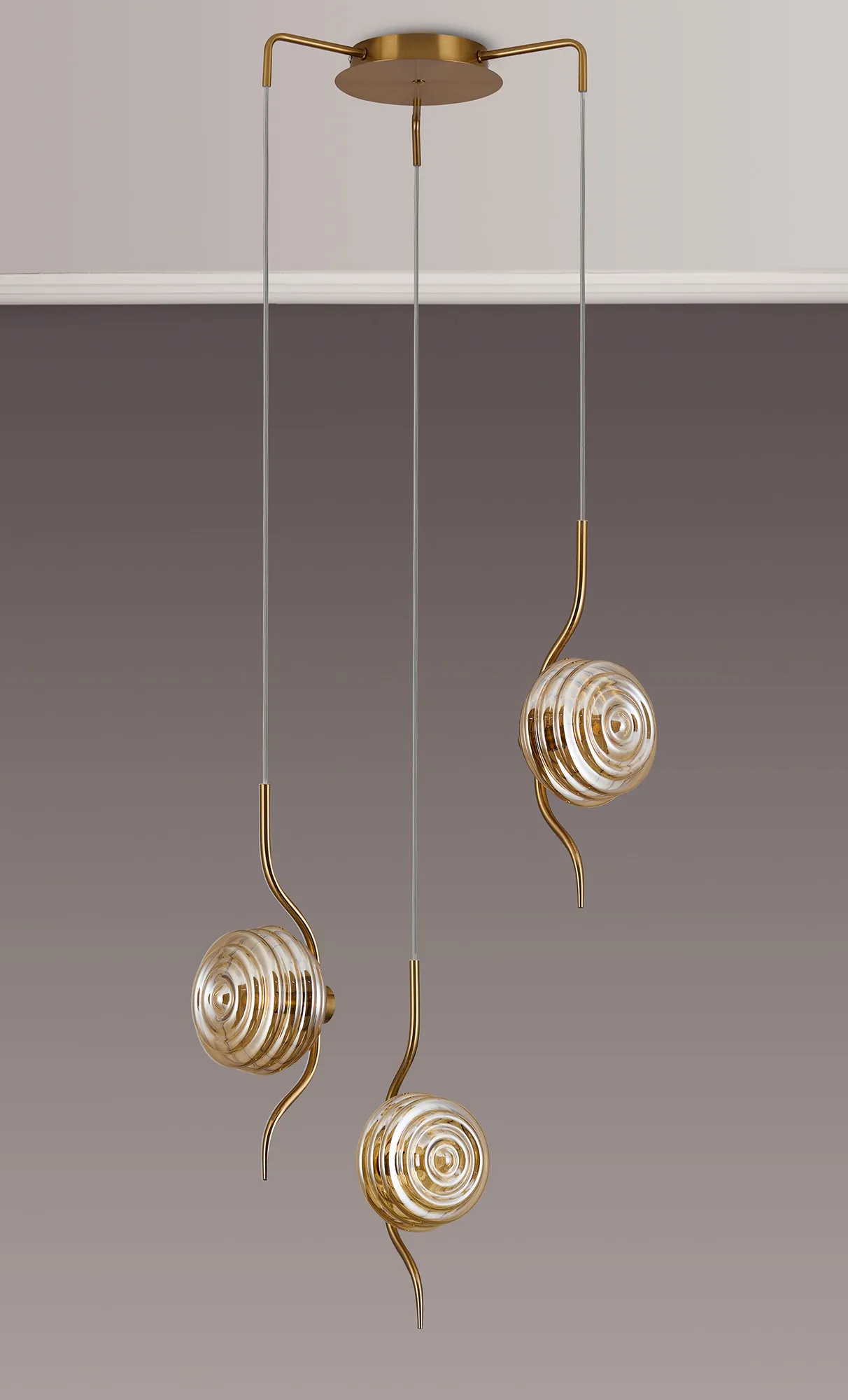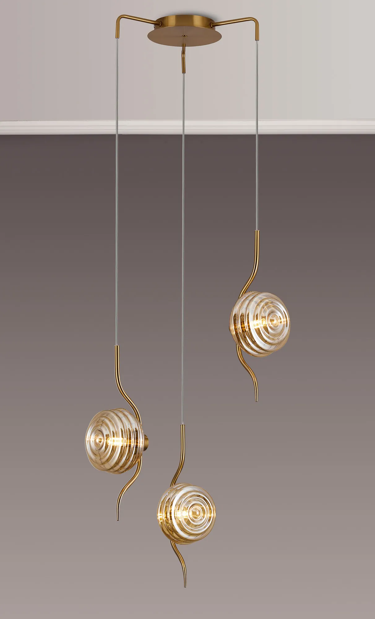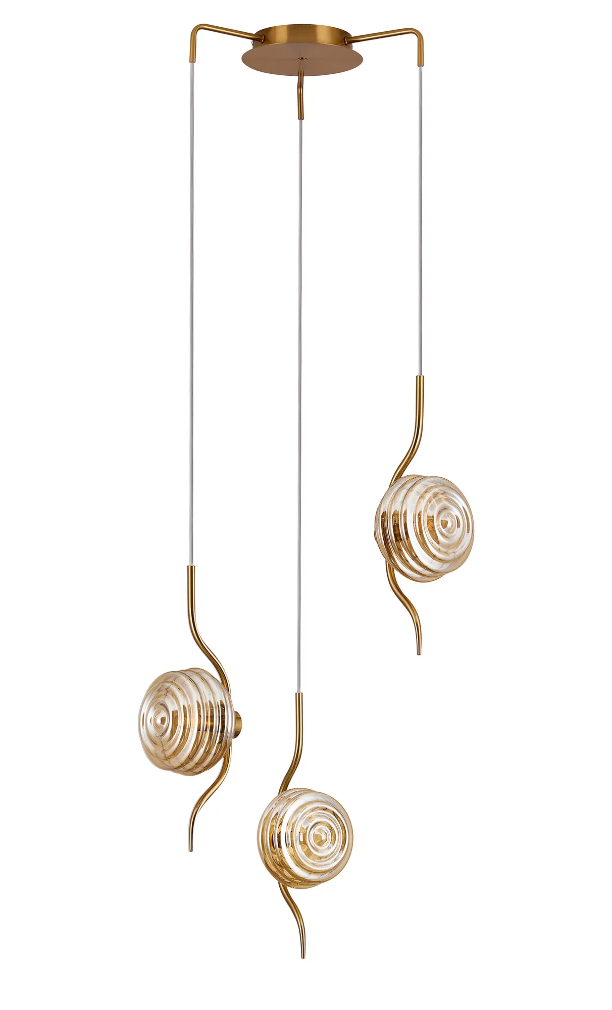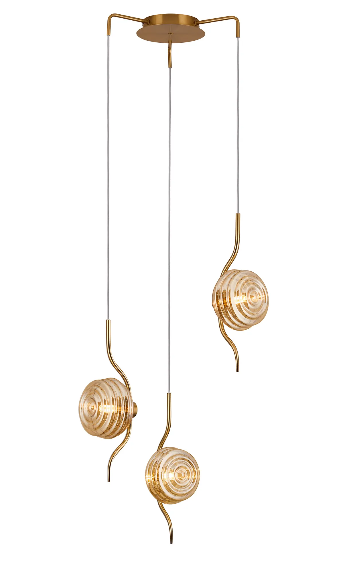 OTHER Penticton Round 3 Light Spider Pendant With 160mm Glass, Brass/Amber
