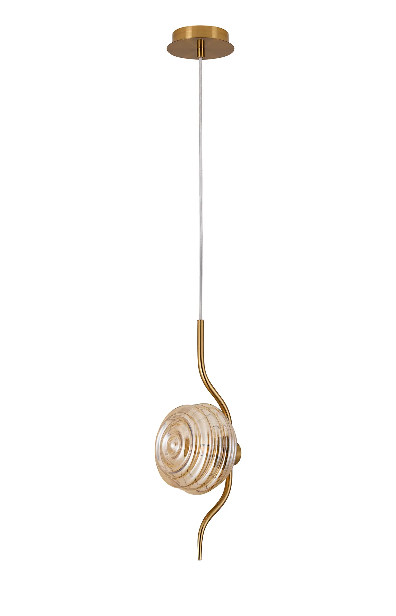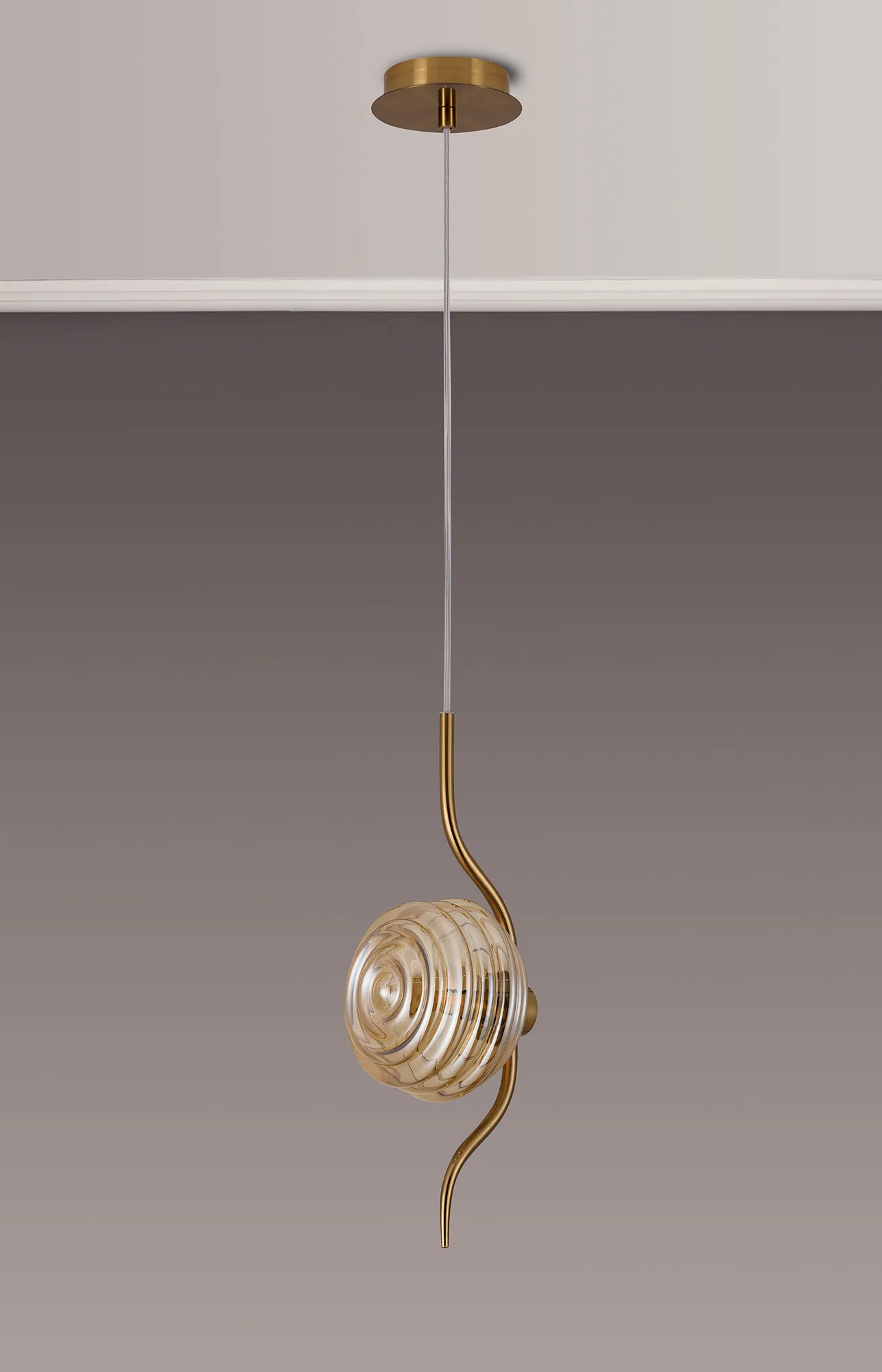 OTHER Penticton 1 Light Pendant With 160mm Glass, Brass/Amber