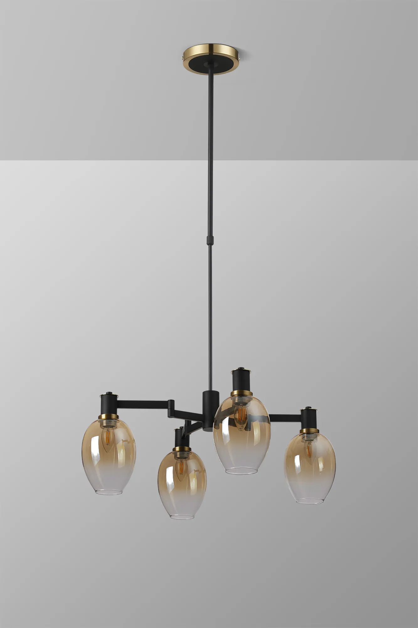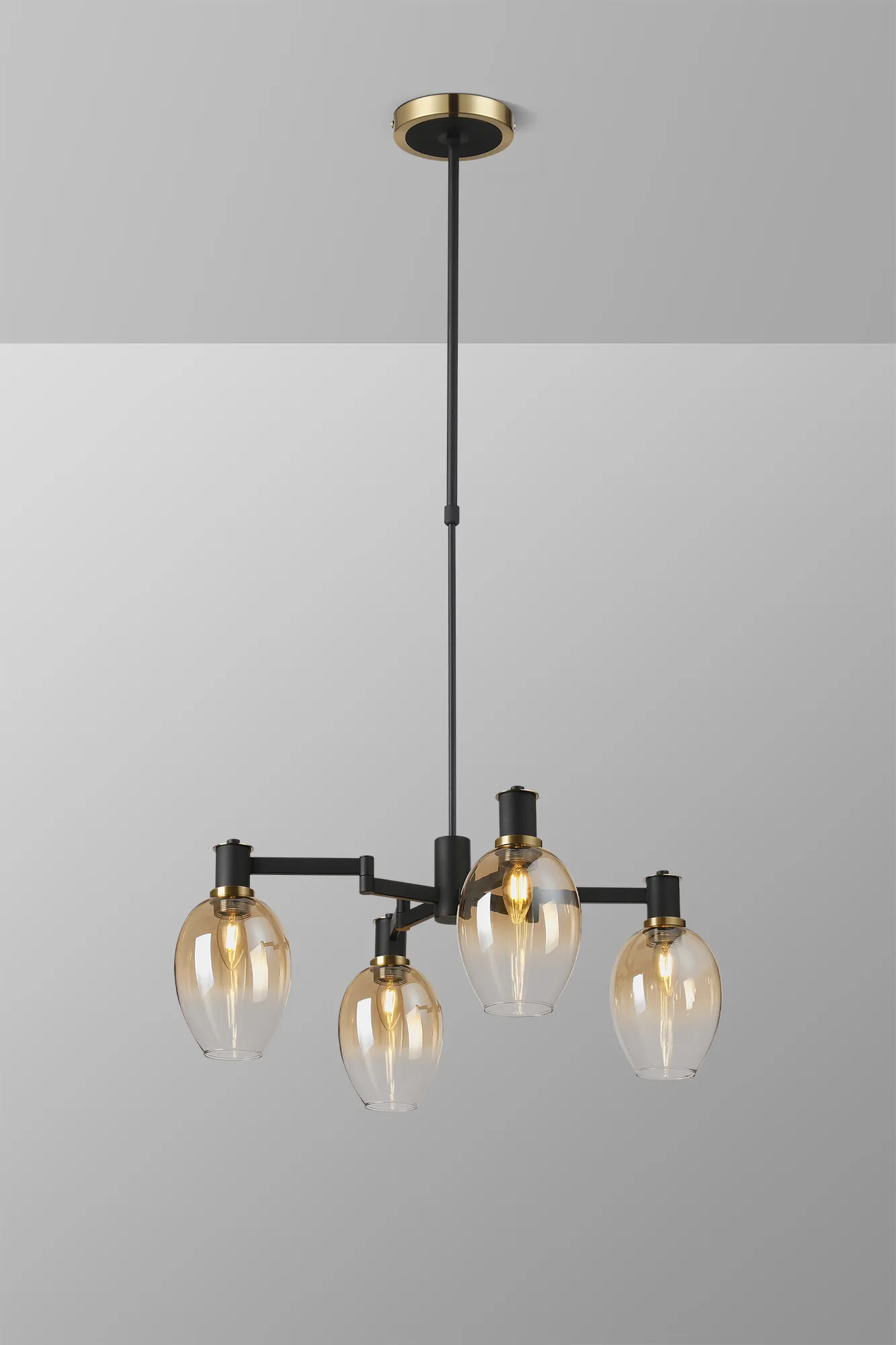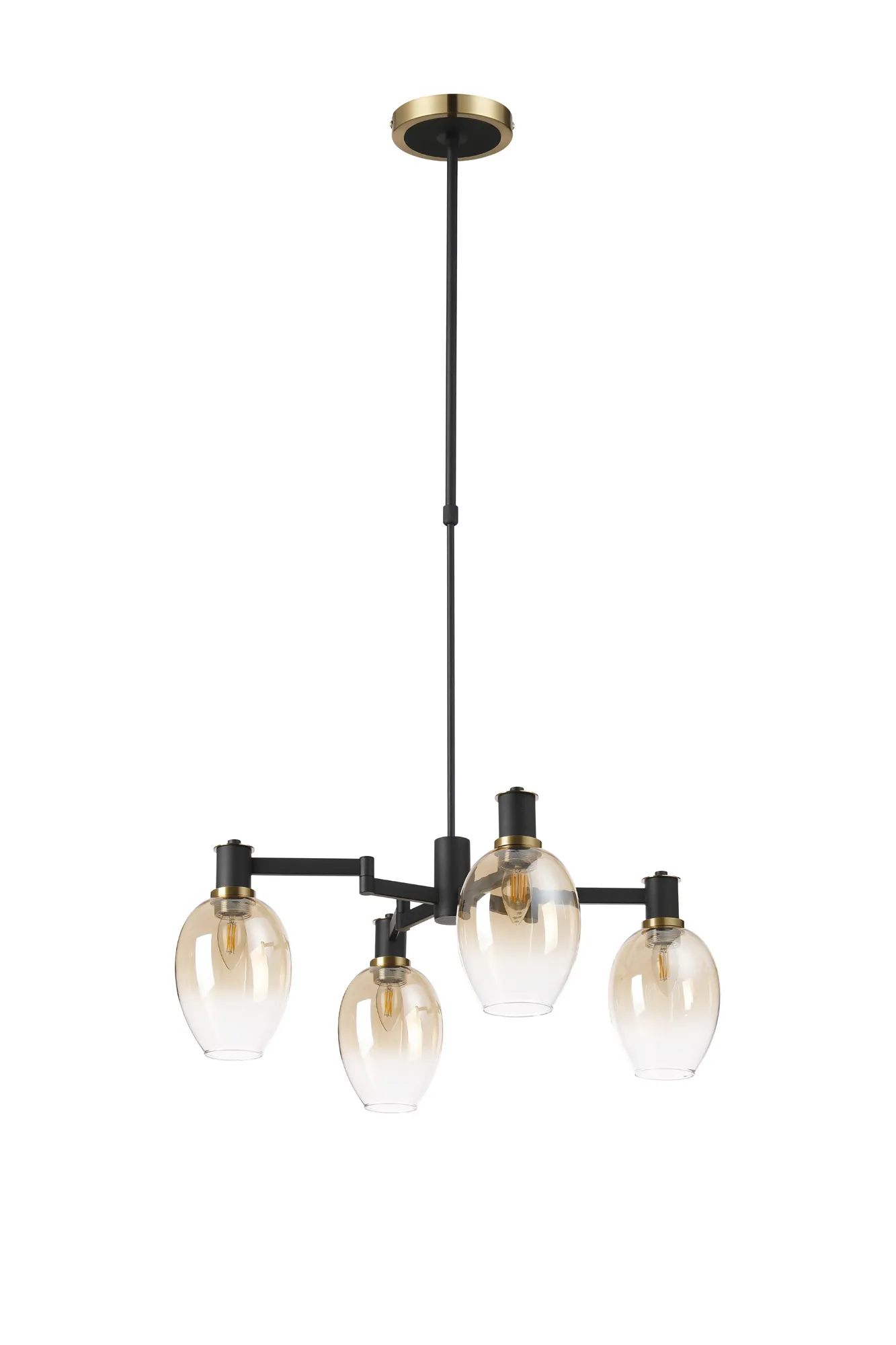 OTHER Alberni Swing Arm Telescopic Pendant 4 x E14 Brass/Satin Black/Amber Fade Wine Glass Glass