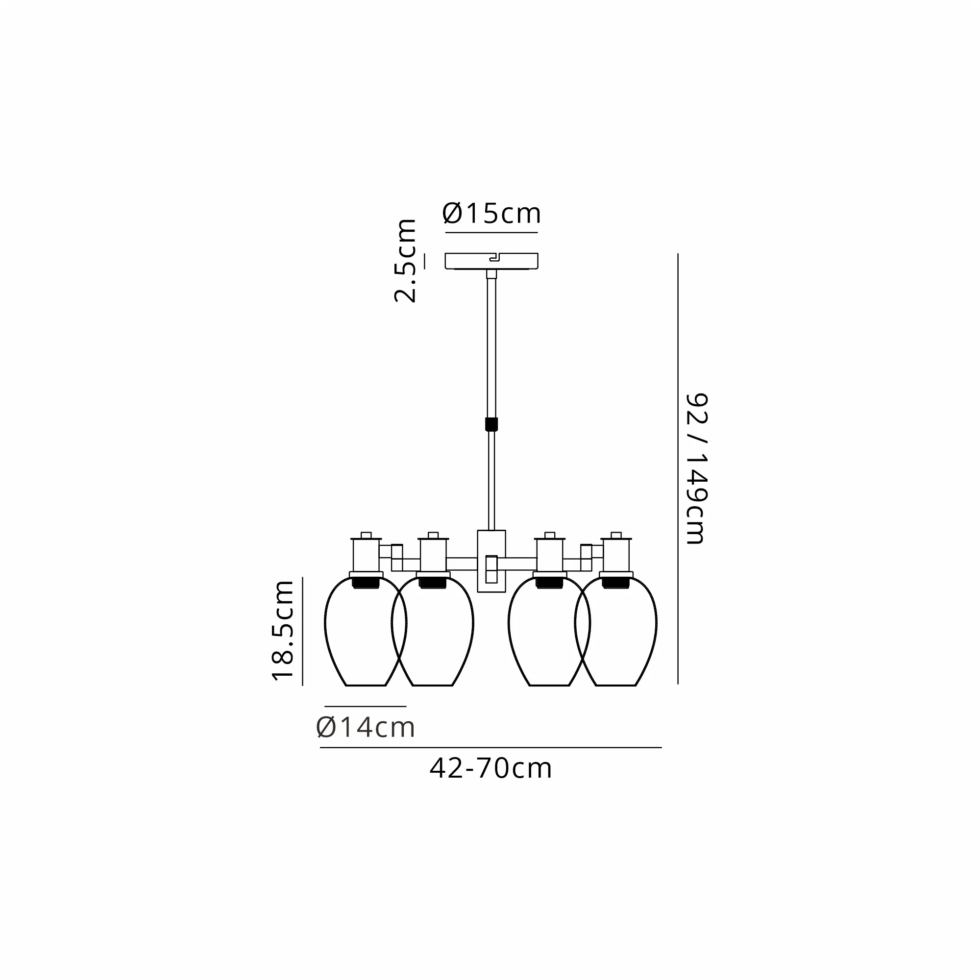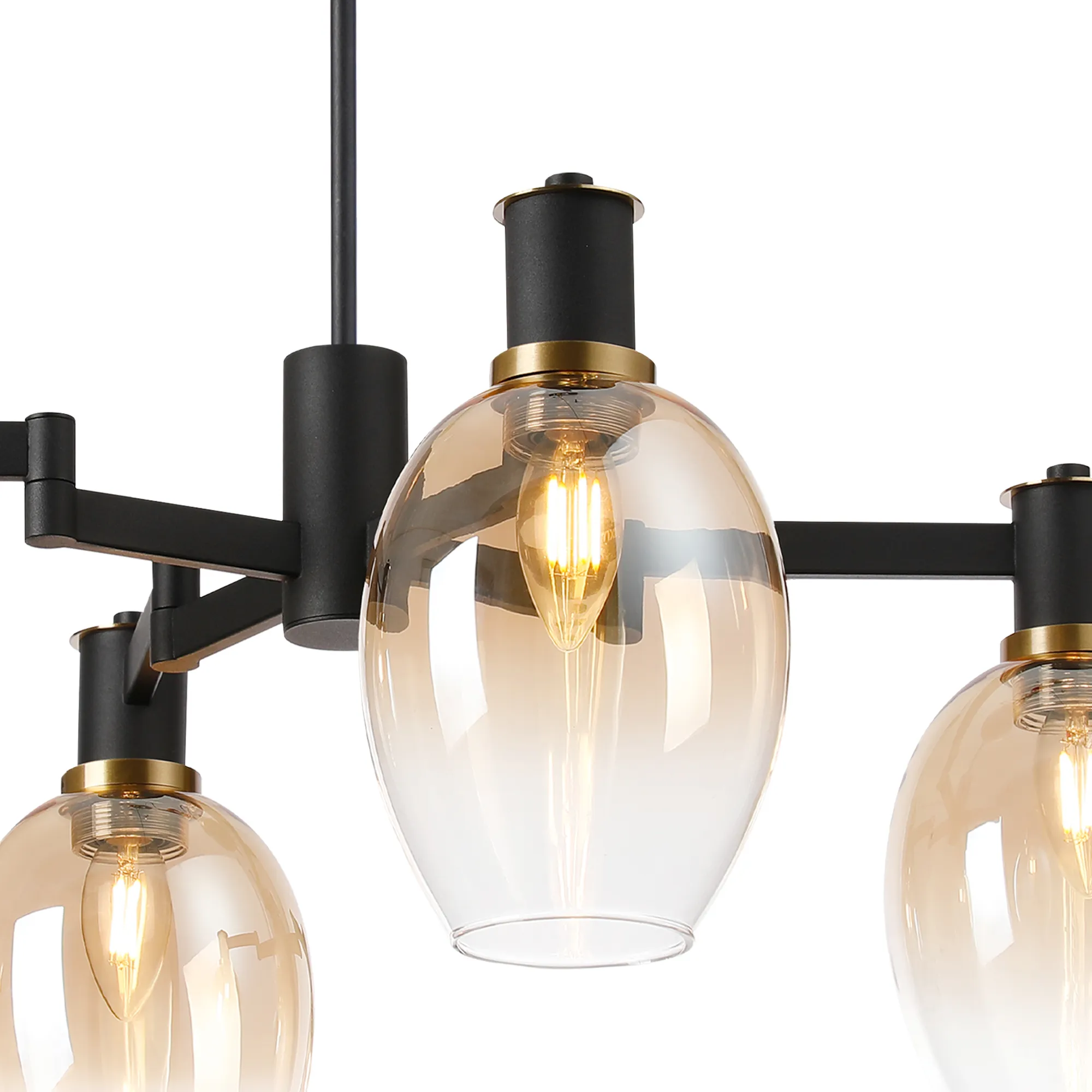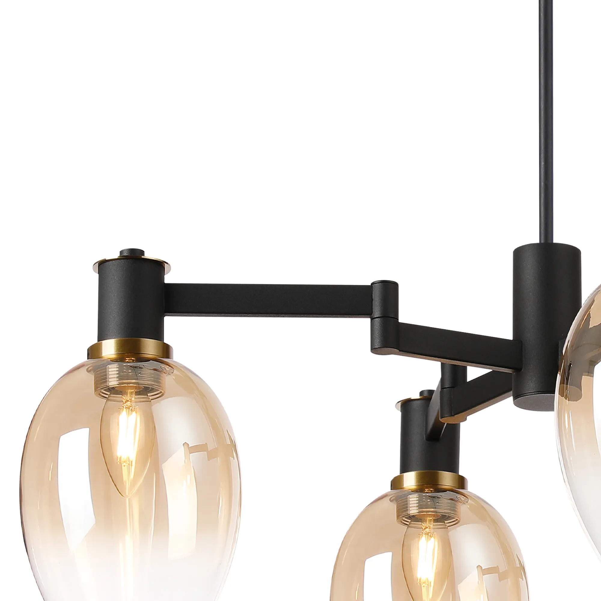 OTHER Alberni Swing Arm Telescopic Pendant 4 x E14 Brass/Satin Black/Amber Fade Wine Glass Glass