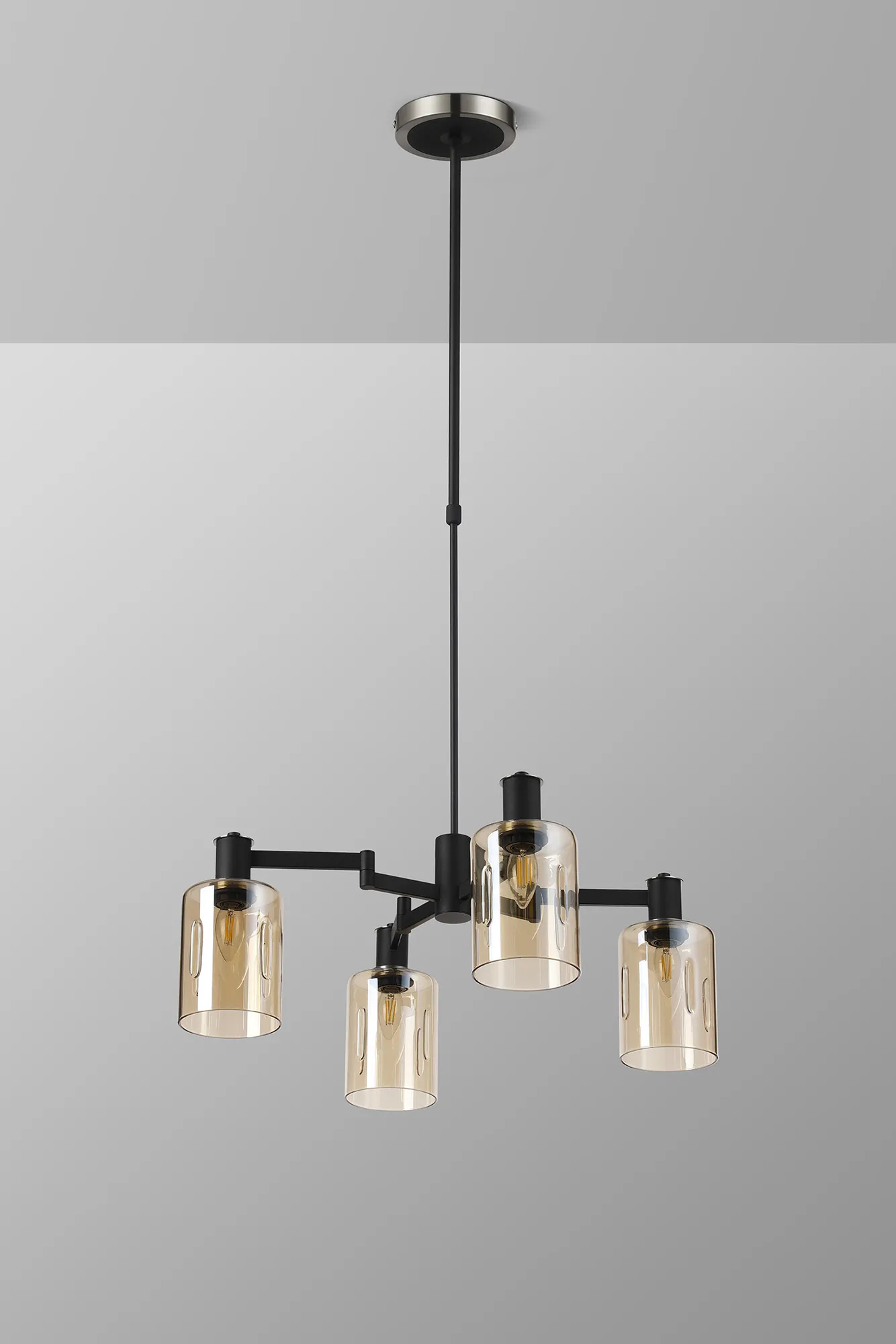 OTHER Alberni Swing Arm Telescopic Pendant 4 x E14 Satin Nickel/Satin Black/Amber Uniform Dimple Cylinder Glass