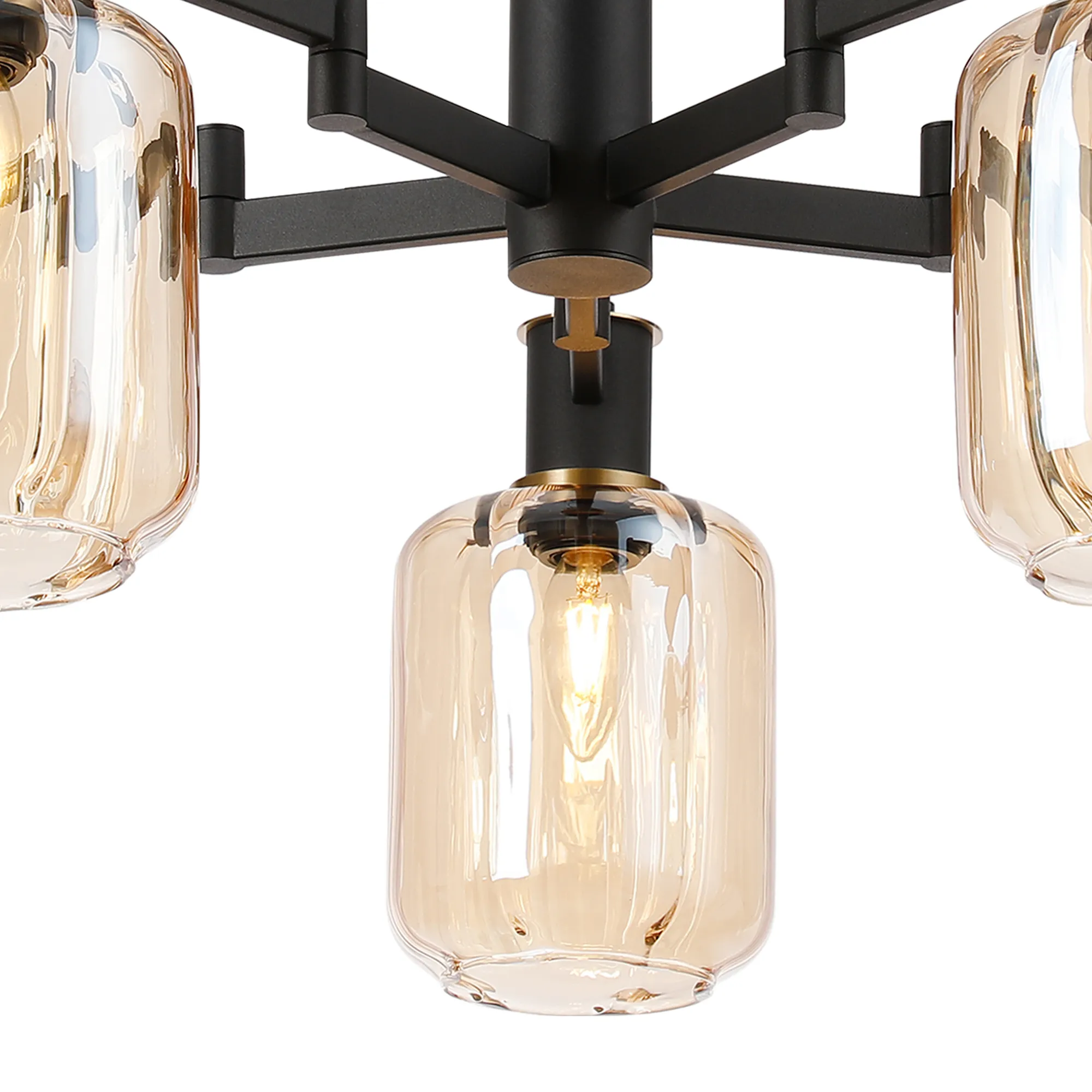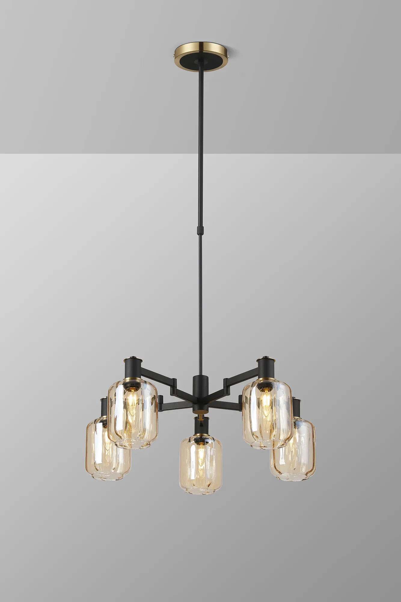 OTHER Alberni Swing Arm Telescopic Pendant 5 x E14 Brass/Satin Black/Amber Striped Cylinder Glass