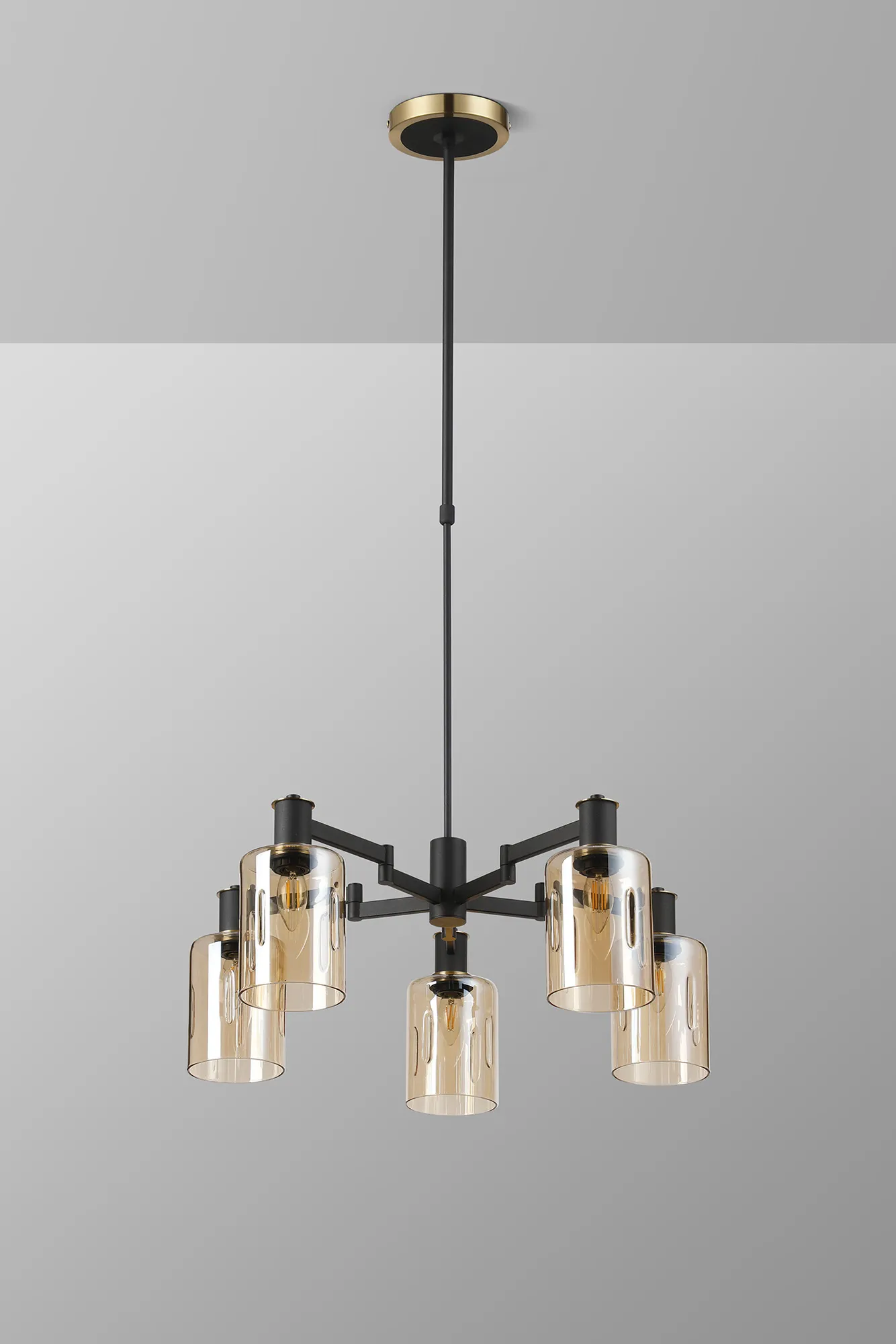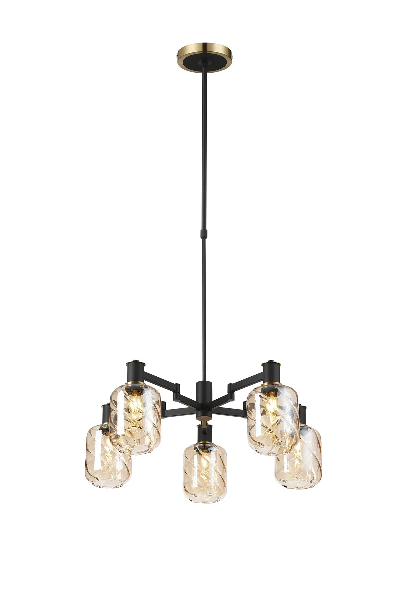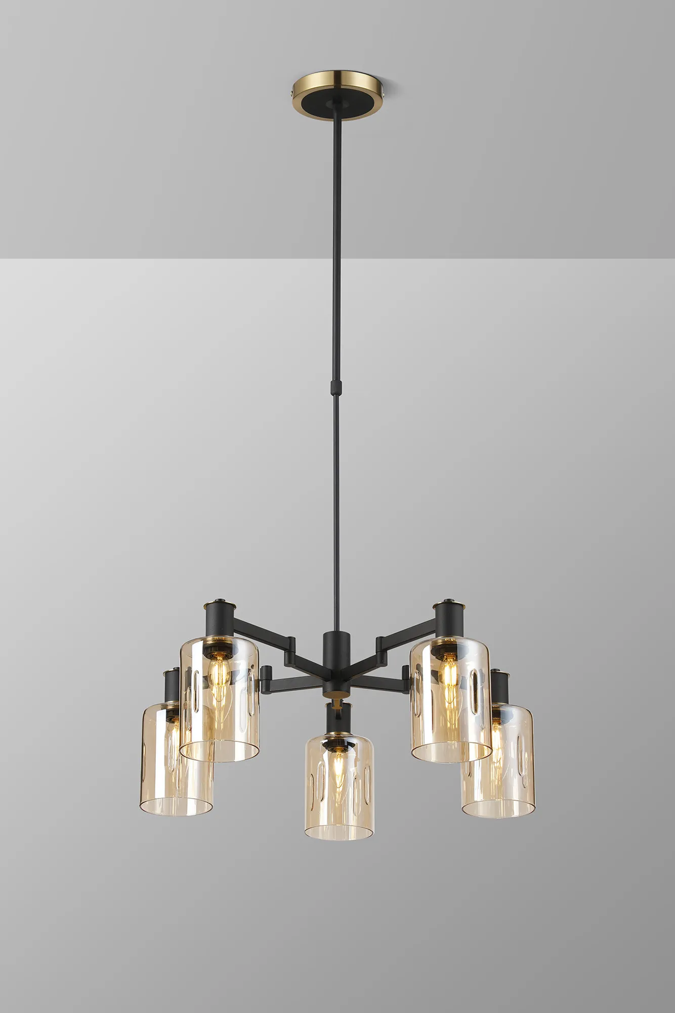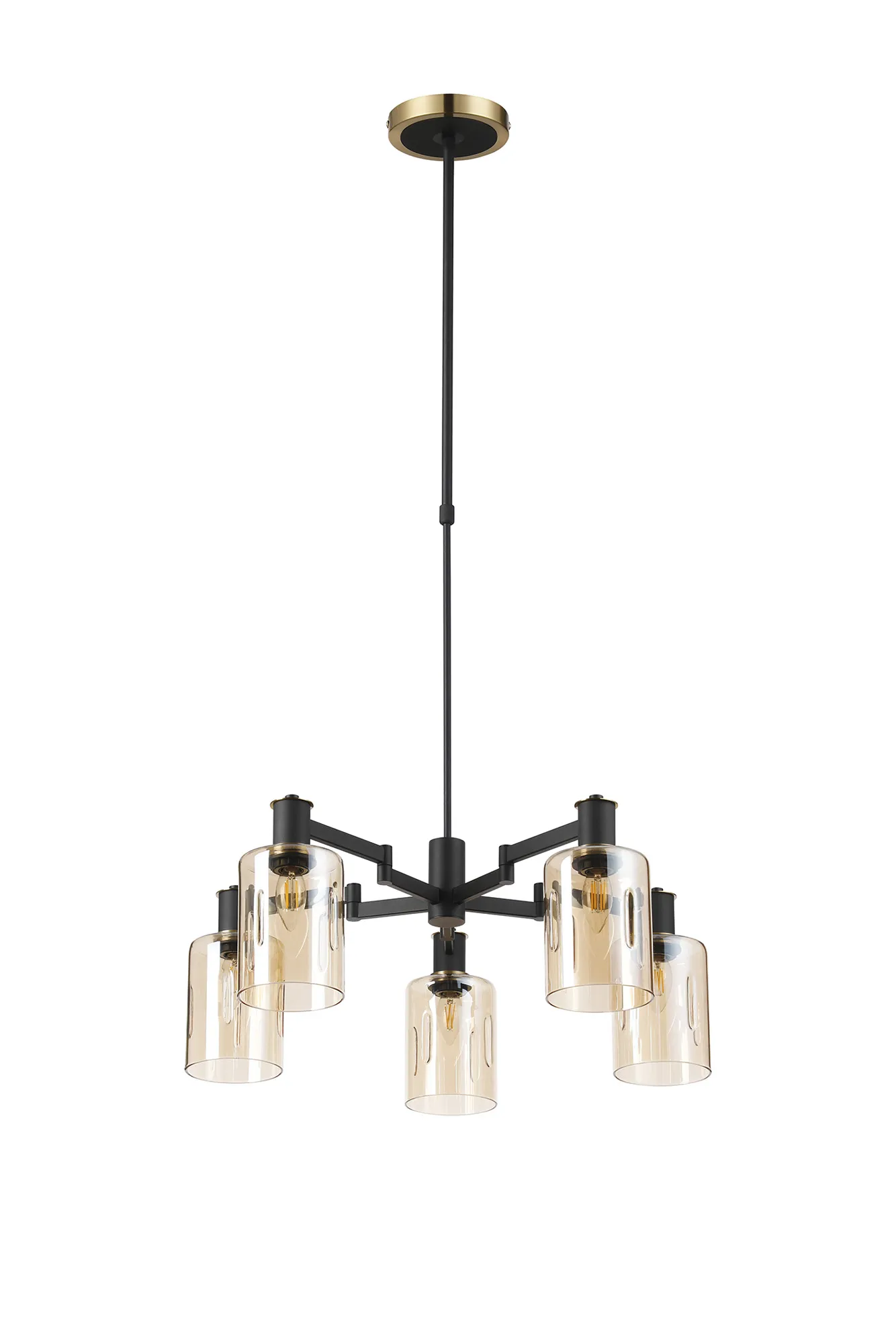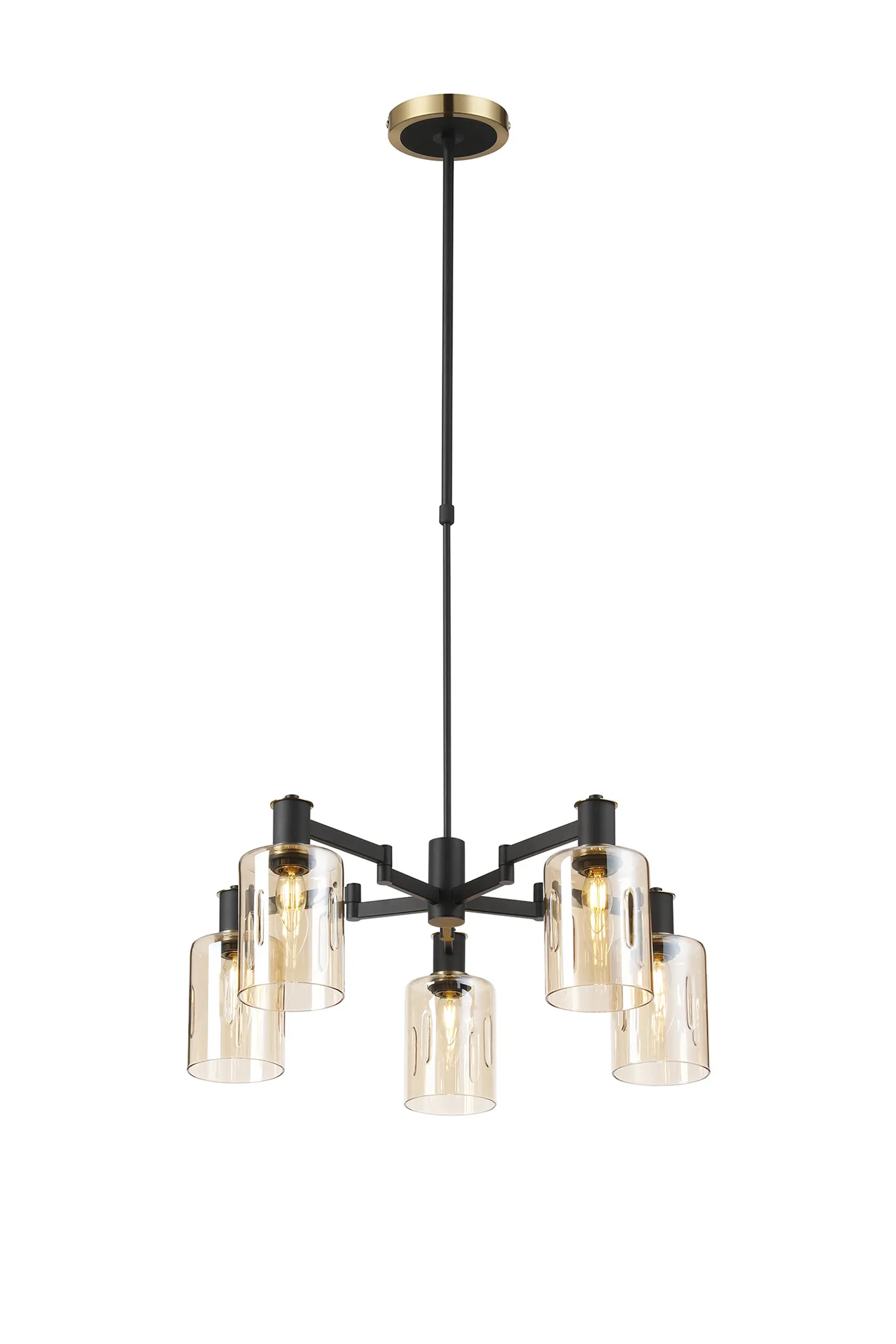 OTHER Alberni Swing Arm Telescopic Pendant 5 x E14 Brass/Satin Black/Amber Uniform Dimple Cylinder Glass