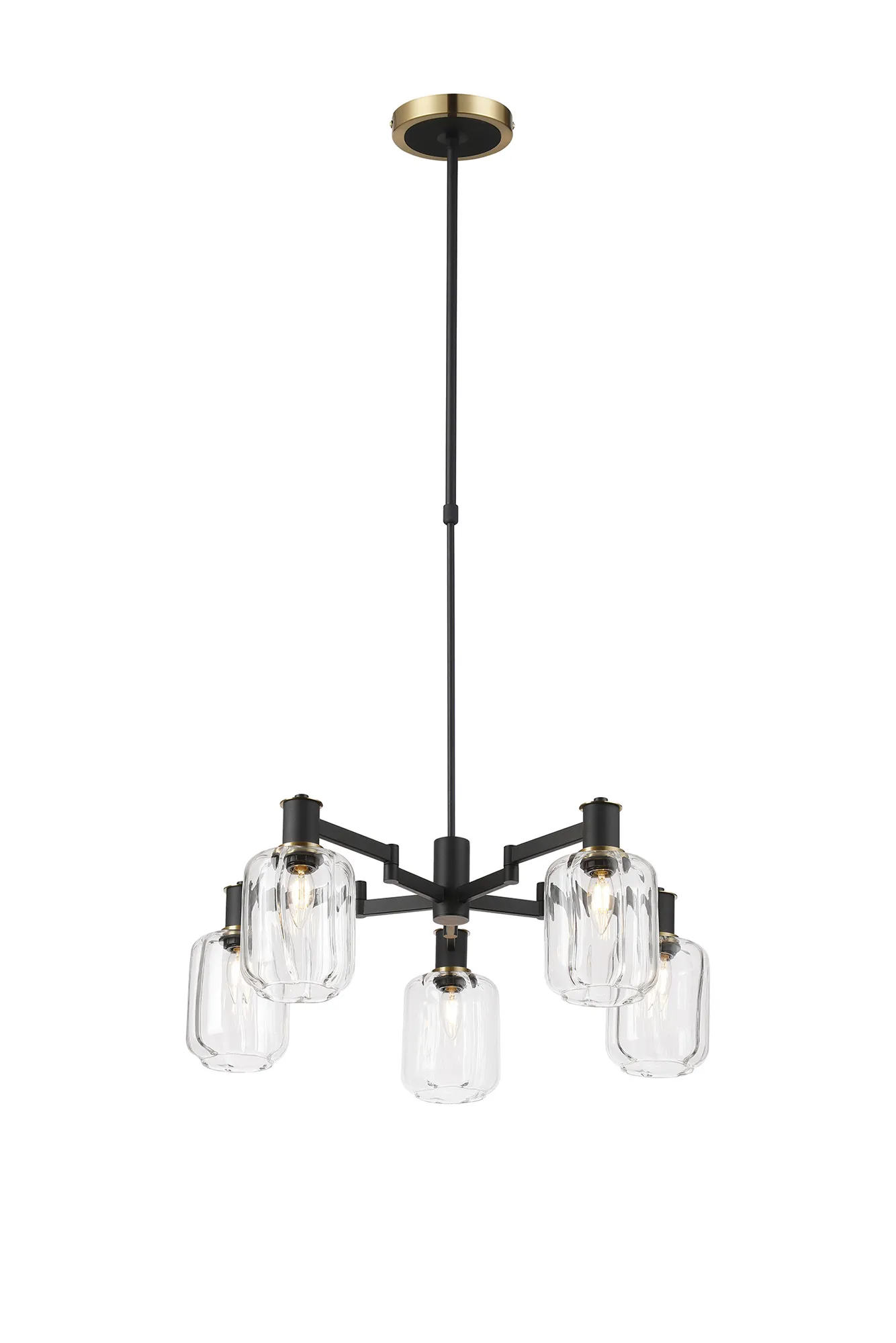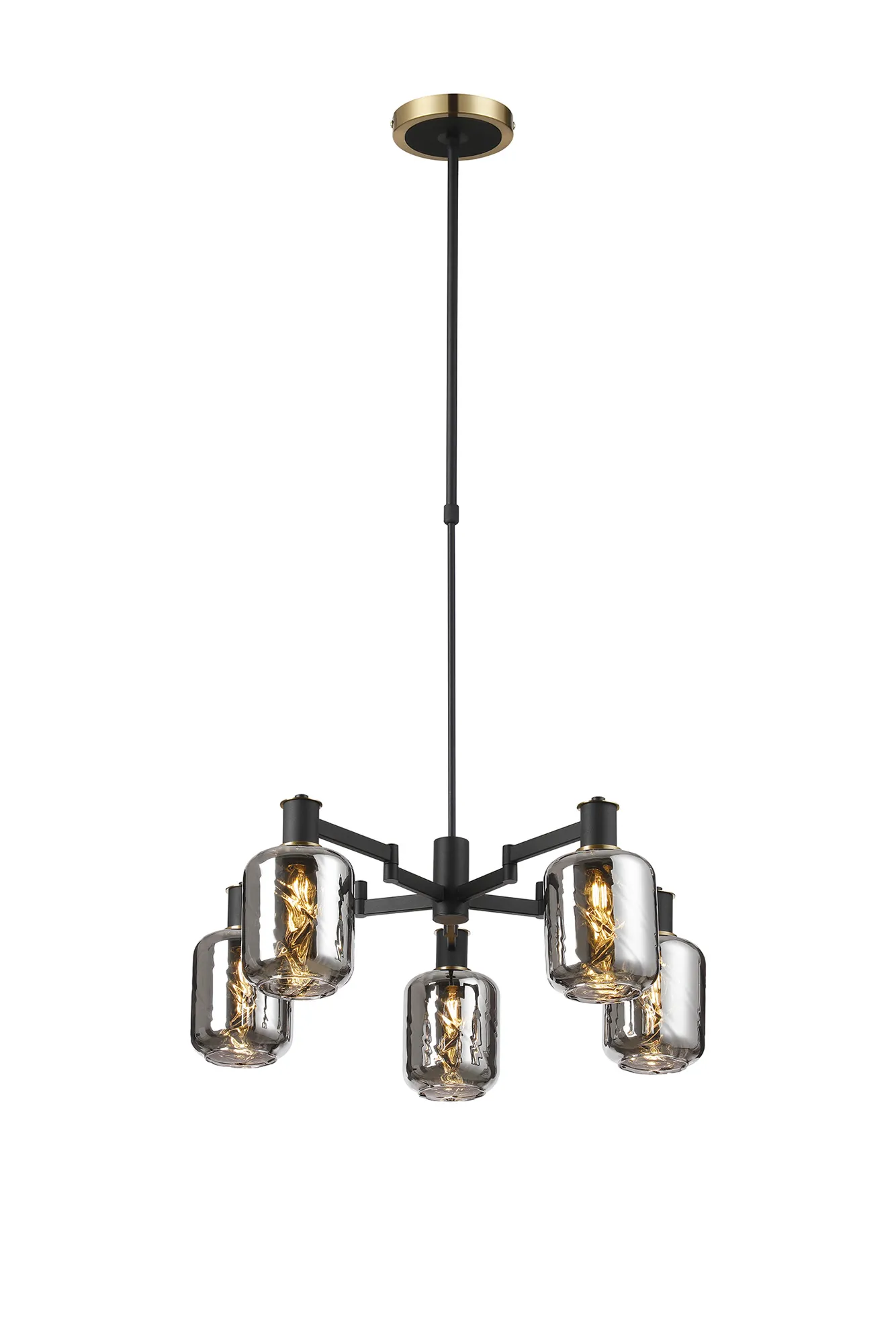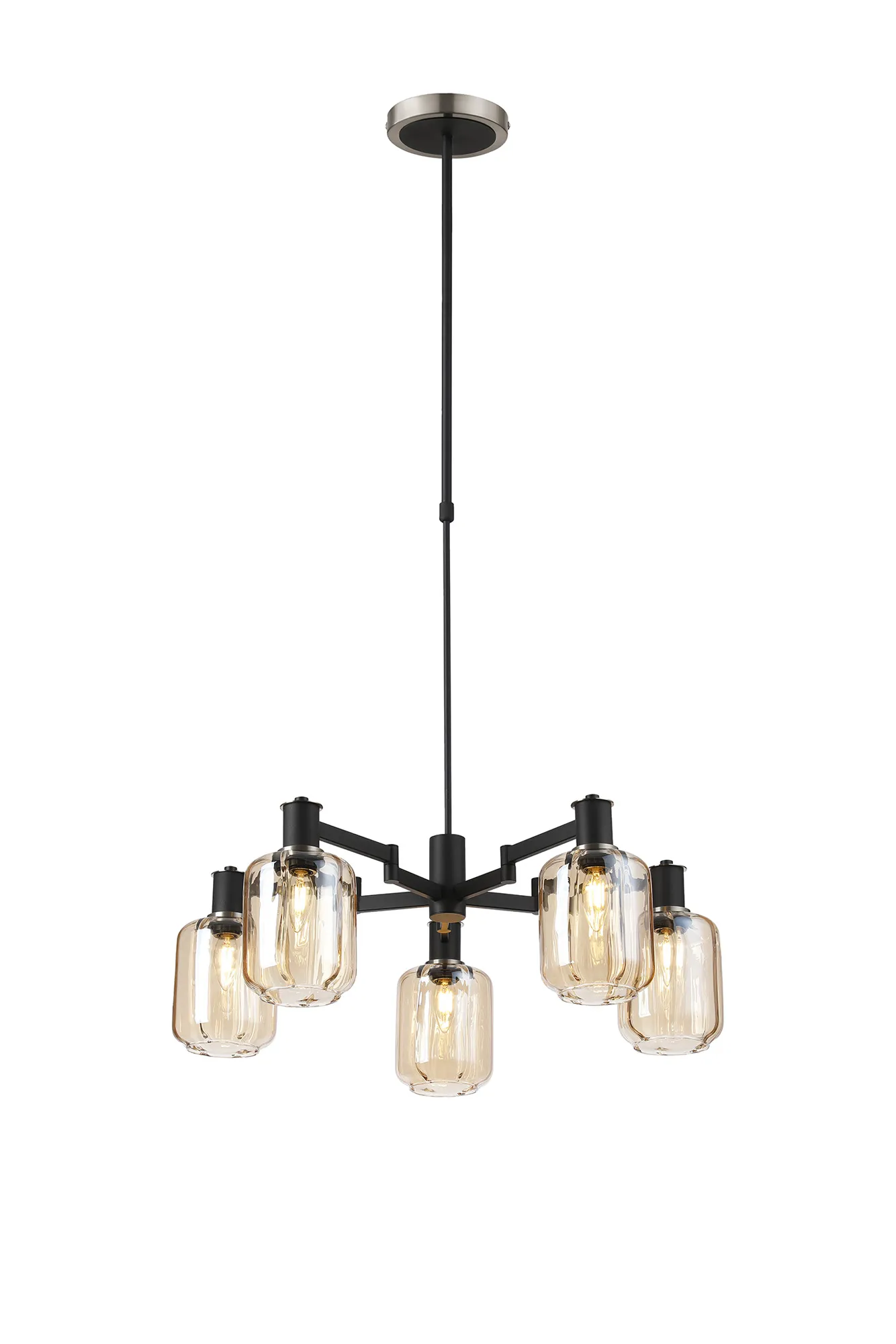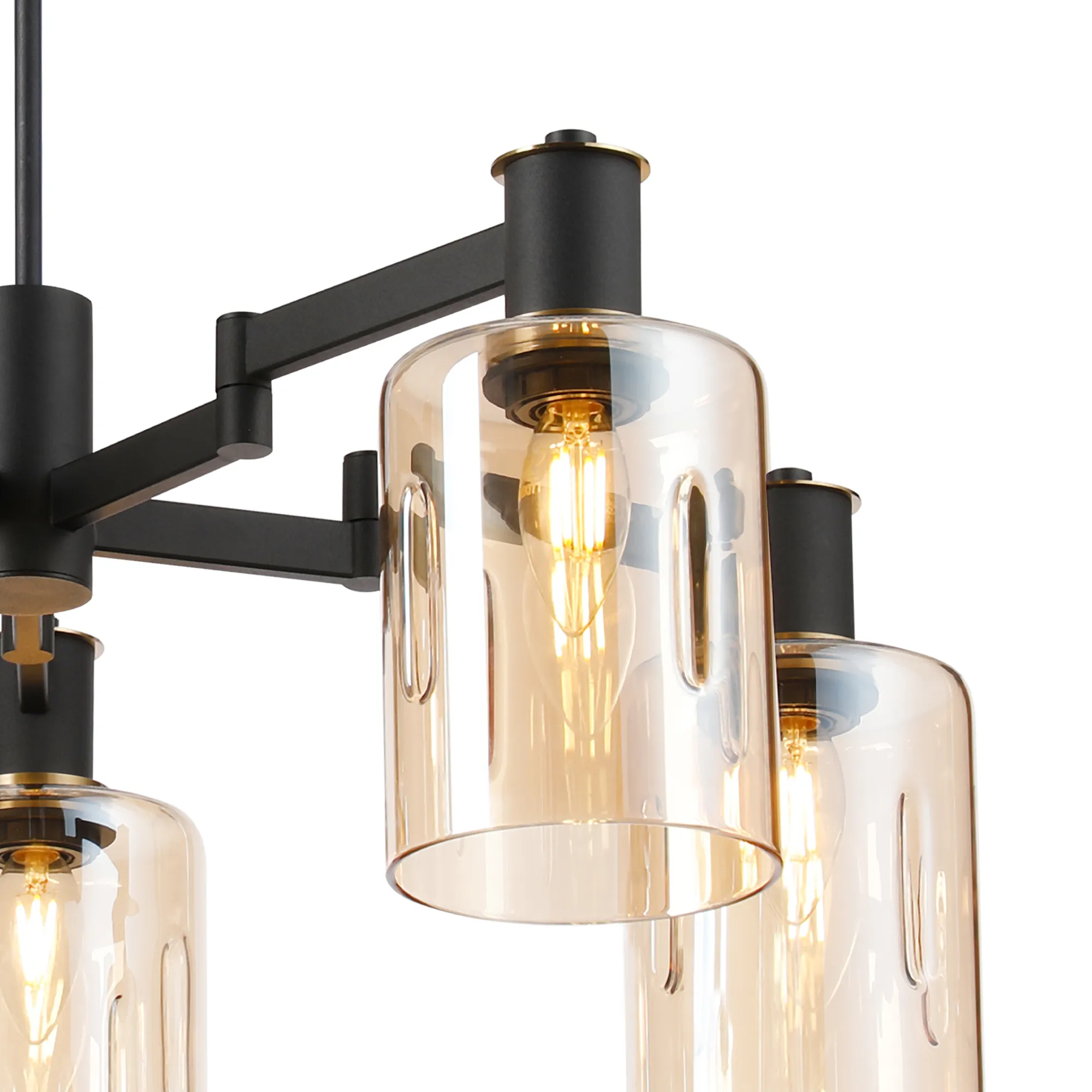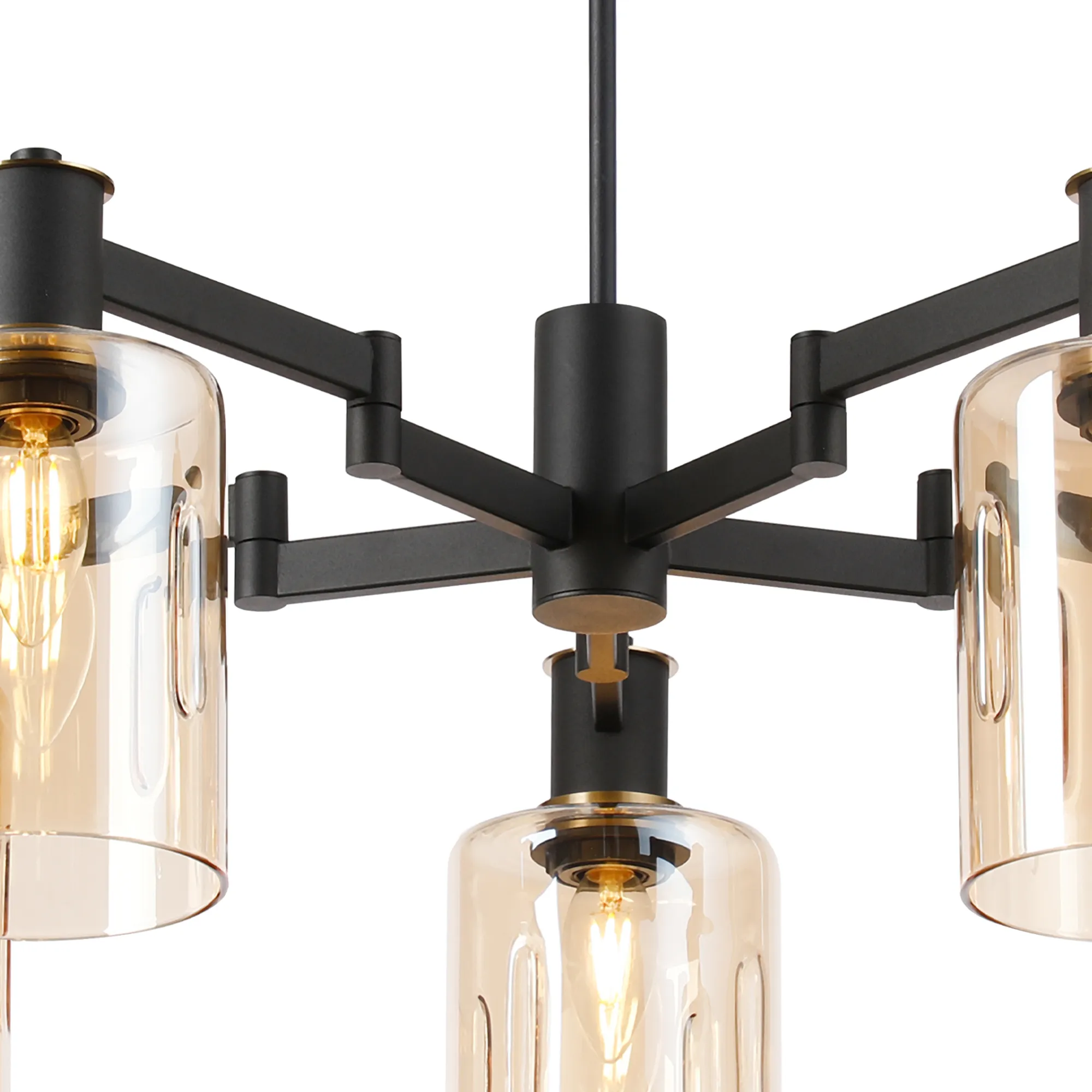 OTHER Alberni Swing Arm Telescopic Pendant 5 x E14 Brass/Satin Black/Amber Uniform Dimple Cylinder Glass