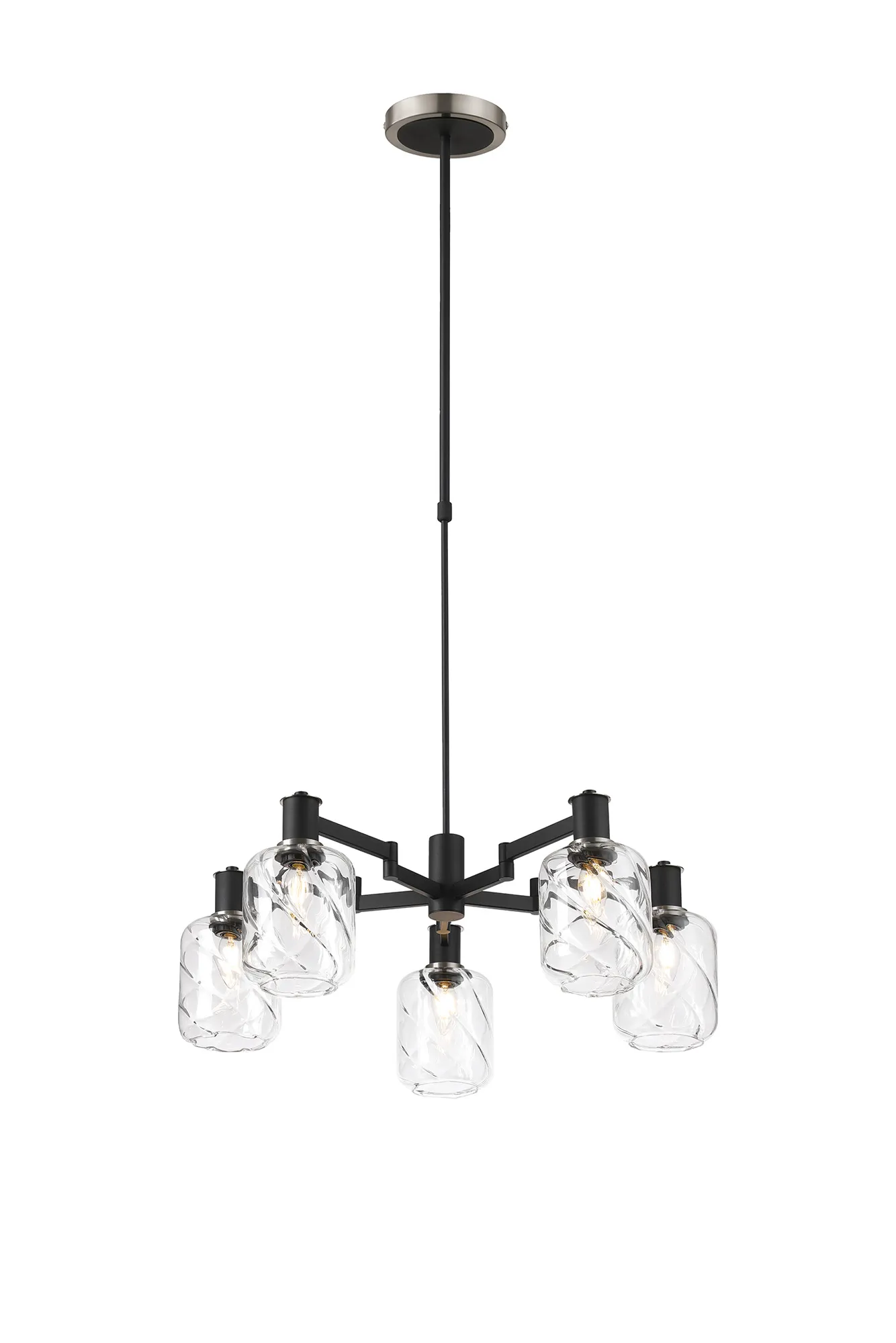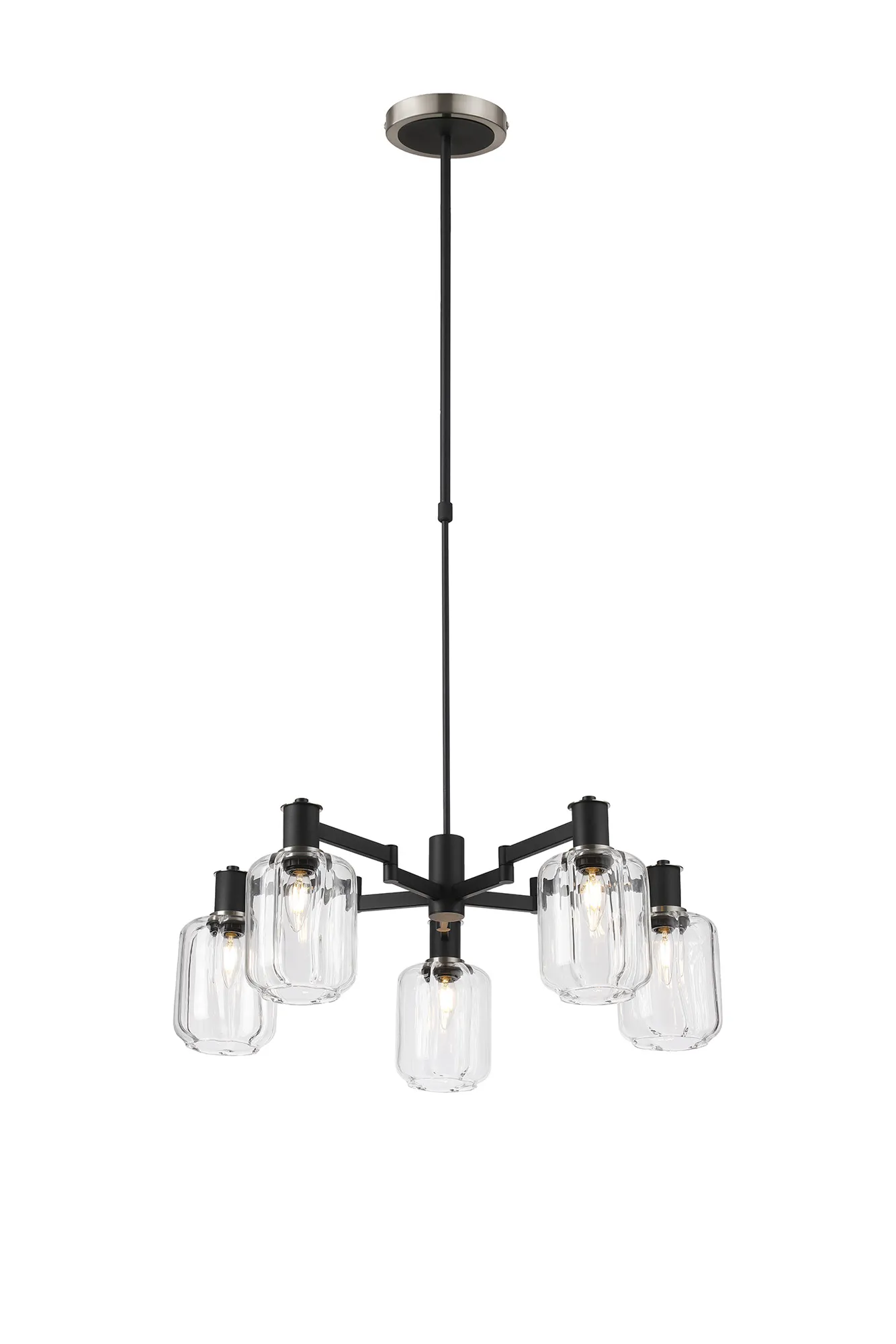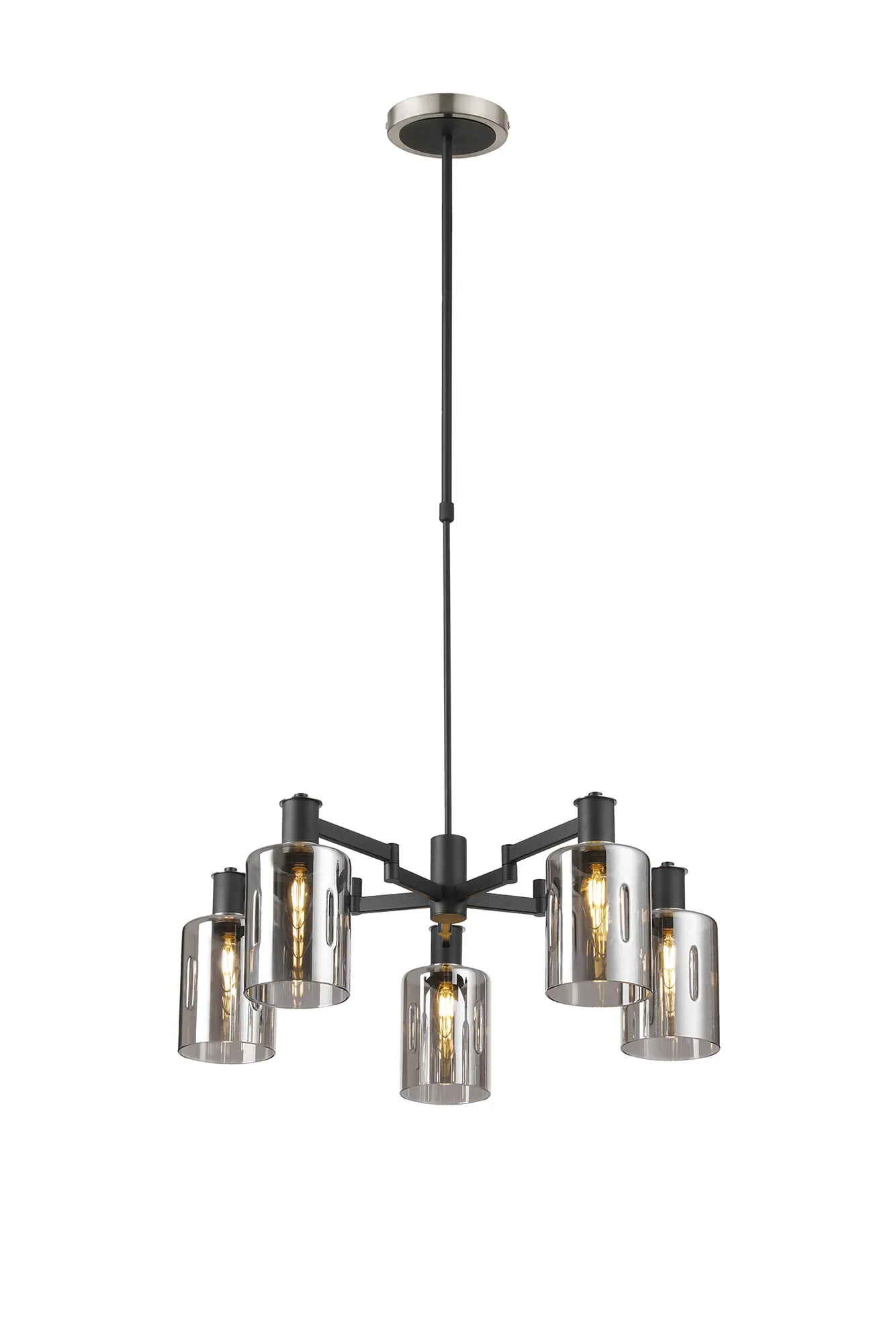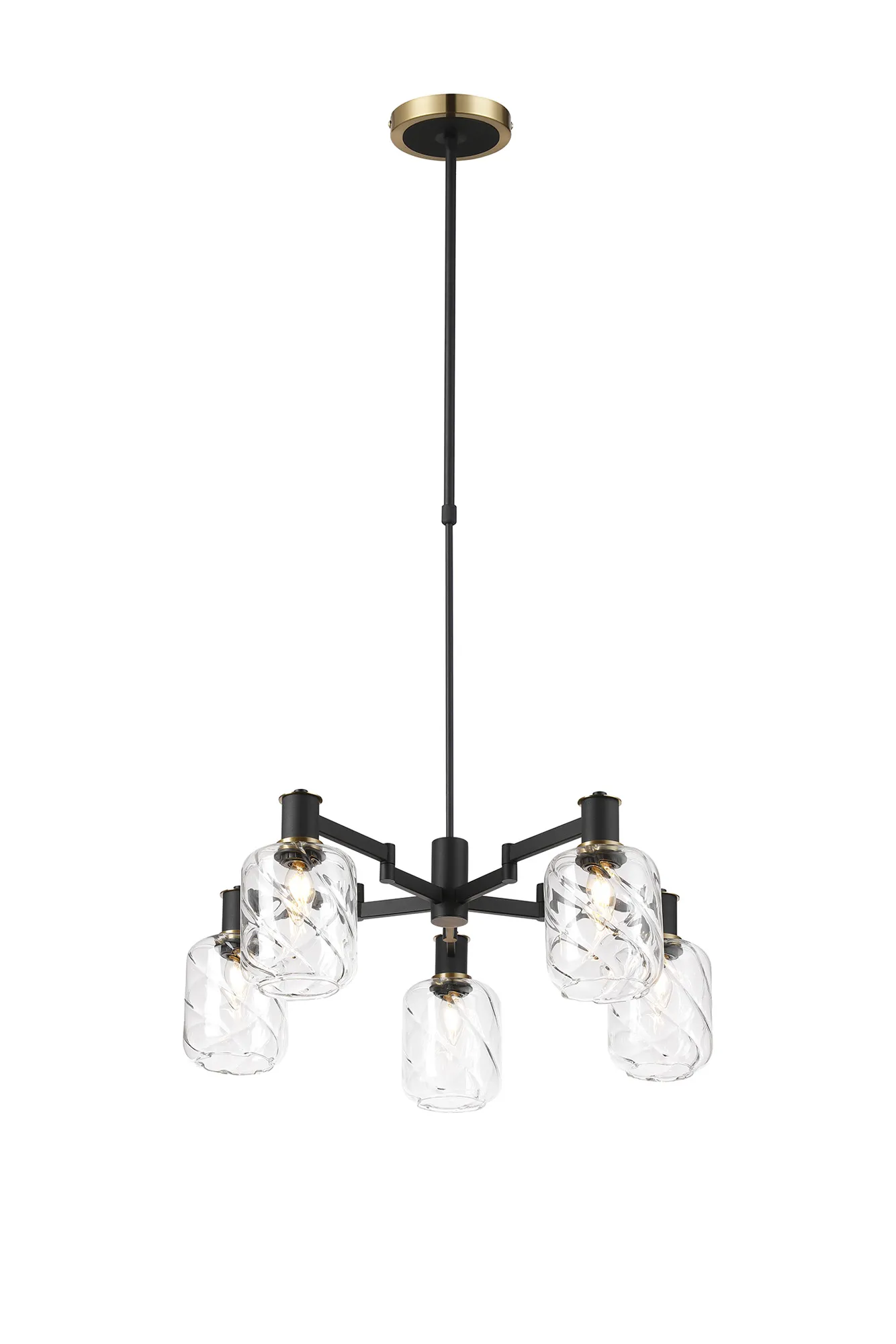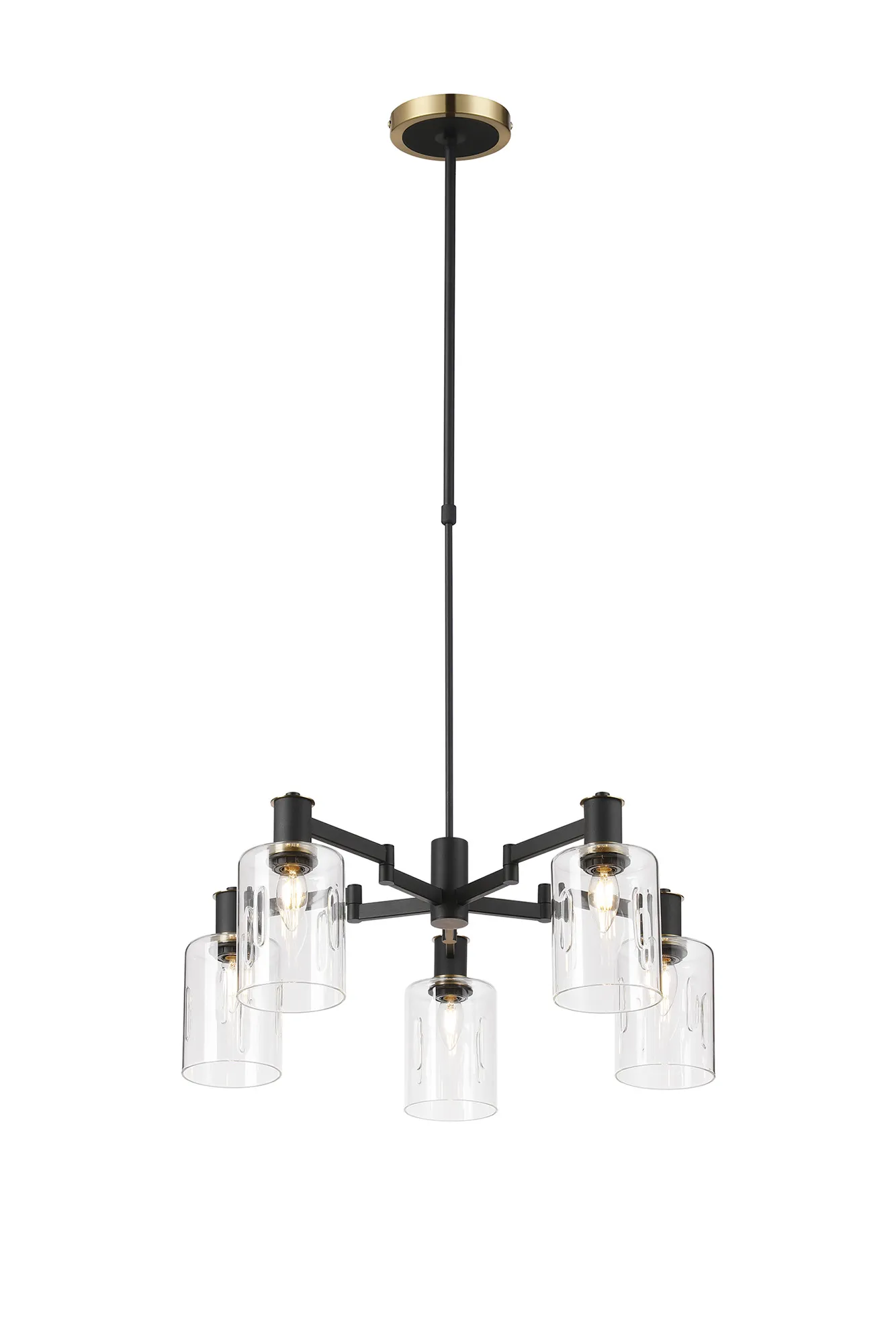 OTHER Alberni Swing Arm Telescopic Pendant 5 x E14 Brass/Satin Black/Amber Uniform Dimple Cylinder Glass