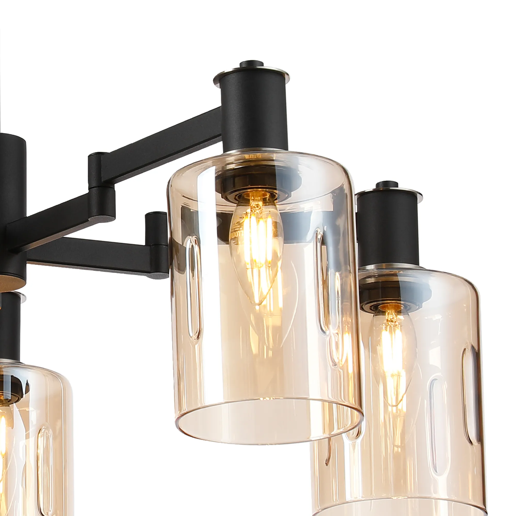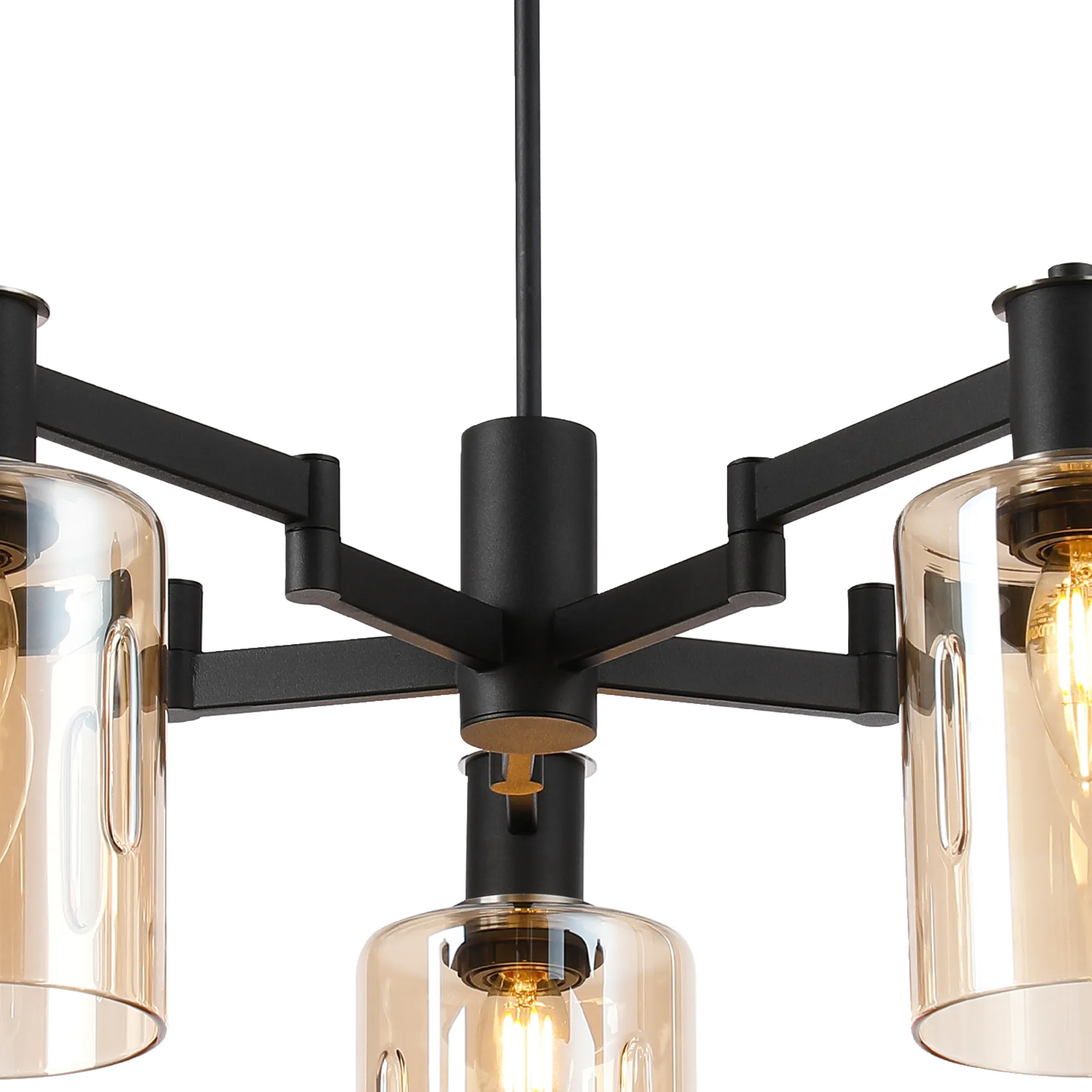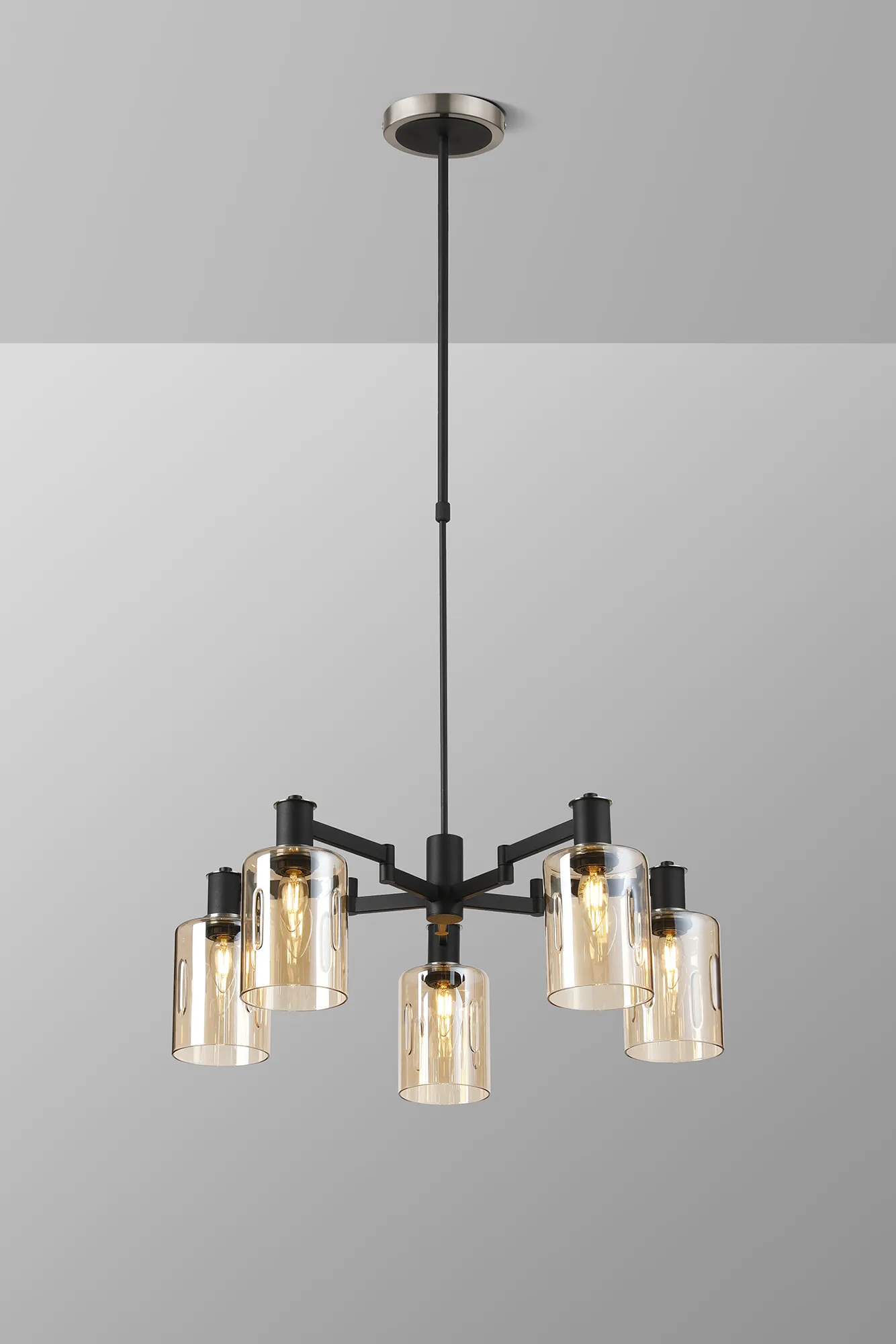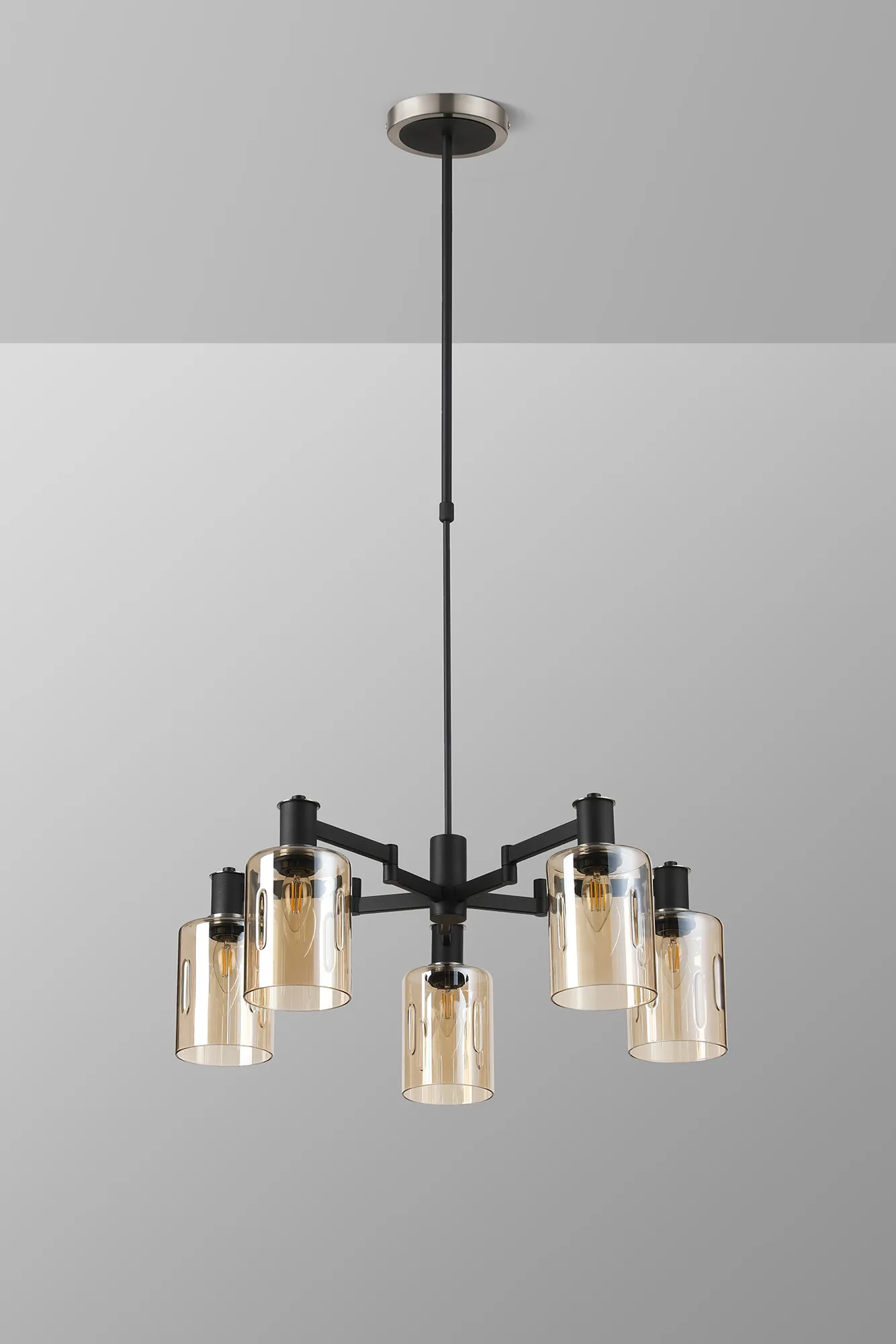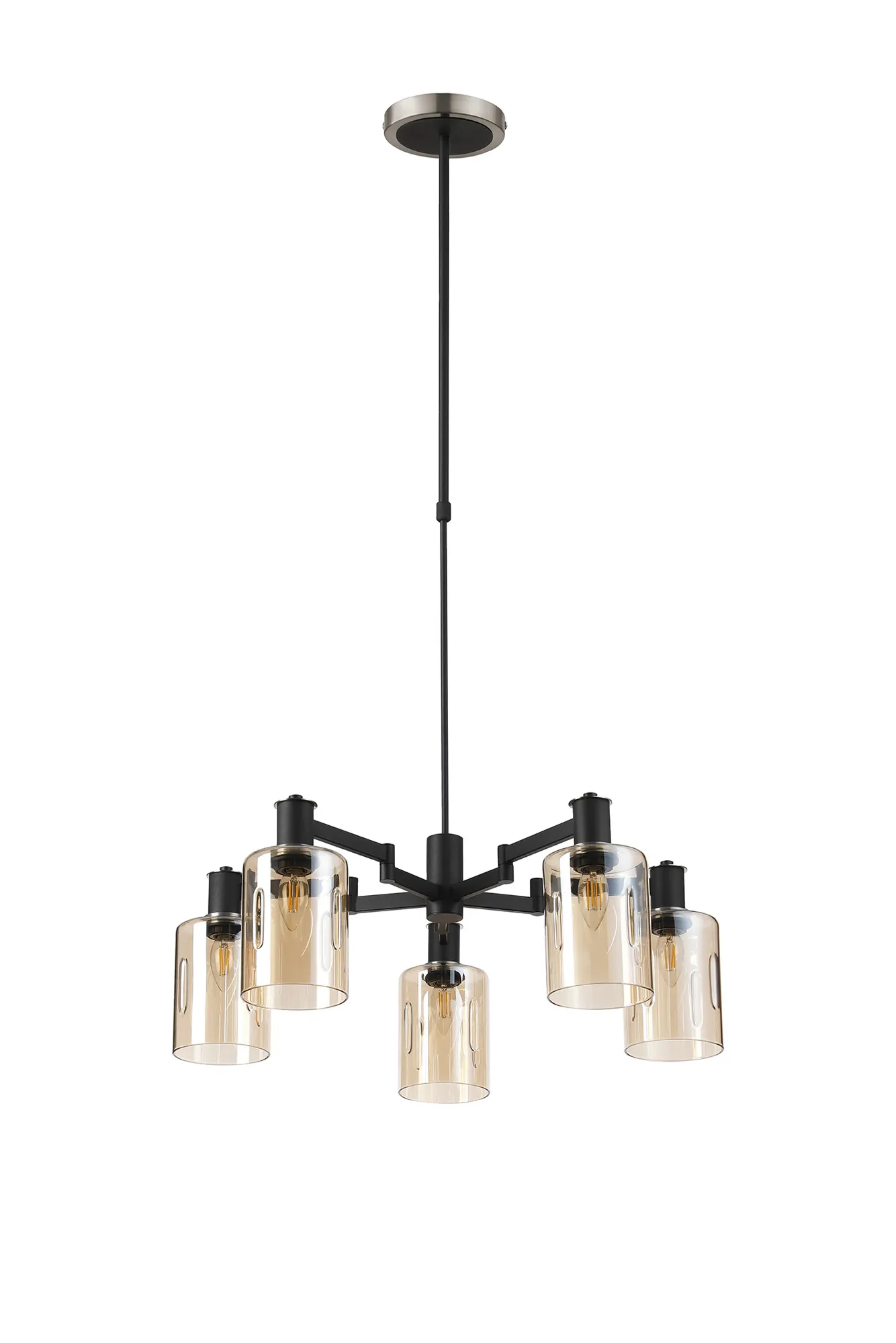 OTHER Alberni Swing Arm Telescopic Pendant 5 x E14 Satin Nickel/Satin Black/Amber Uniform Dimple Cylinder Glass