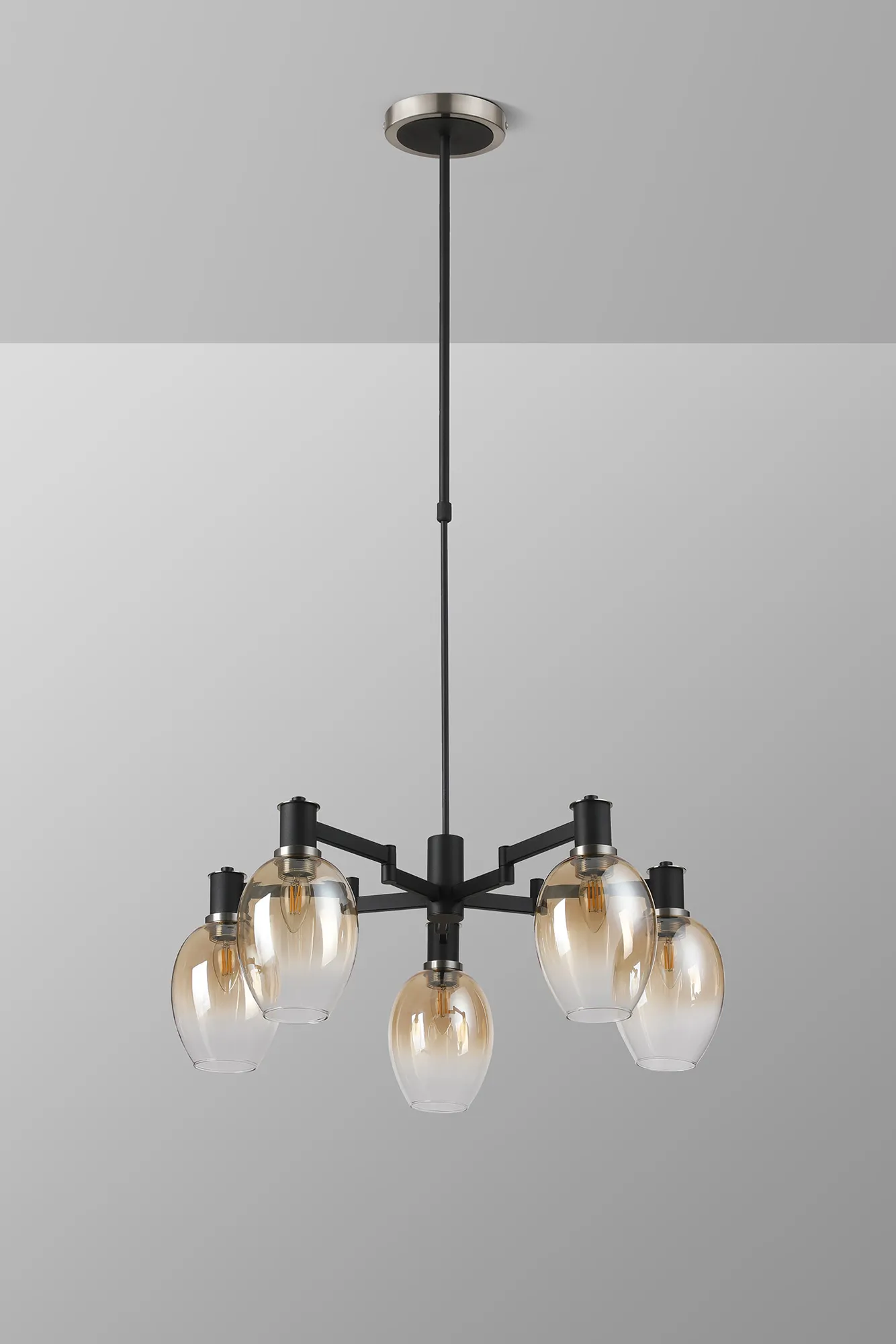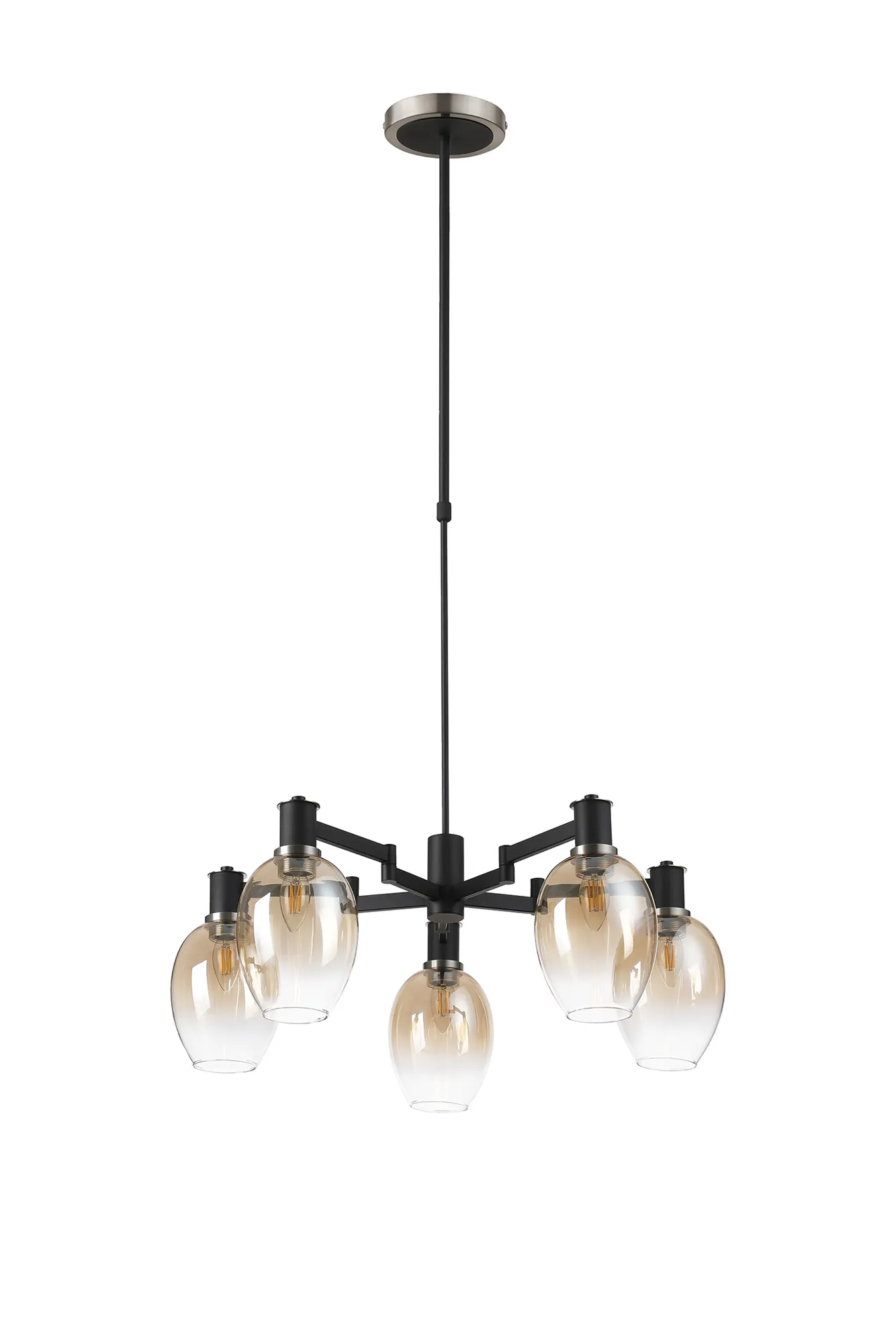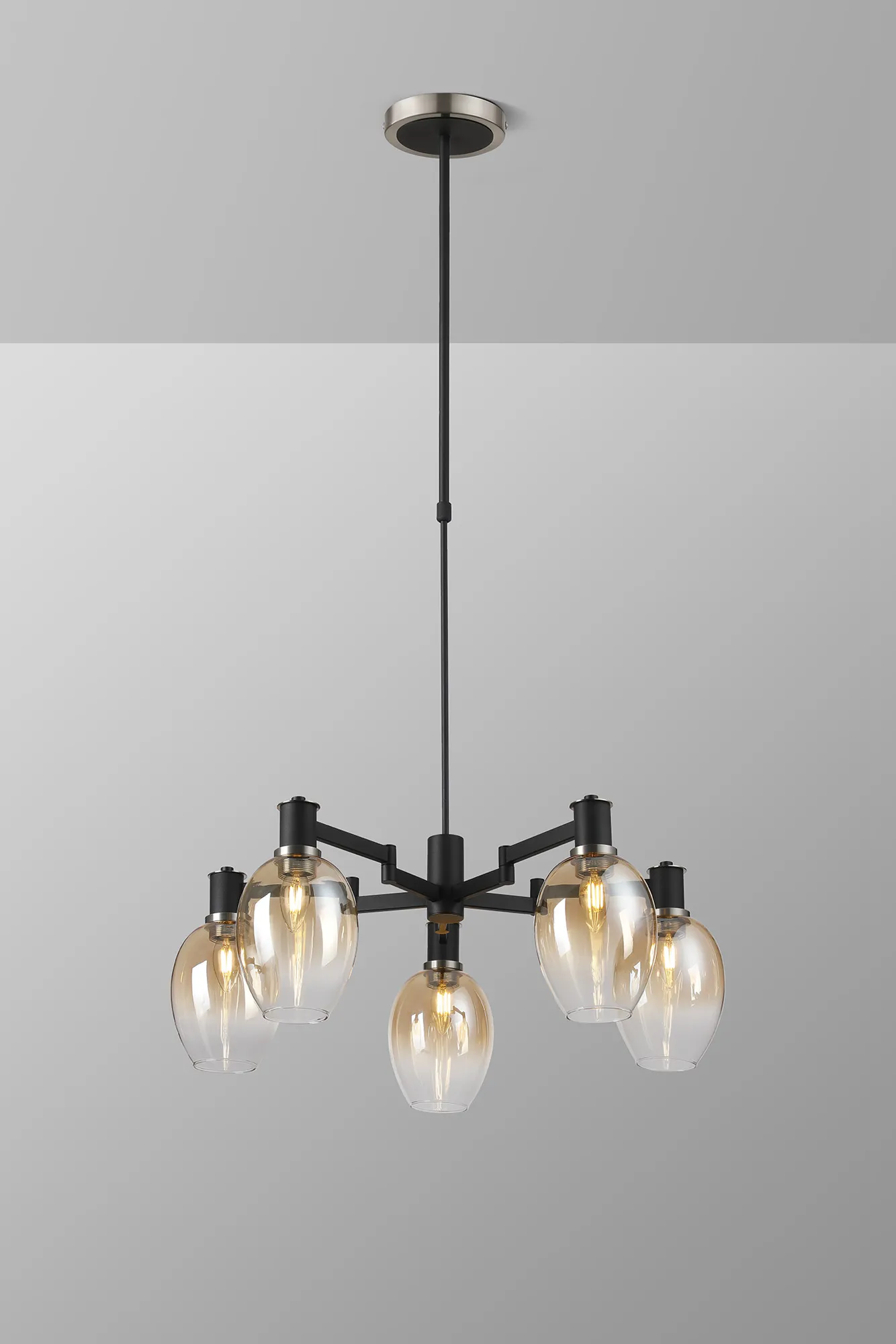 OTHER Alberni Swing Arm Telescopic Pendant 5 x E14 Satin Nickel/Satin Black/Amber Fade Wine Glass Glass