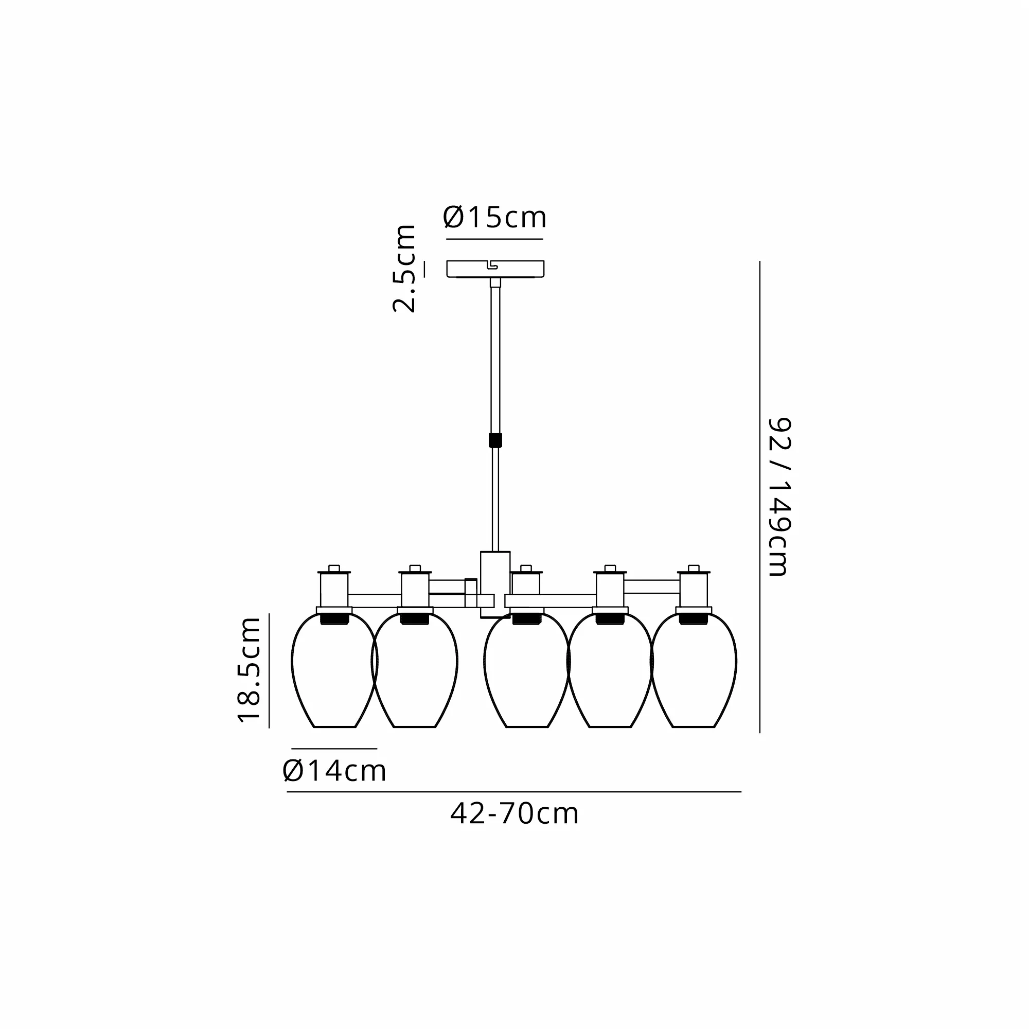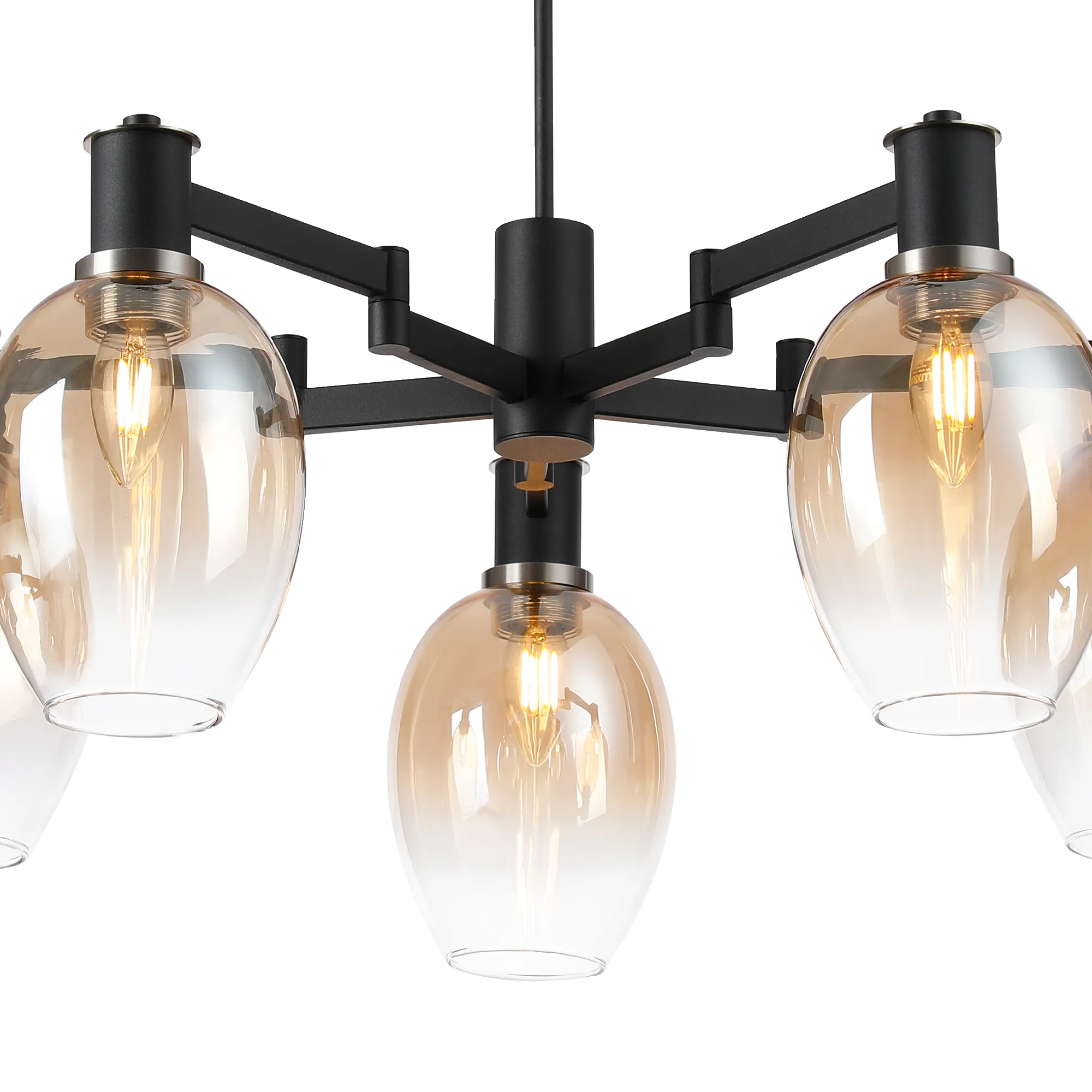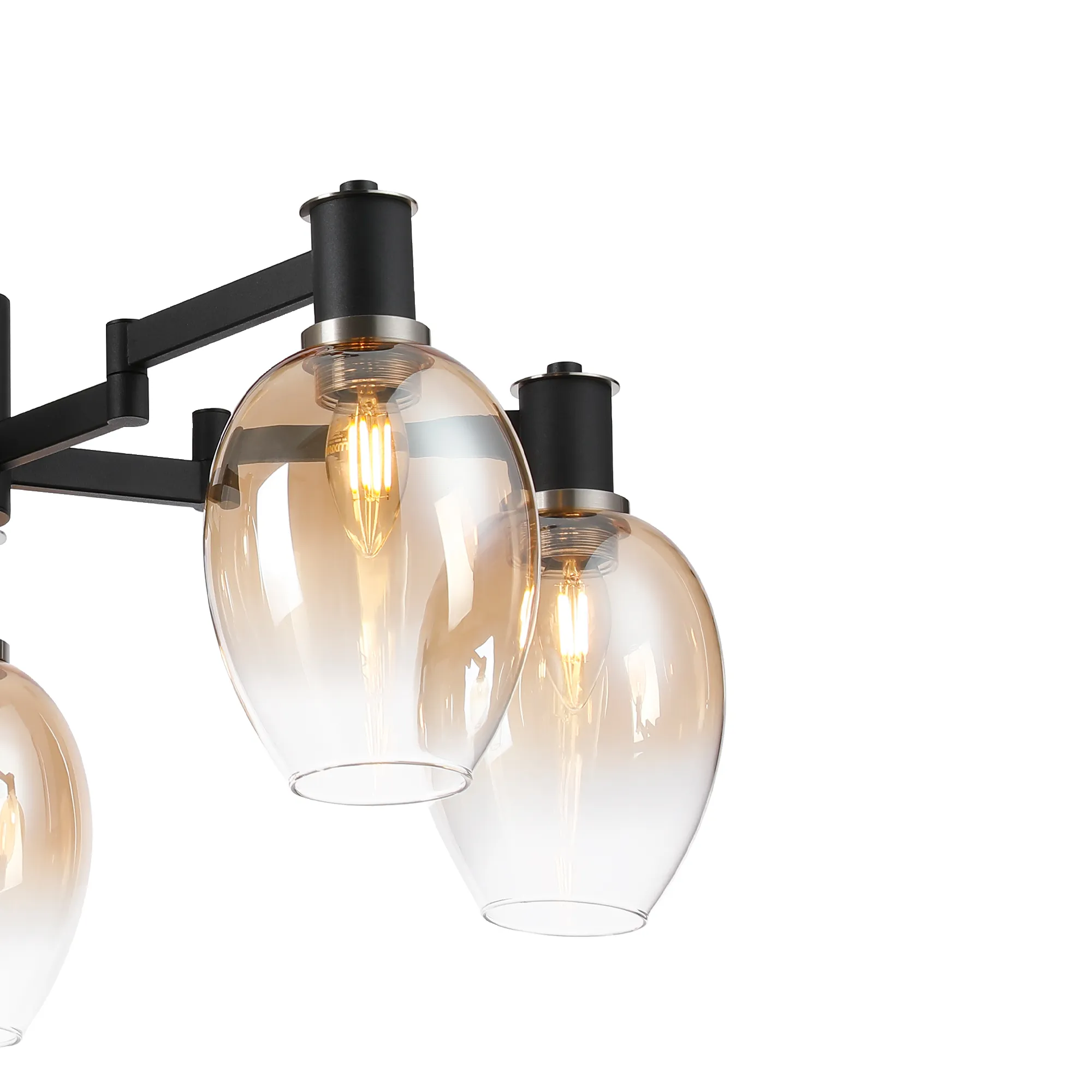 OTHER Alberni Swing Arm Telescopic Pendant 5 x E14 Satin Nickel/Satin Black/Amber Fade Wine Glass Glass