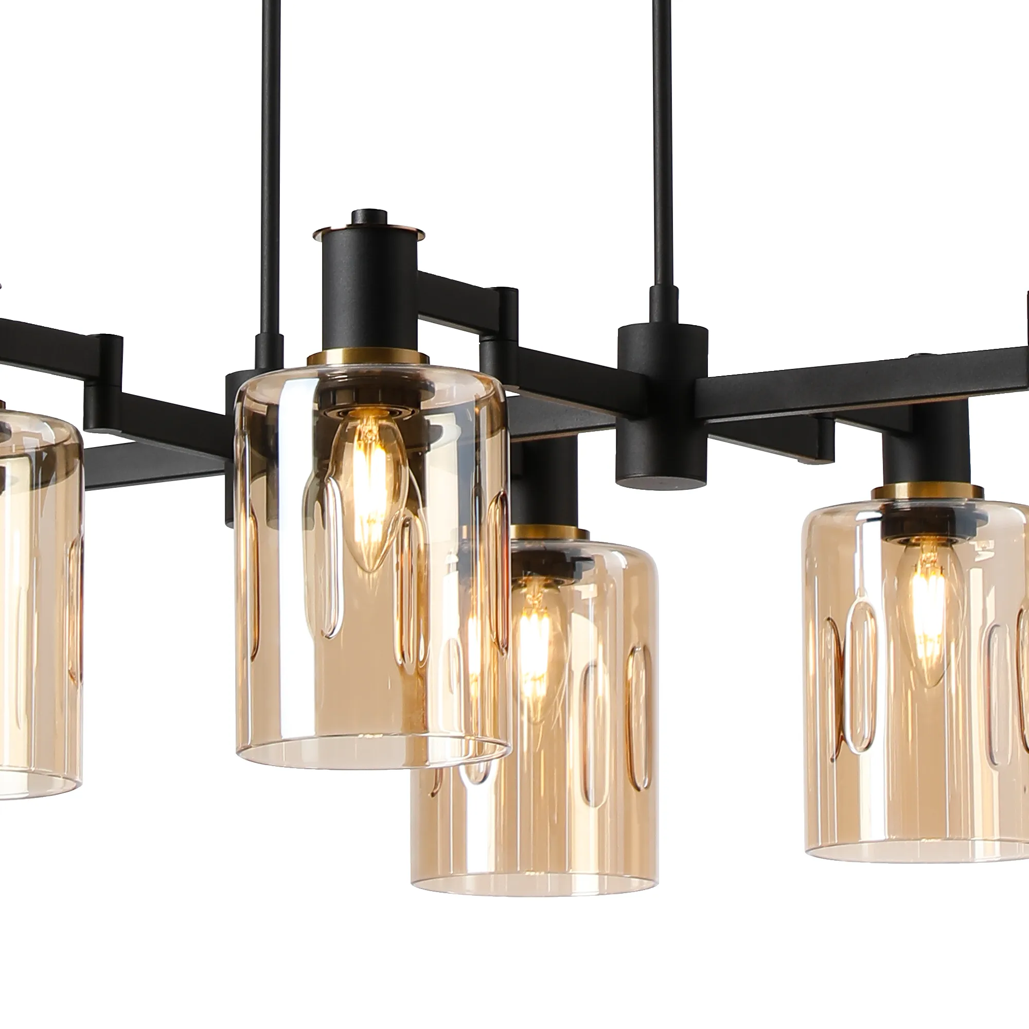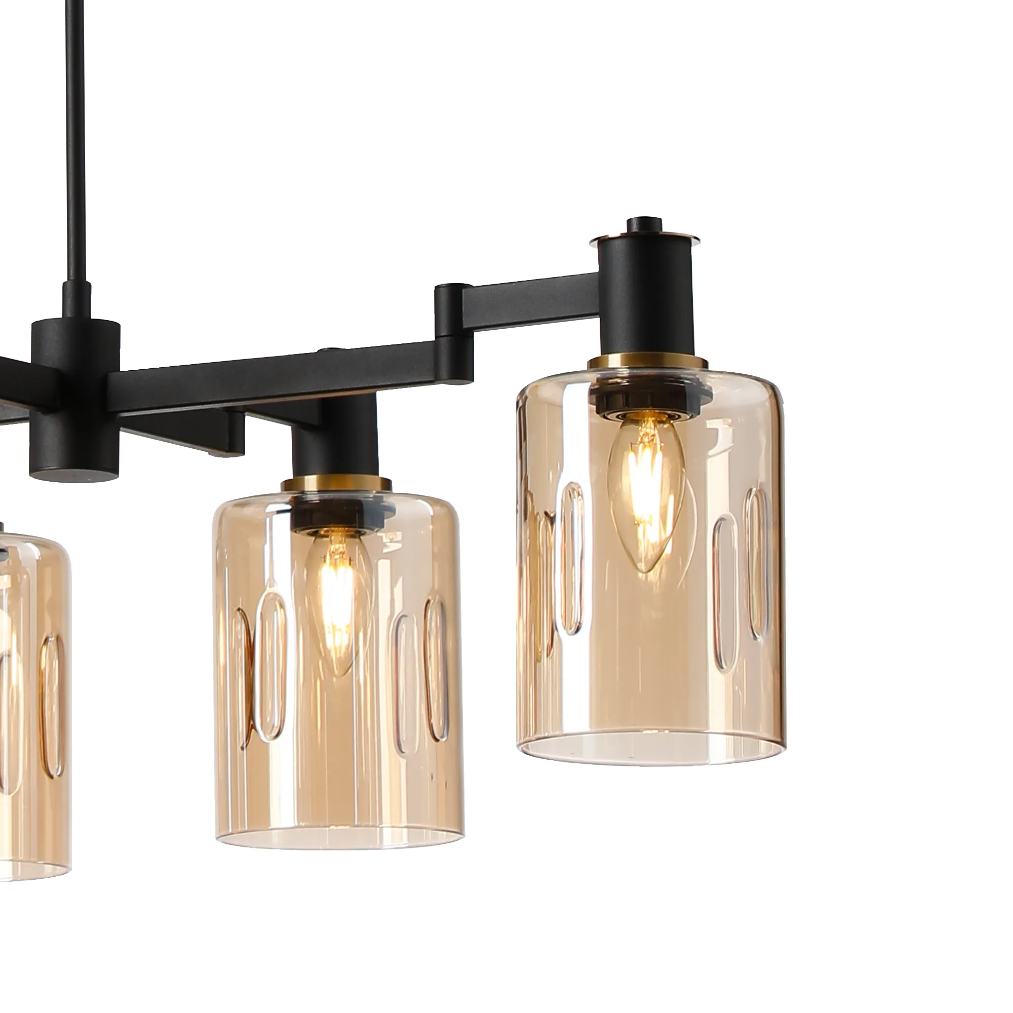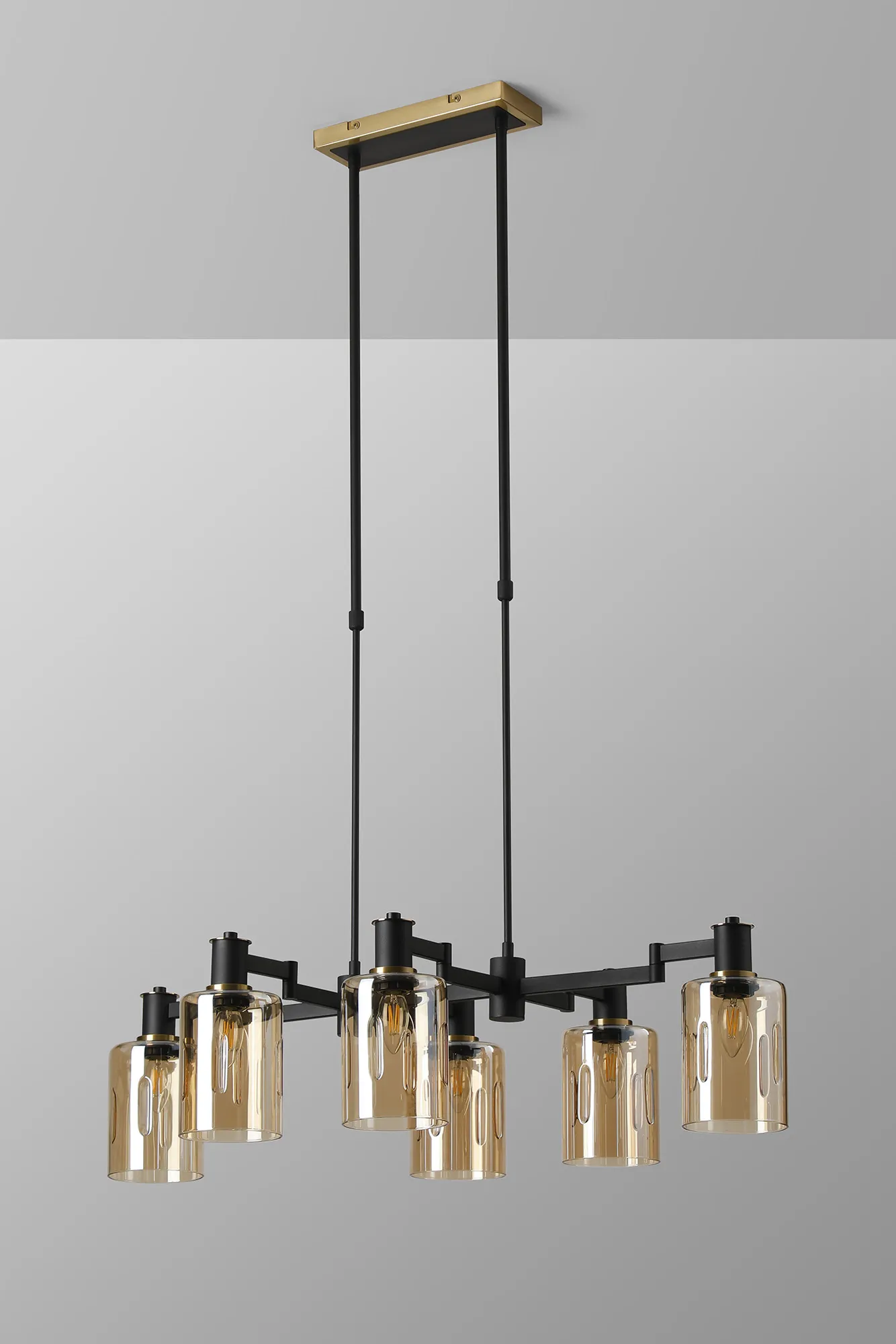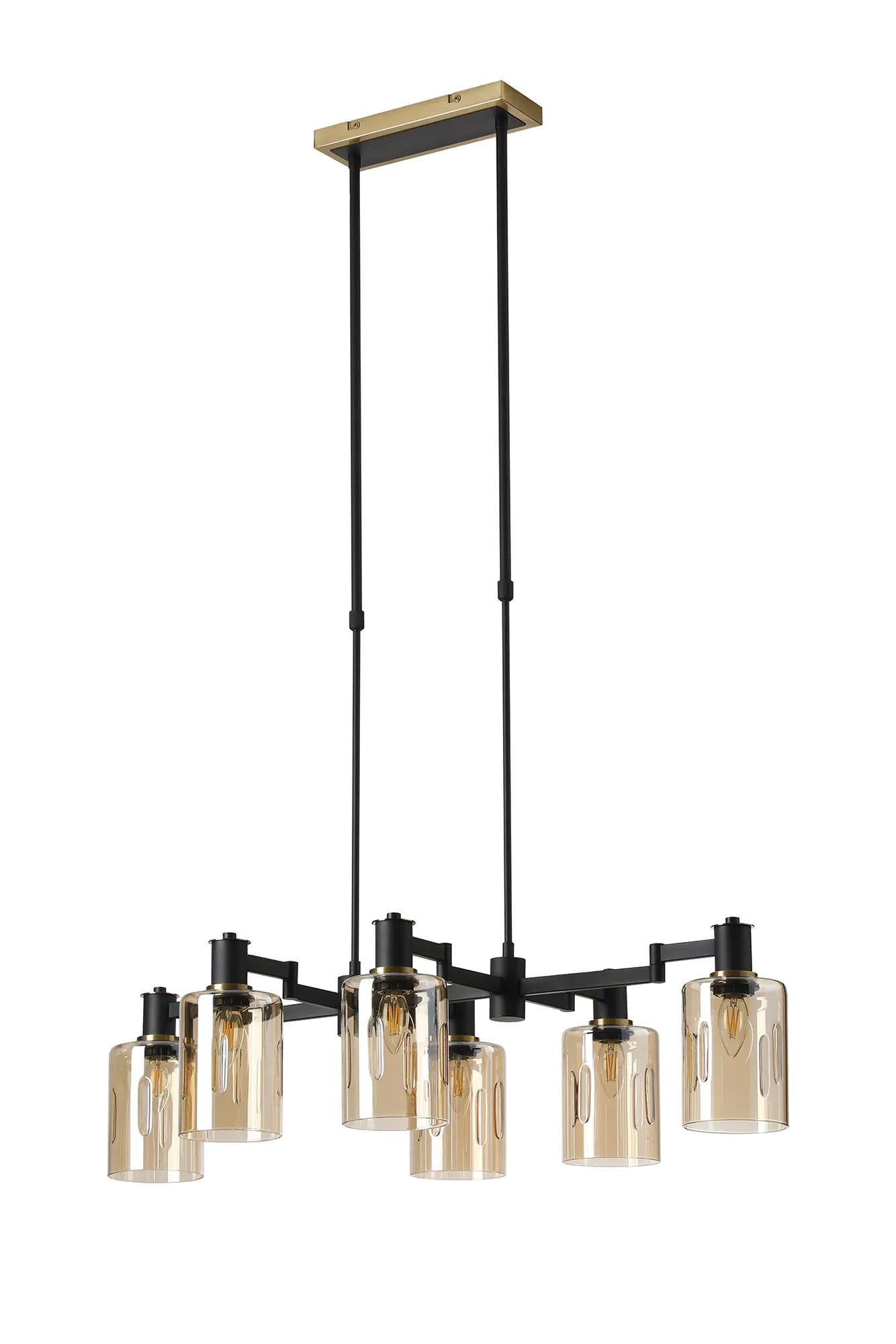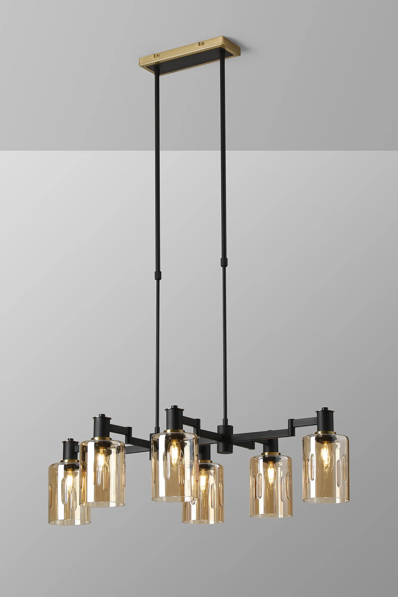 Alberni Swing Arm Telescopic Pendant 4 x E14 Brass/Satin Black/Amber Uniform Dimple Cylinder Glass