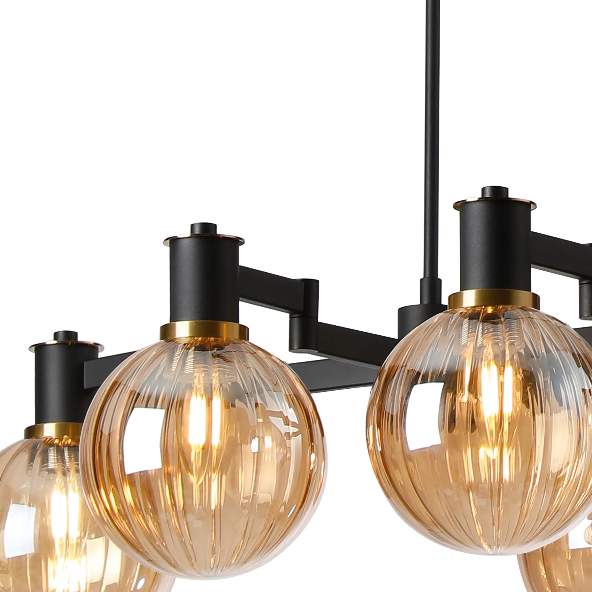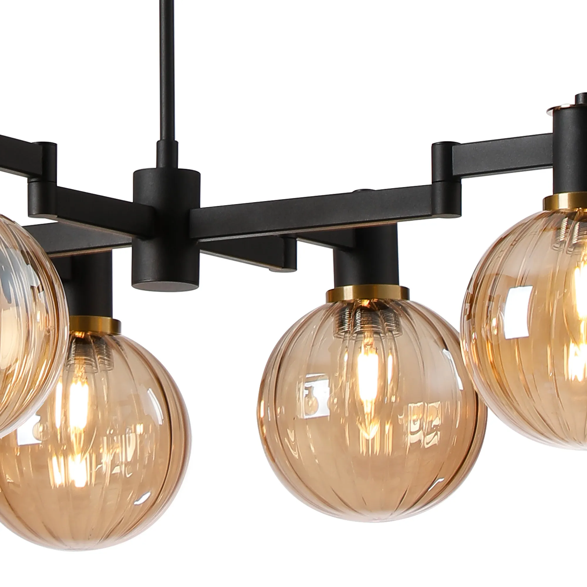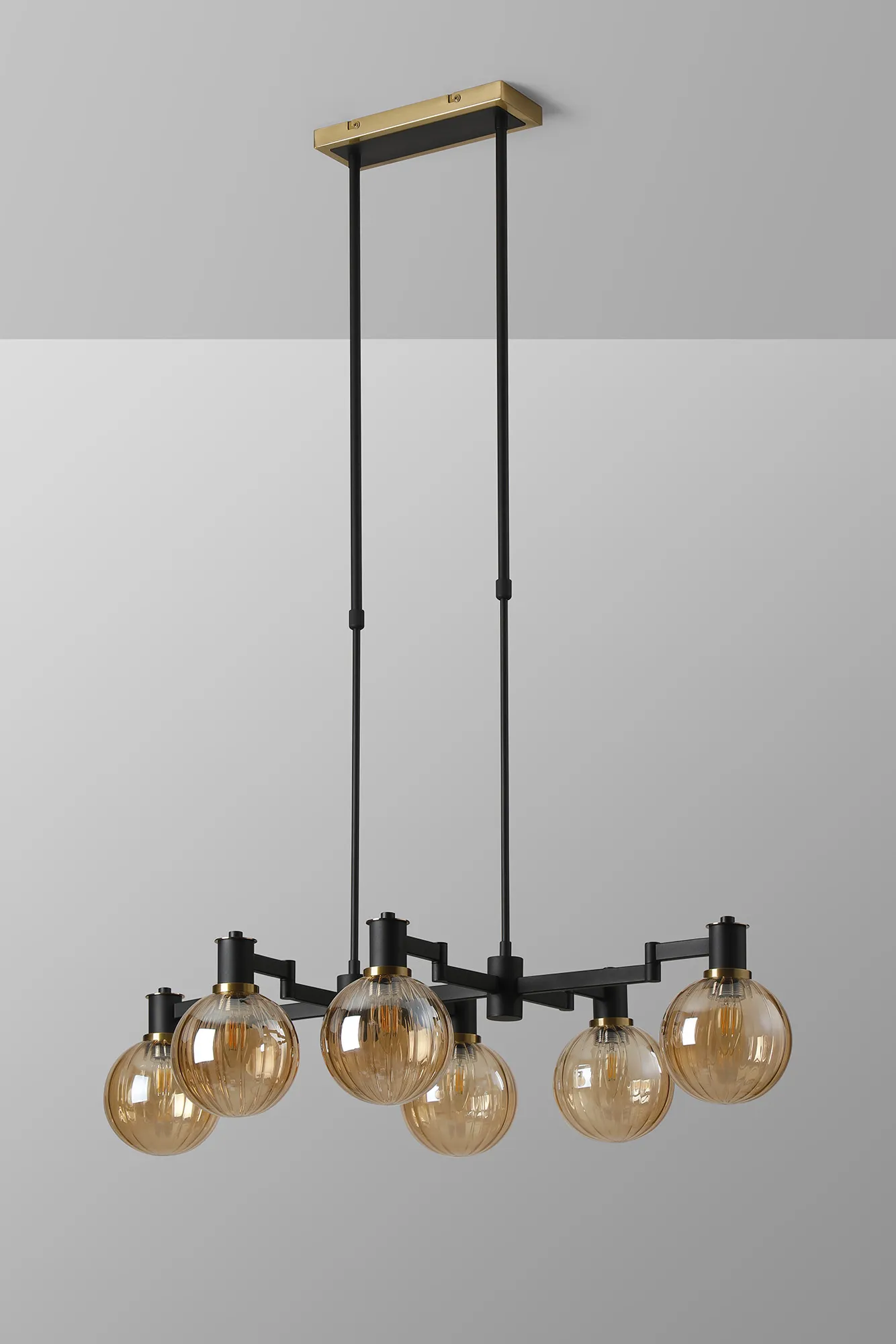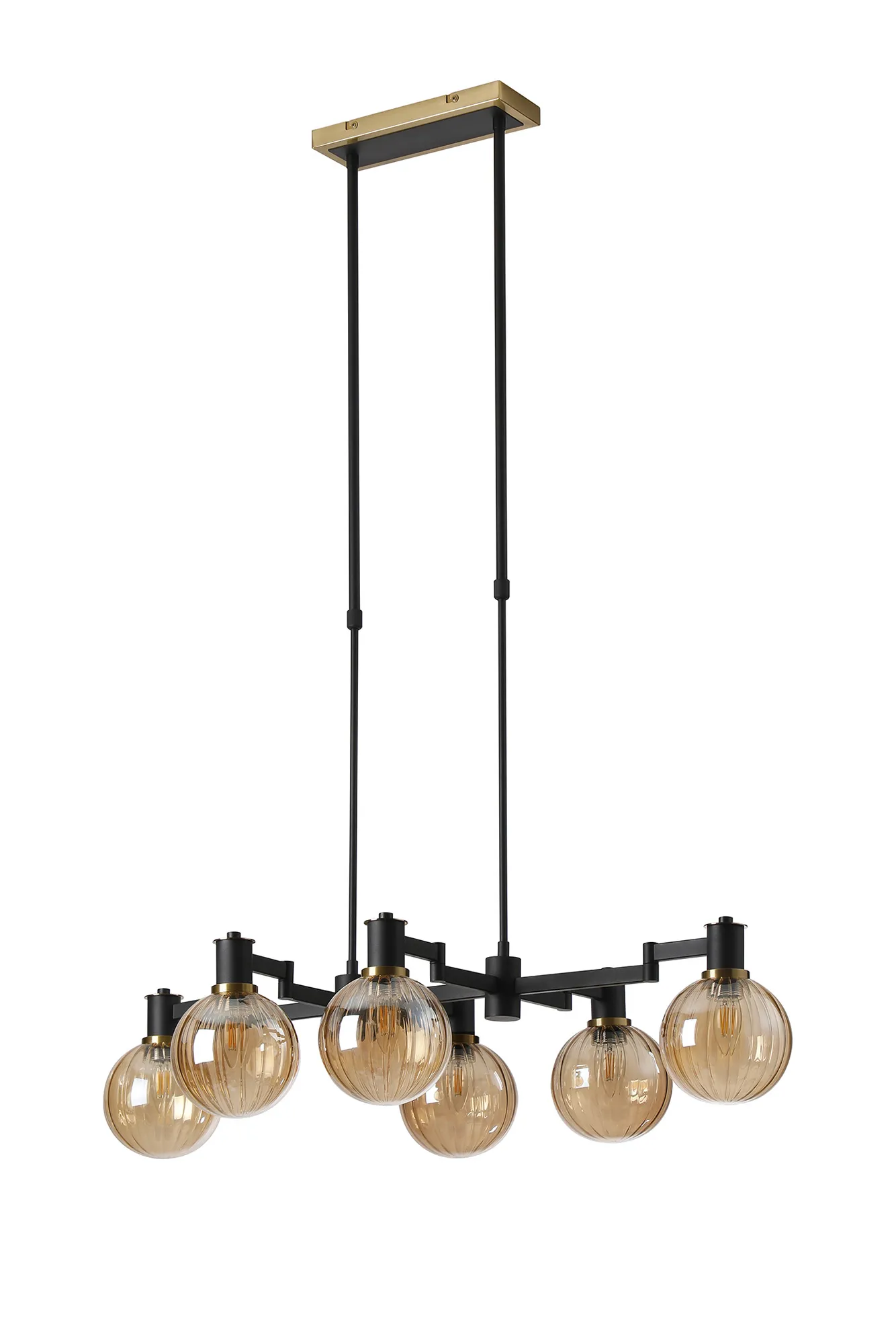 OTHER Alberni Swing Arm Telescopic Linear Pendant 6 x E14 Brass/Satin Black/Amber Plated Round Segment Glass