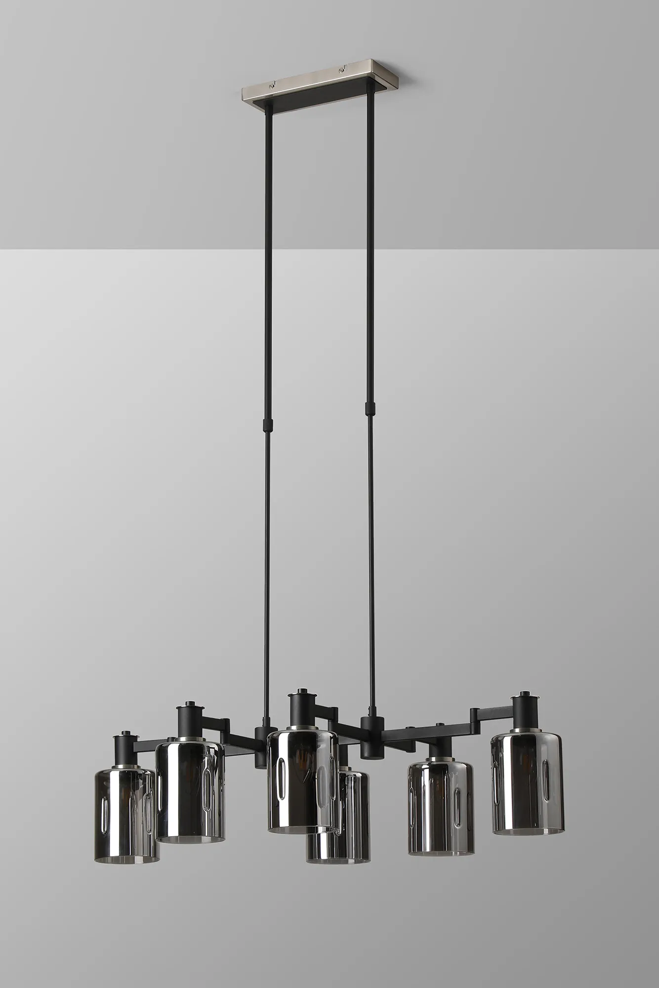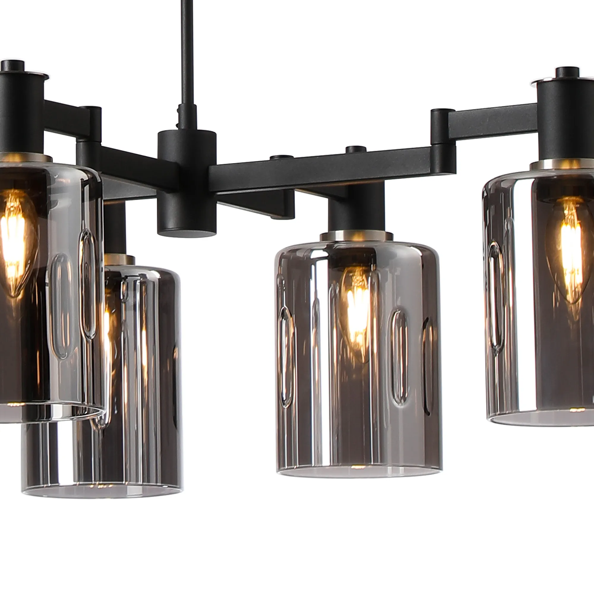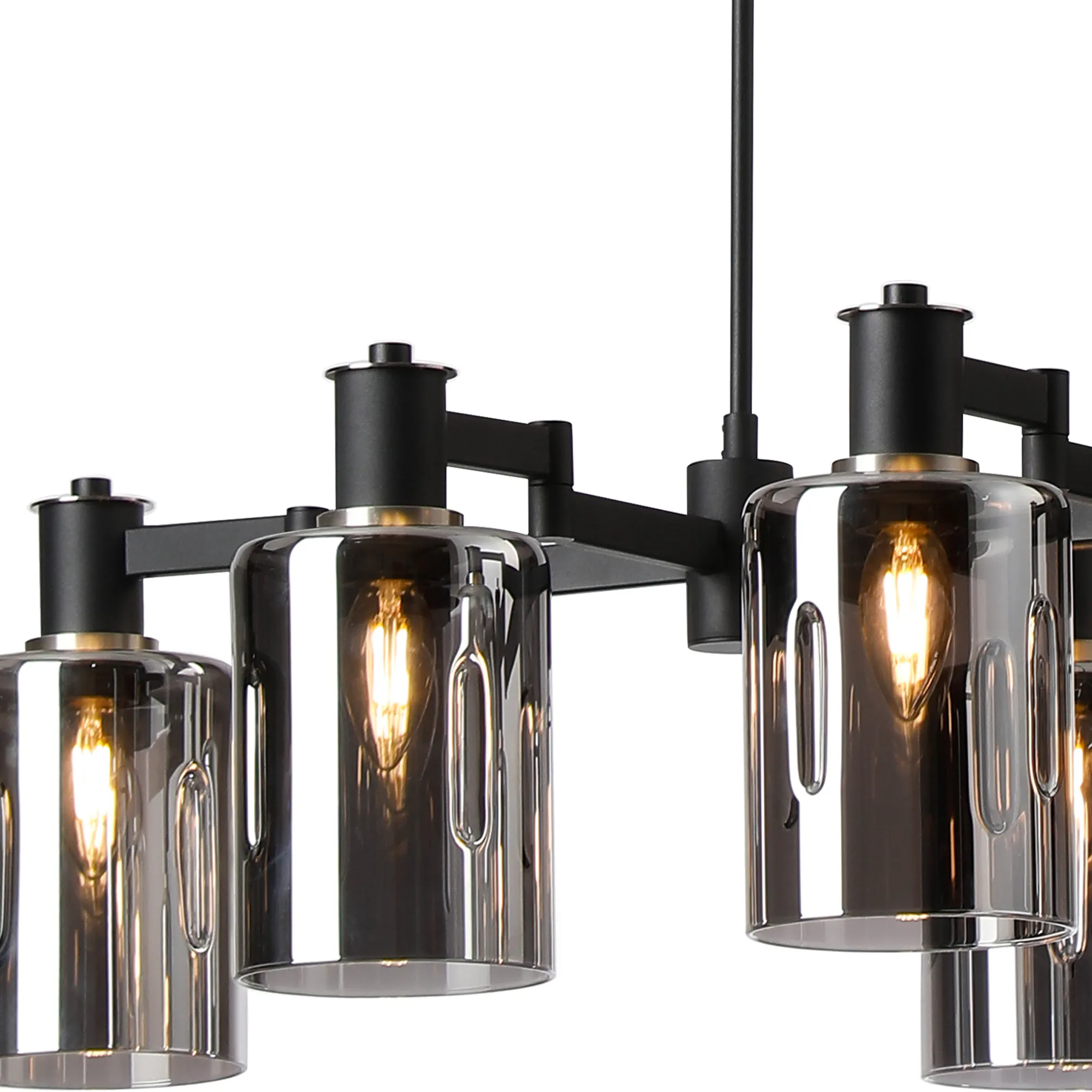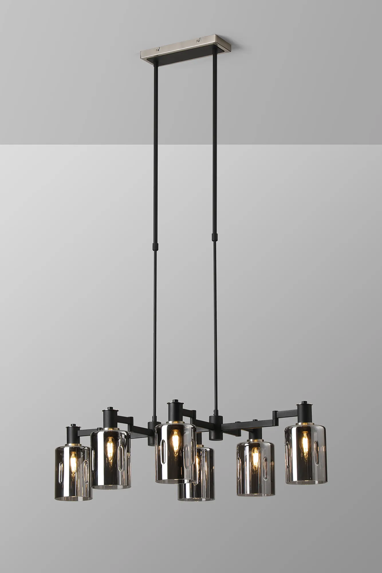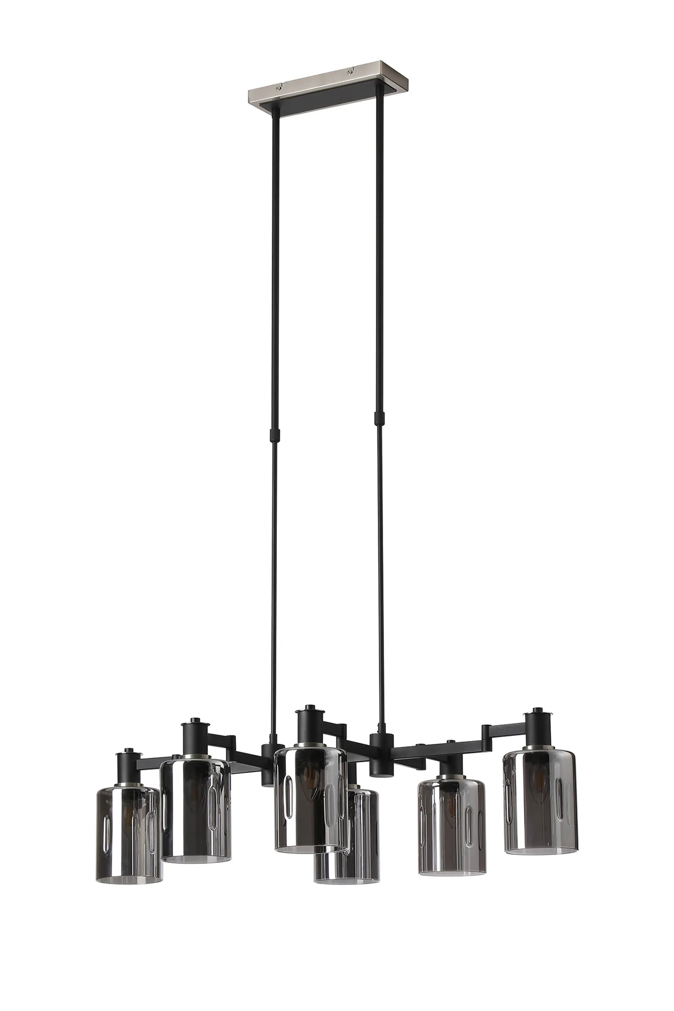 Alberni Swing Arm Telescopic Pendant, 4 Light E14, Satin Nickel/Satin Black/Smoke Uniform Dimple Cylinder Glass