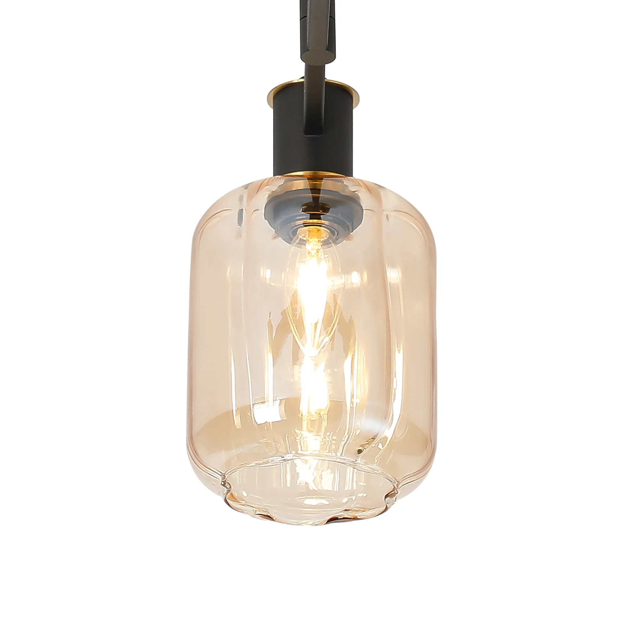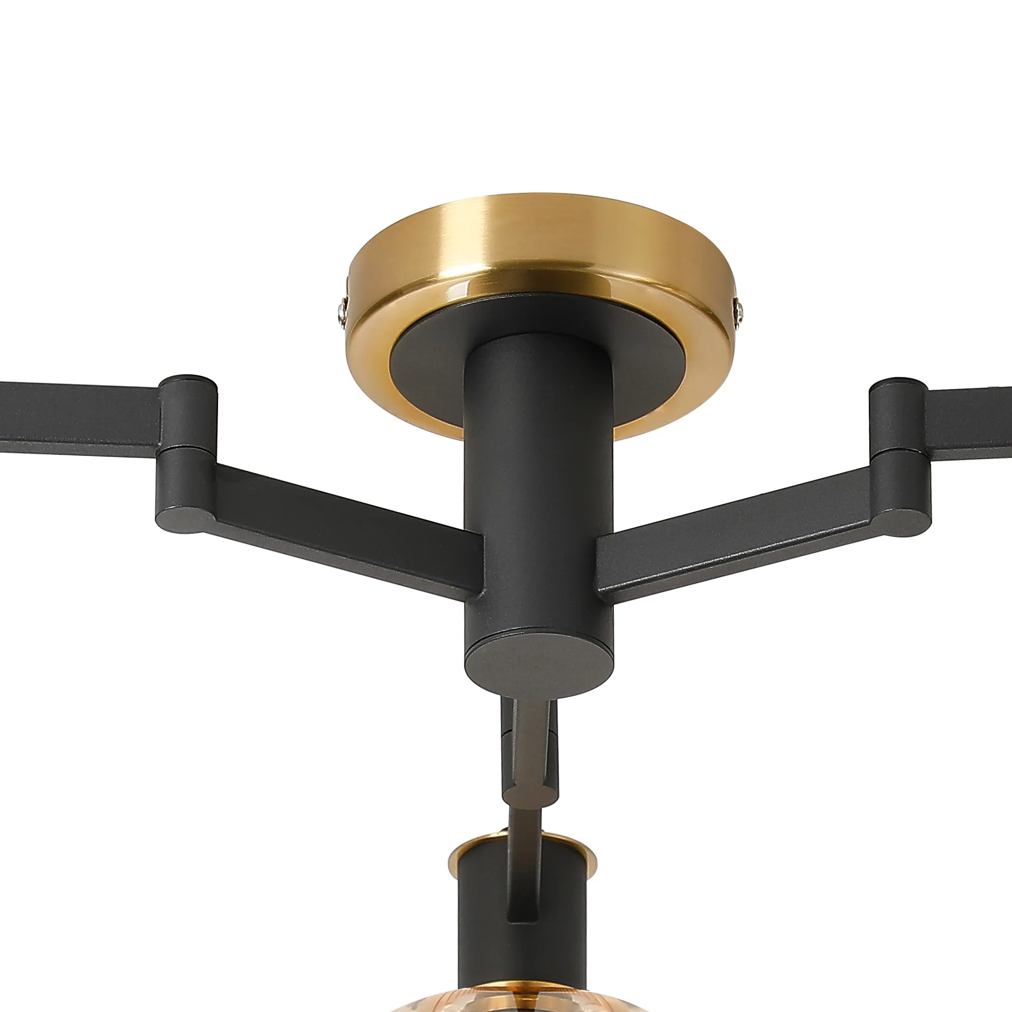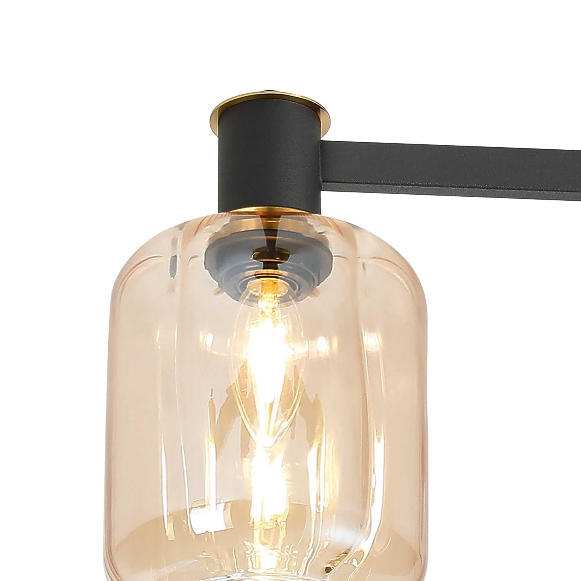 OTHER Alberni Swing Arm Flush Ceiling 3 x E14 Brass/Satin Black/Amber Striped Cylinder Glass