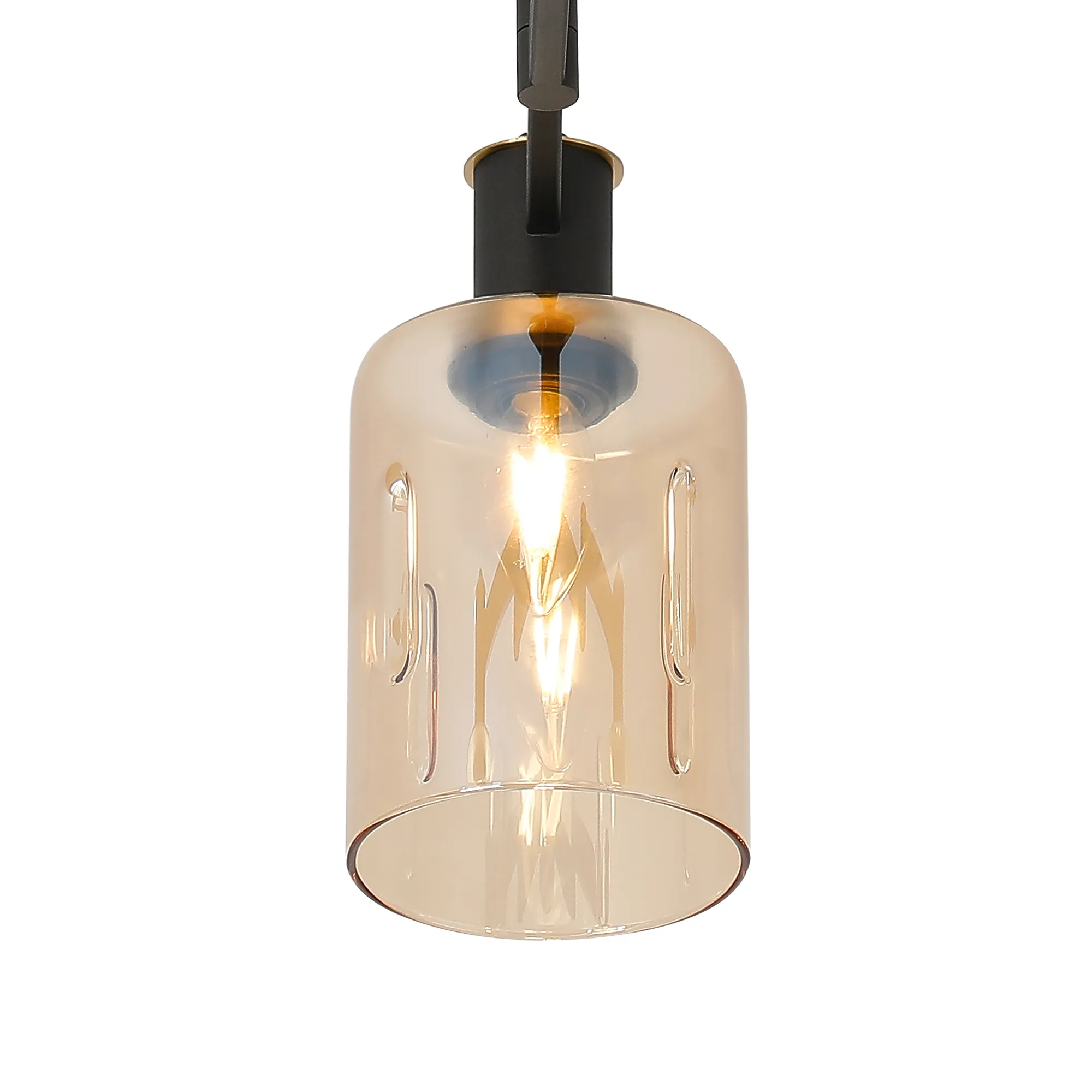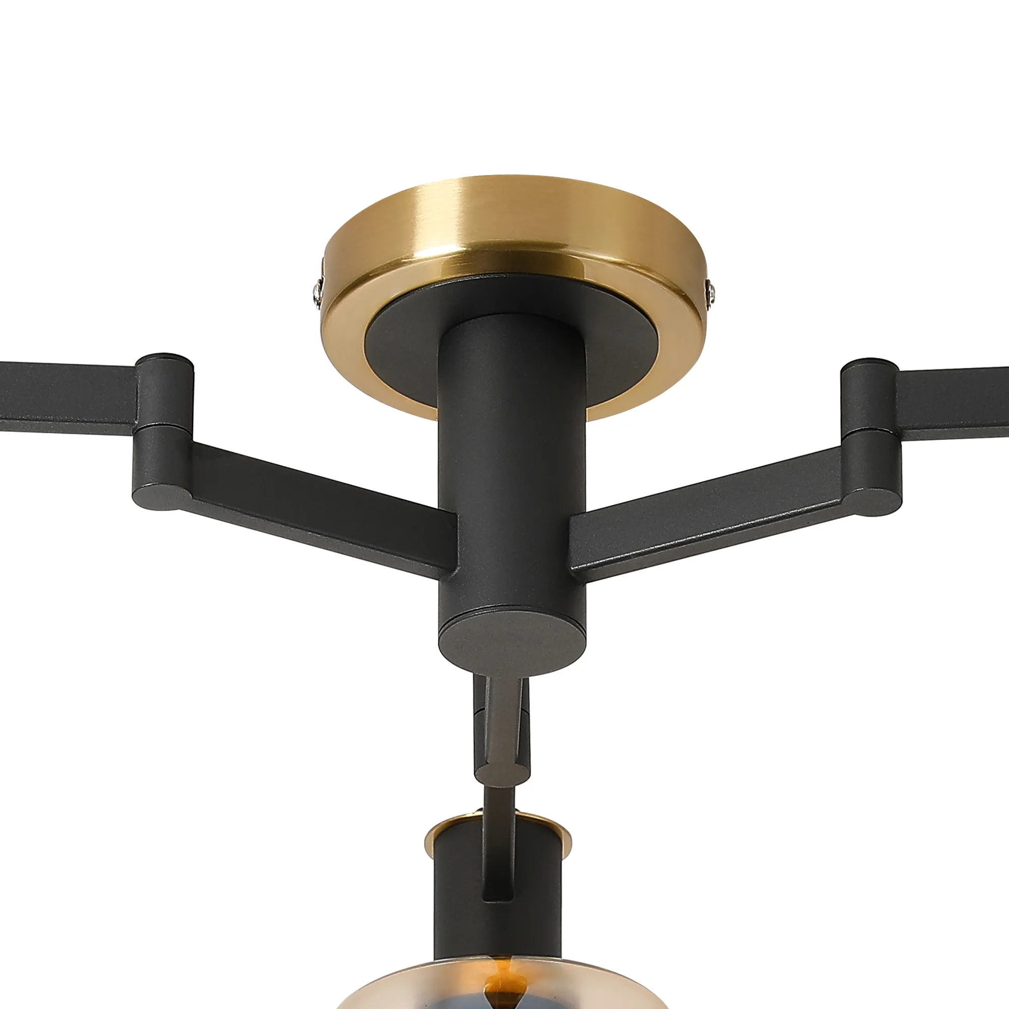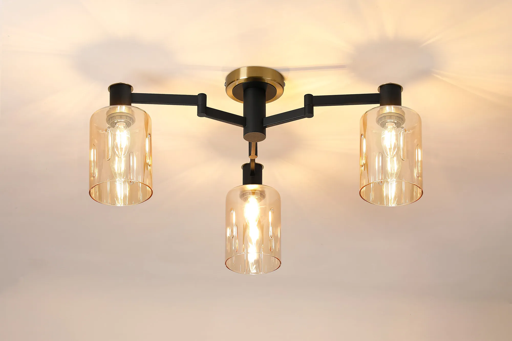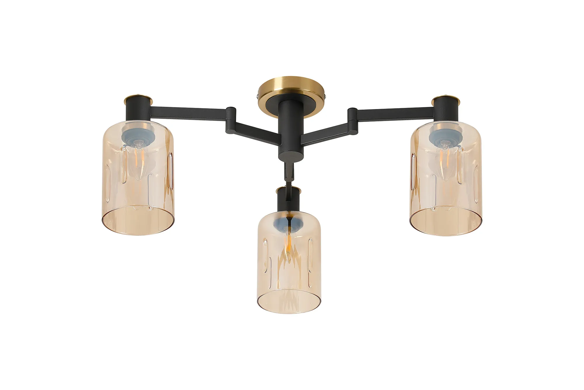 OTHER Alberni Swing Arm Flush Ceiling 3 x E14 Brass/Satin Black/Amber Uniform Dimple Cylinder Glass