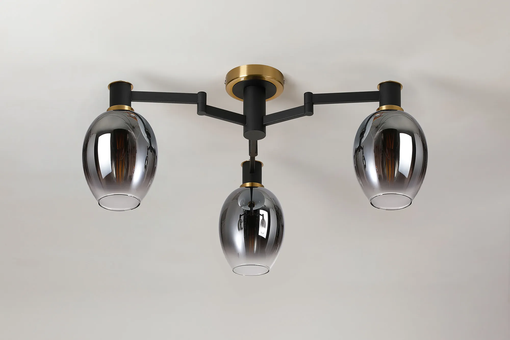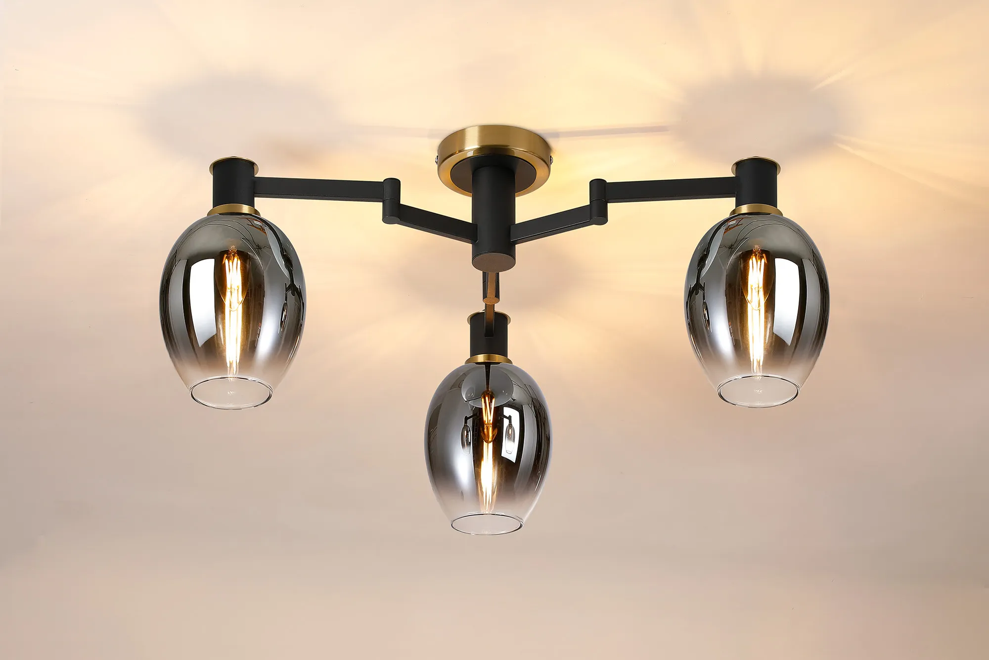 Alberni presents a fully comprehensive collection of lighting solutions from telescopic pendants and flush fitting to complementing wall, table and floor lamps. The neutral sand black colour finish is accentuated by either brass or satin nickel components adding a touch of opulence. A key feature throughout this range are the adjustable arms hosting each E14 lamp holder. This function allows modern adaptability of a traditional structural design. Also included, to further enhance your chosen lighting, is a beautiful selection of clear, amber or smoke artisanal glass.