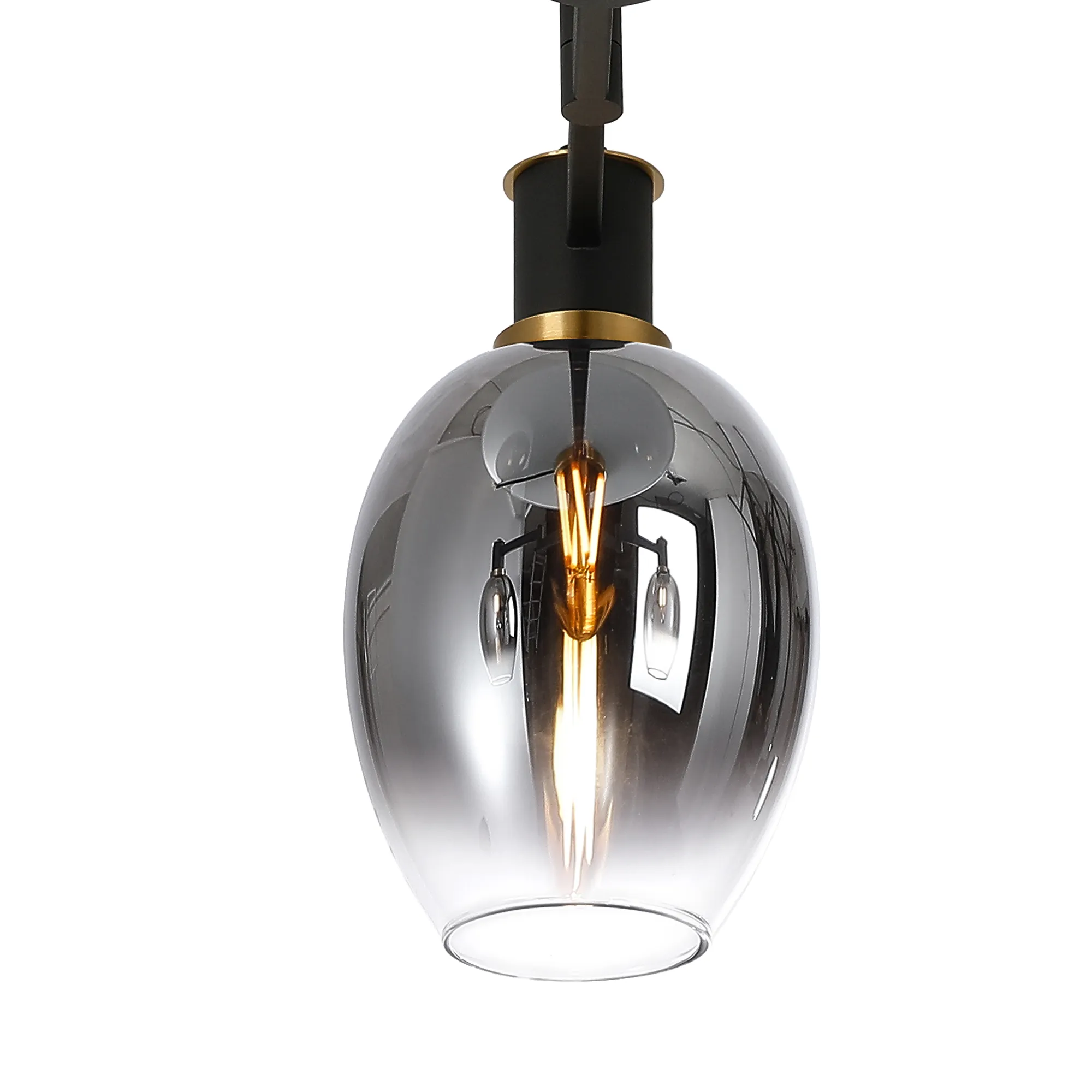 Alberni Swing Arm Telescopic Linear Pendant 6 x E14 Brass/Satin Black/Smoke Fade Wine Glass Glass