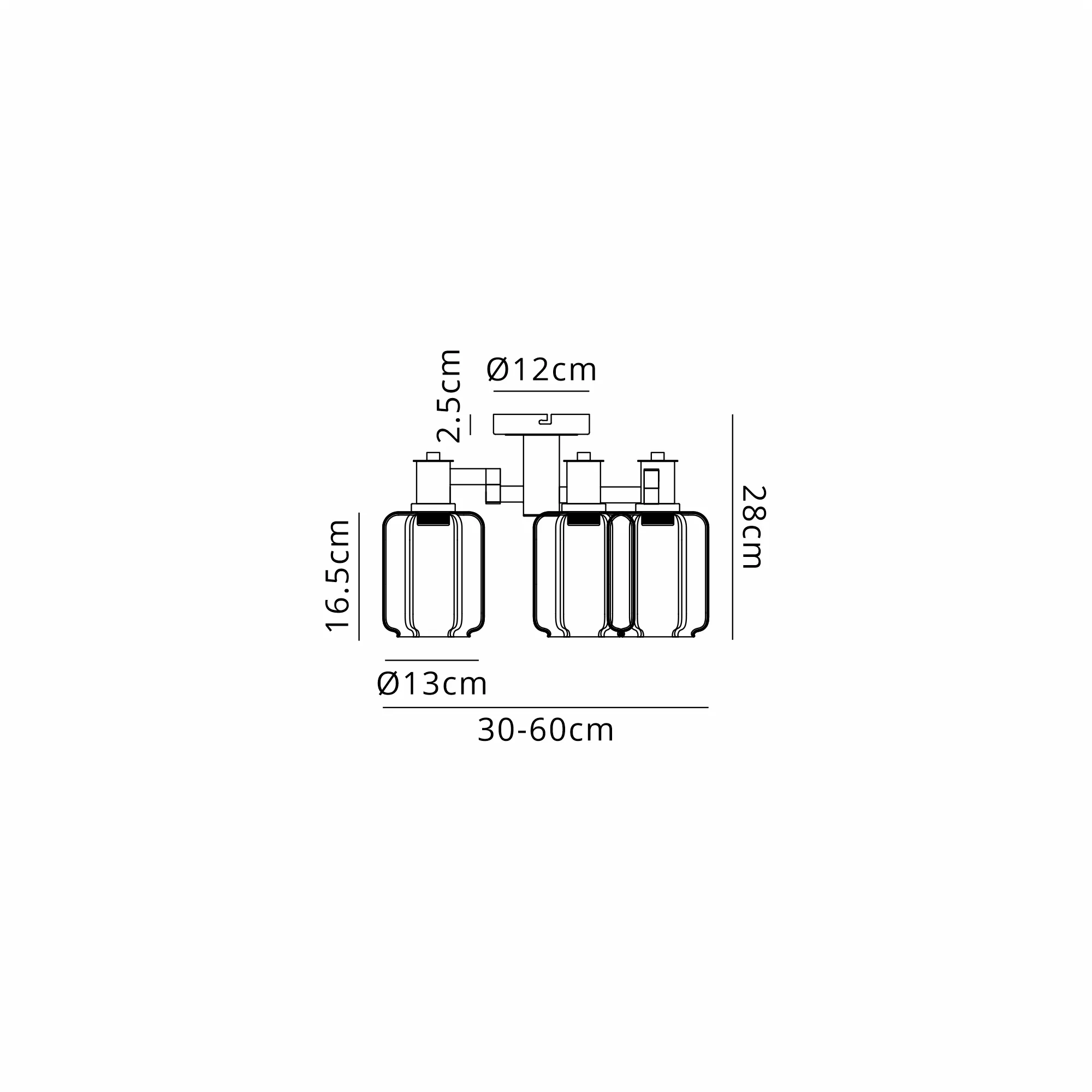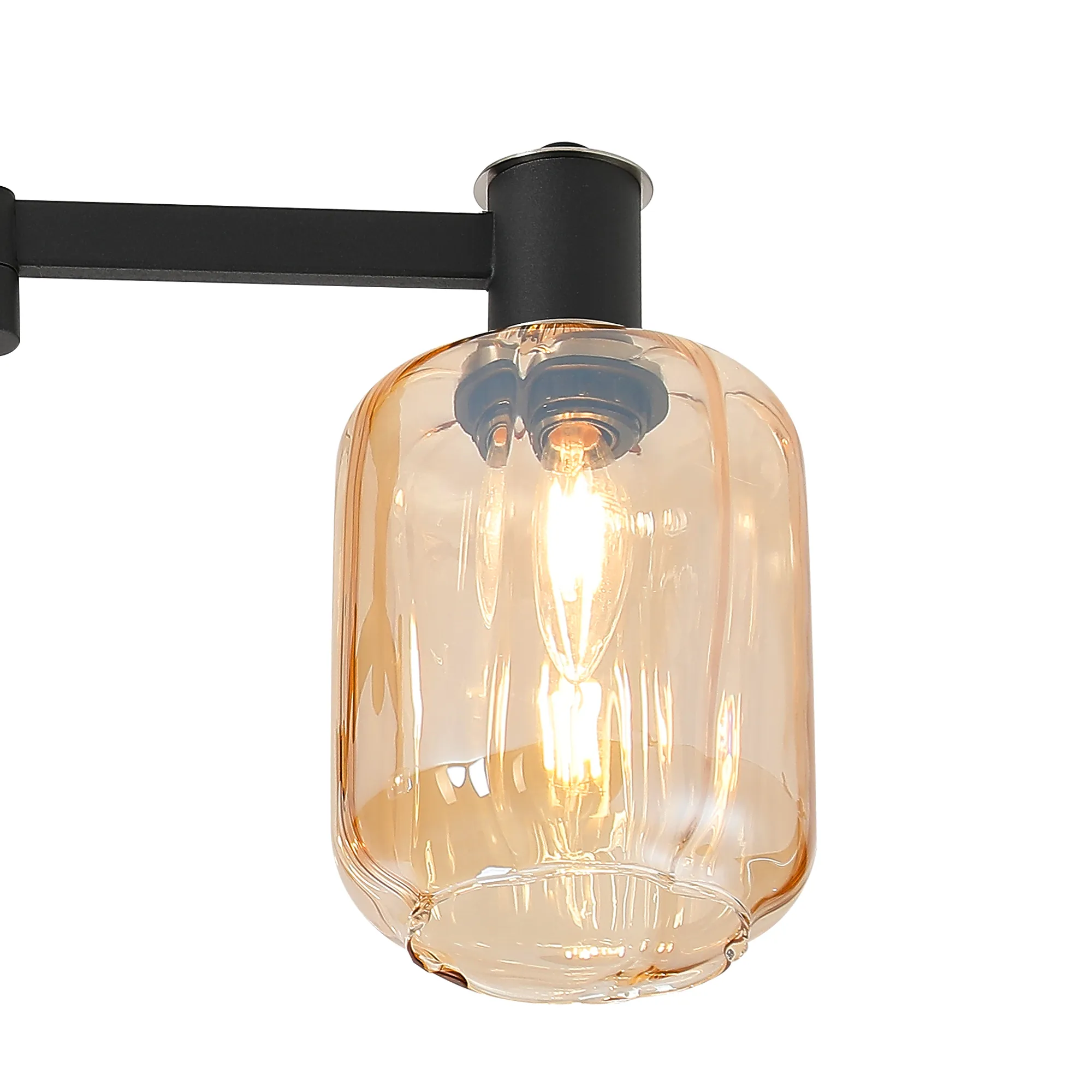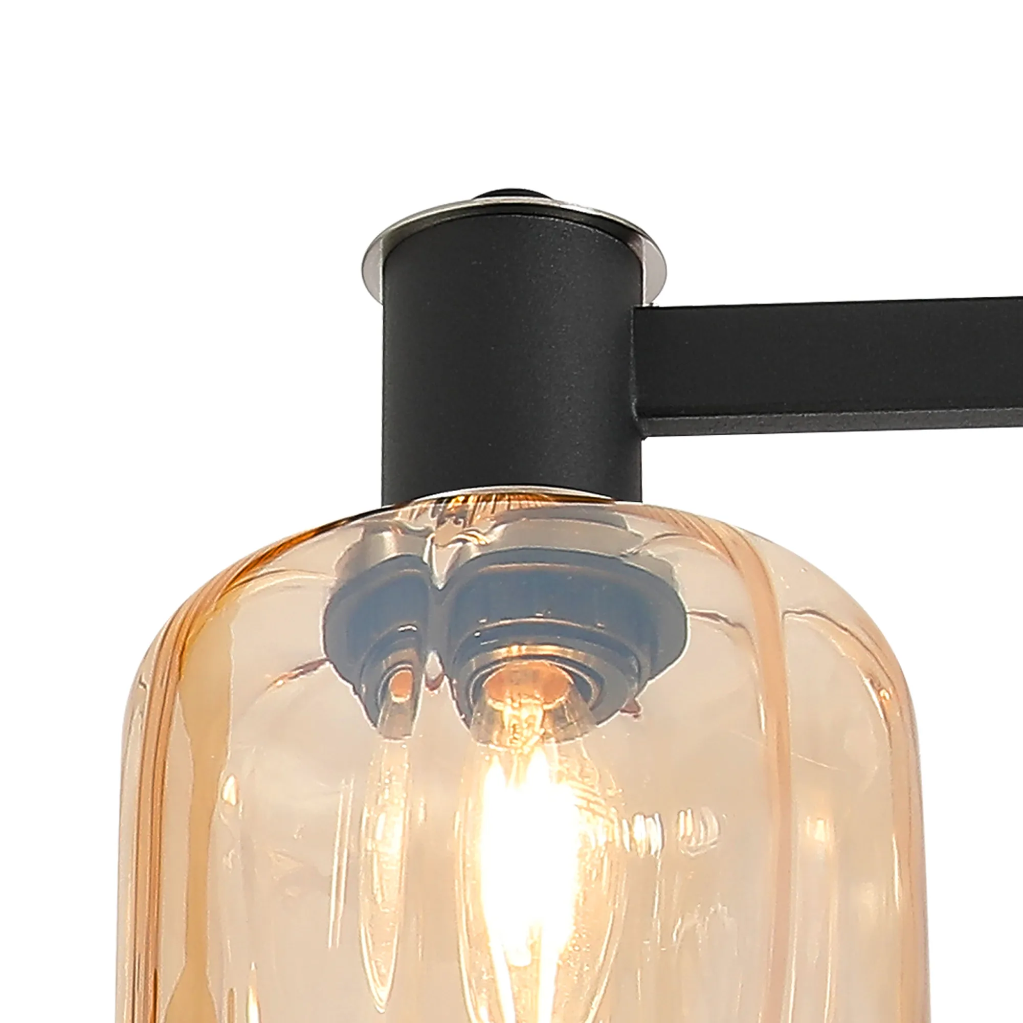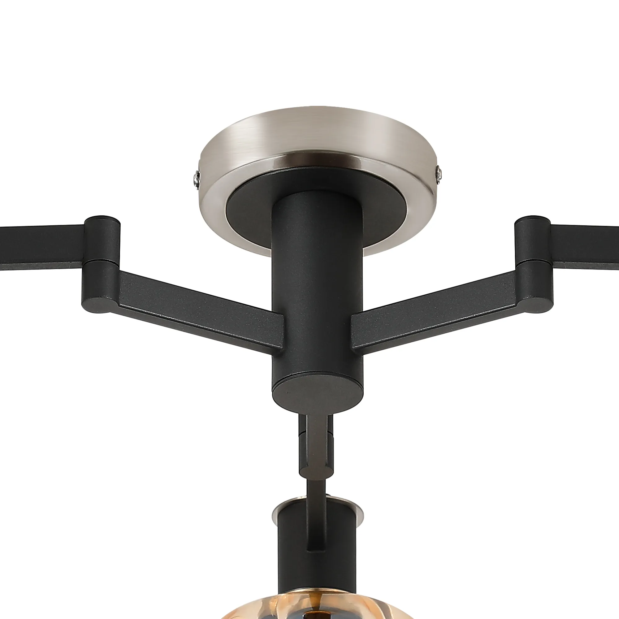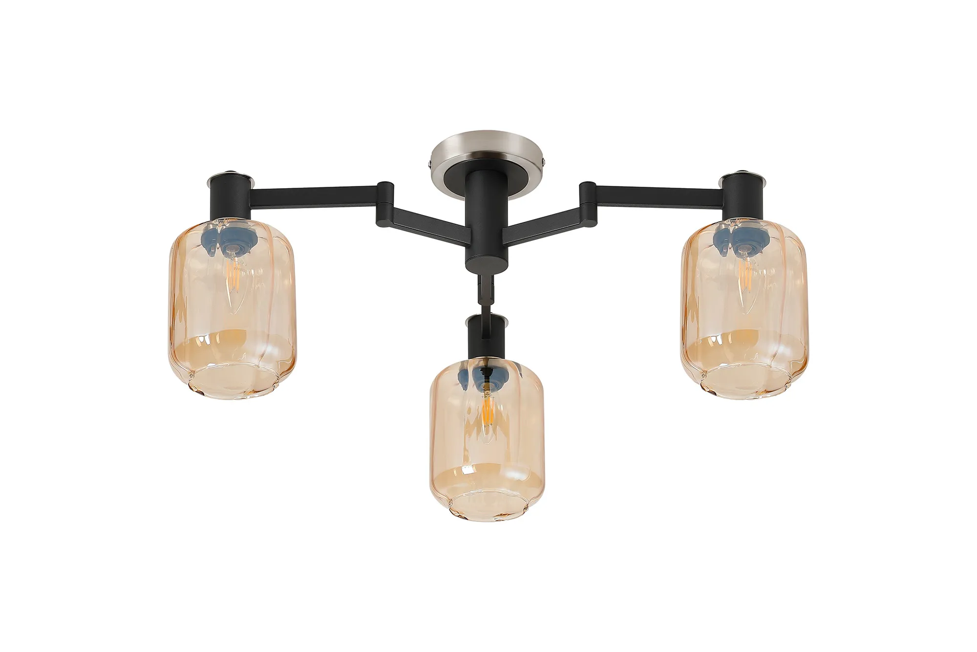 OTHER Alberni Swing Arm Flush Ceiling 3 x E14 Satin Nickel/Satin Black/Amber Striped Cylinder Glass