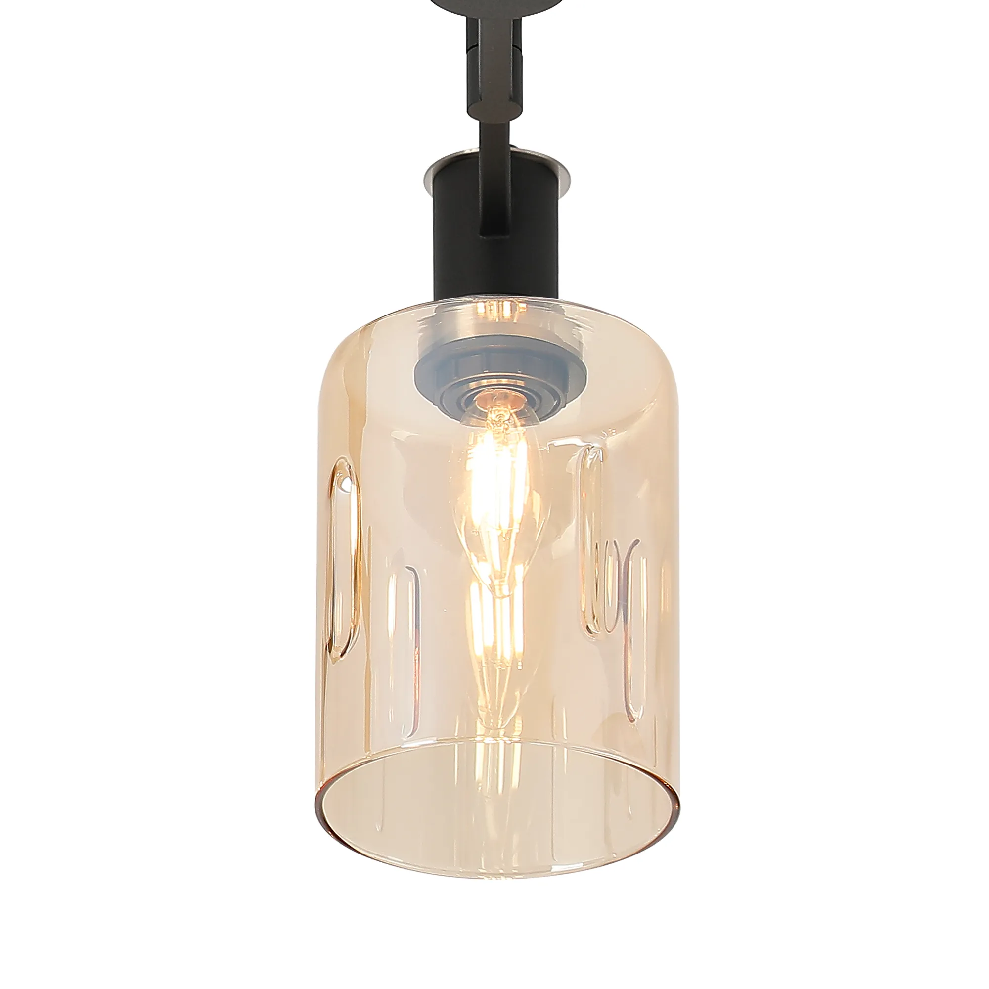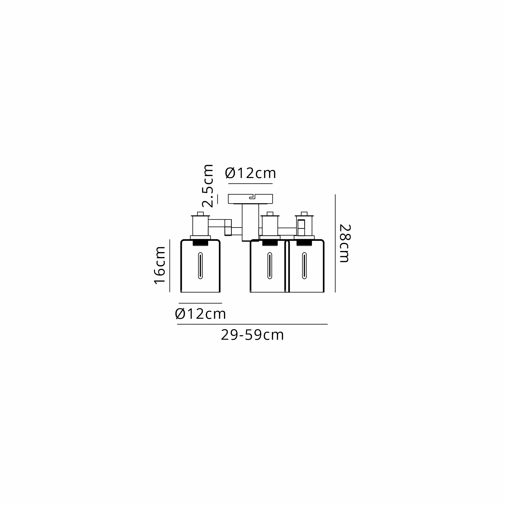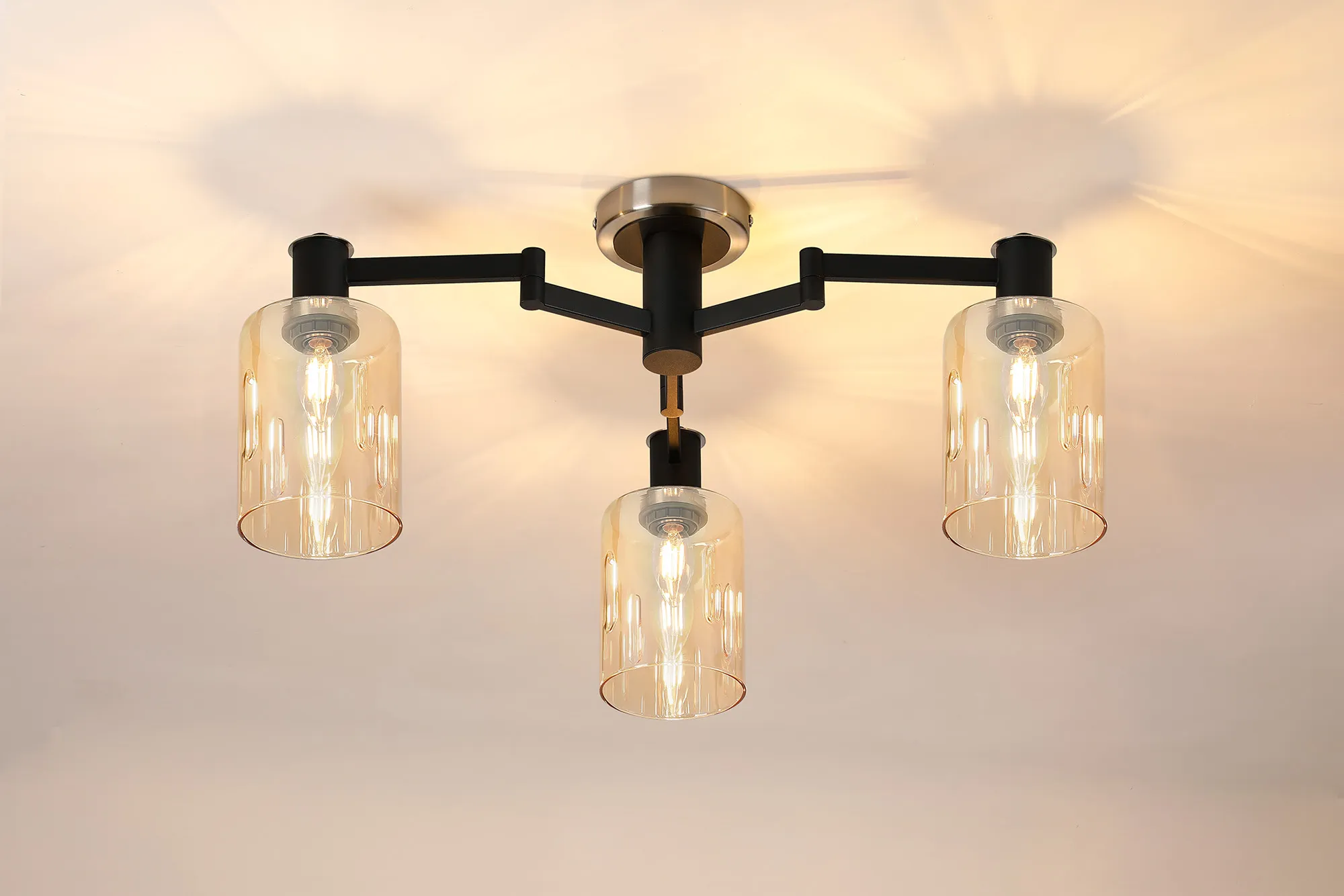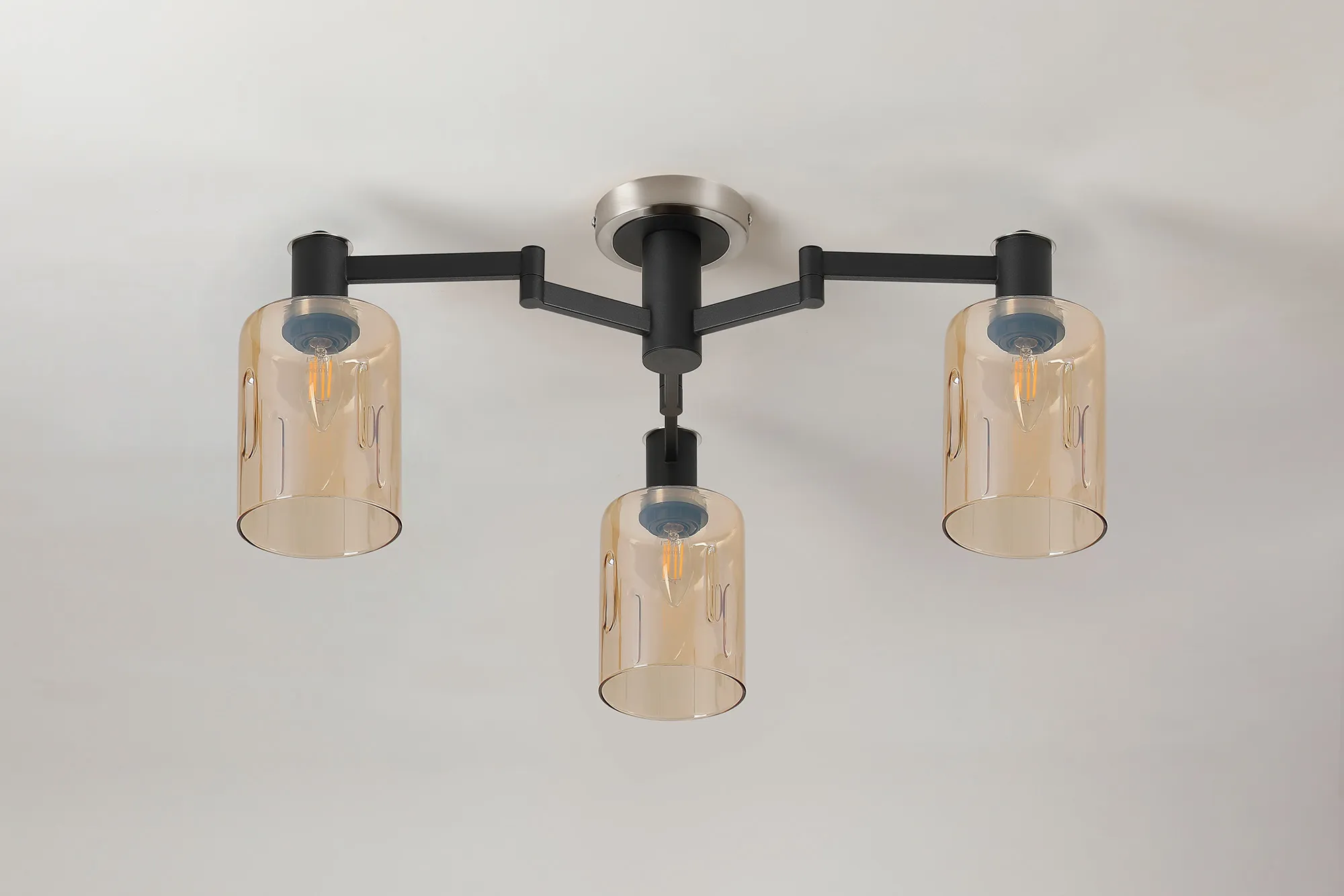 OTHER Alberni Swing Arm Flush Ceiling 3 x E14 Satin Nickel/Satin Black/Amber Uniform Dimple Cylinder Glass