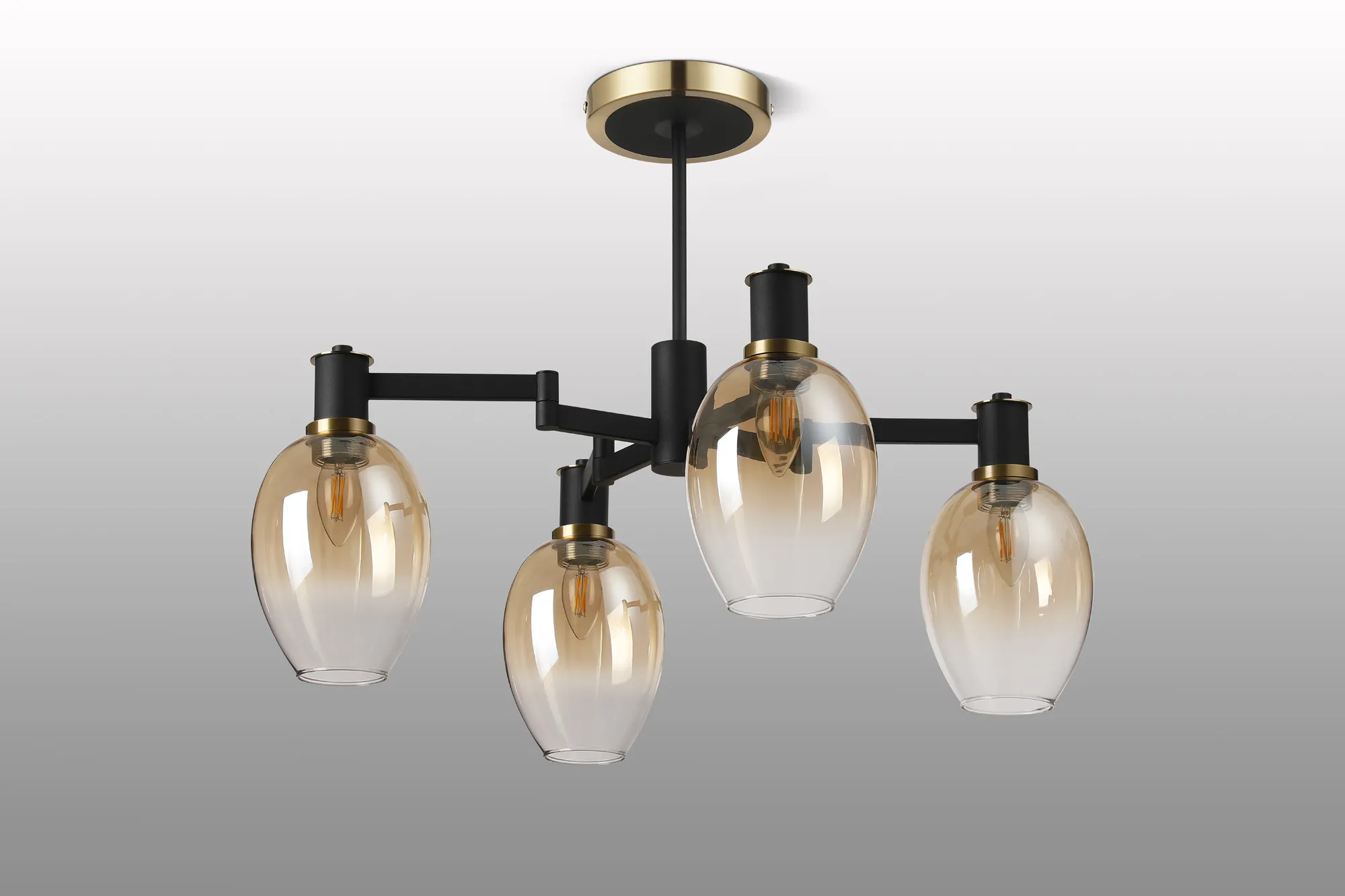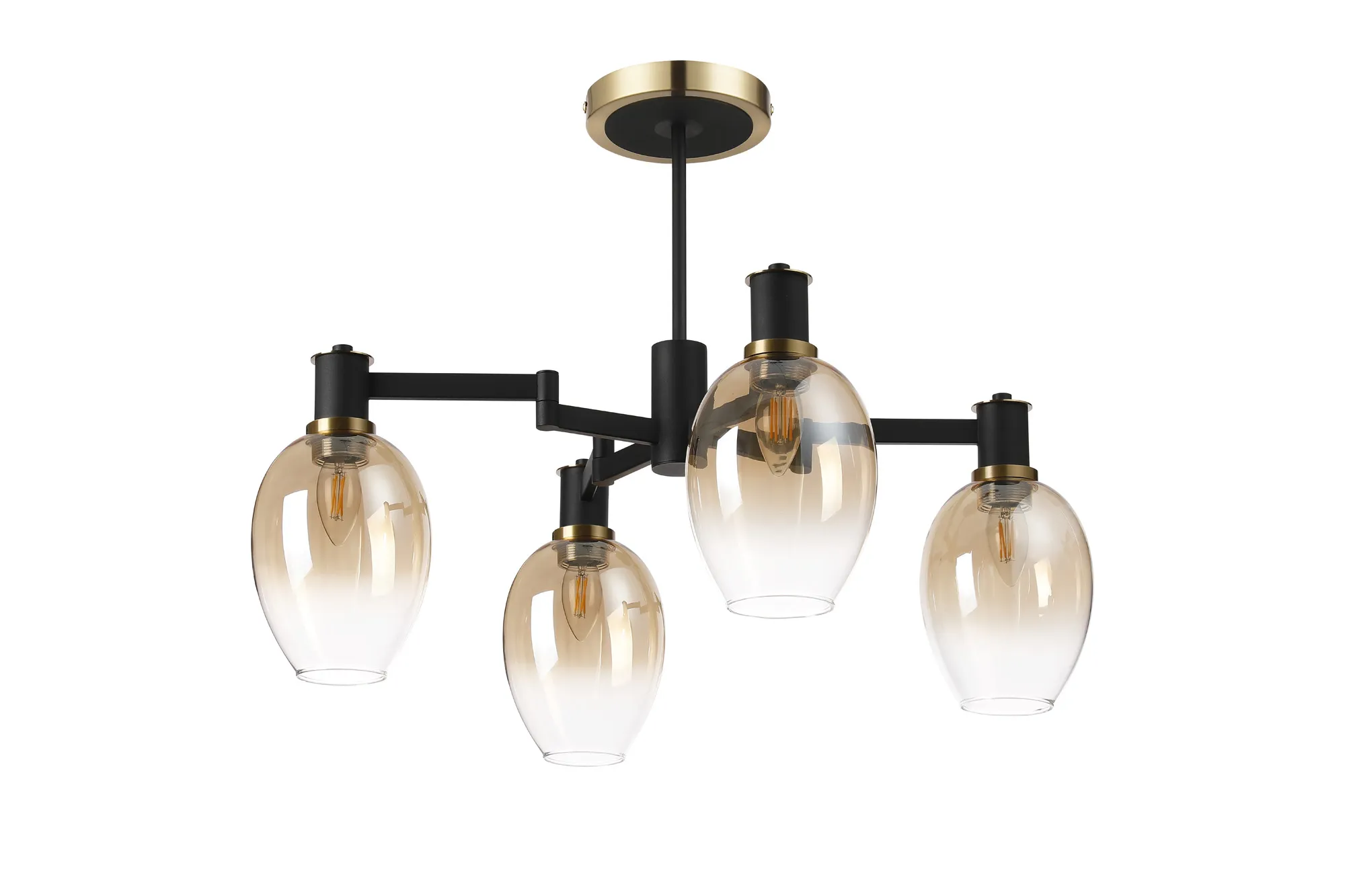 OTHER Alberni Swing Arm Semi Ceiling 4 x E14 Brass/Satin Black/Amber Fade Wine Glass Glass