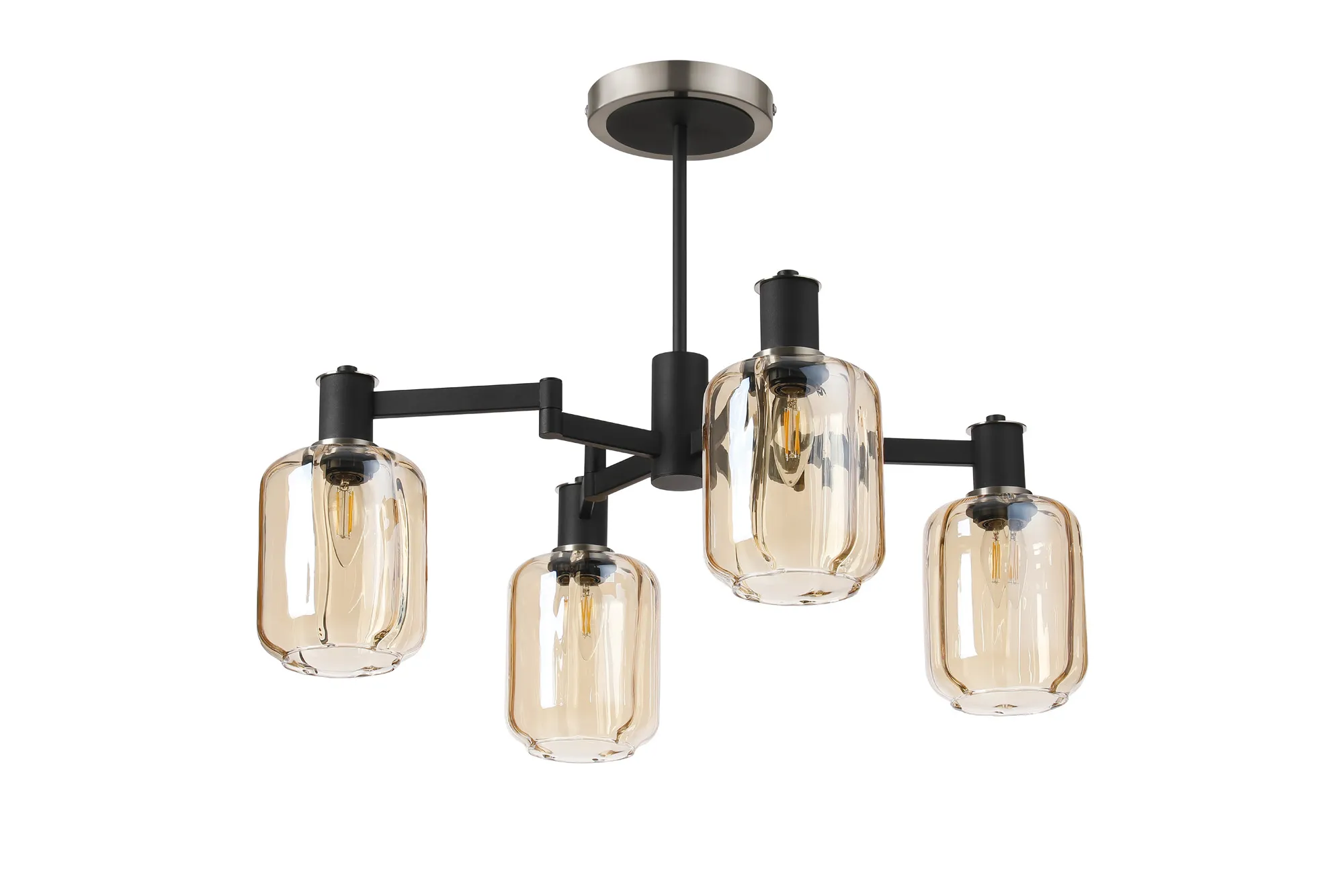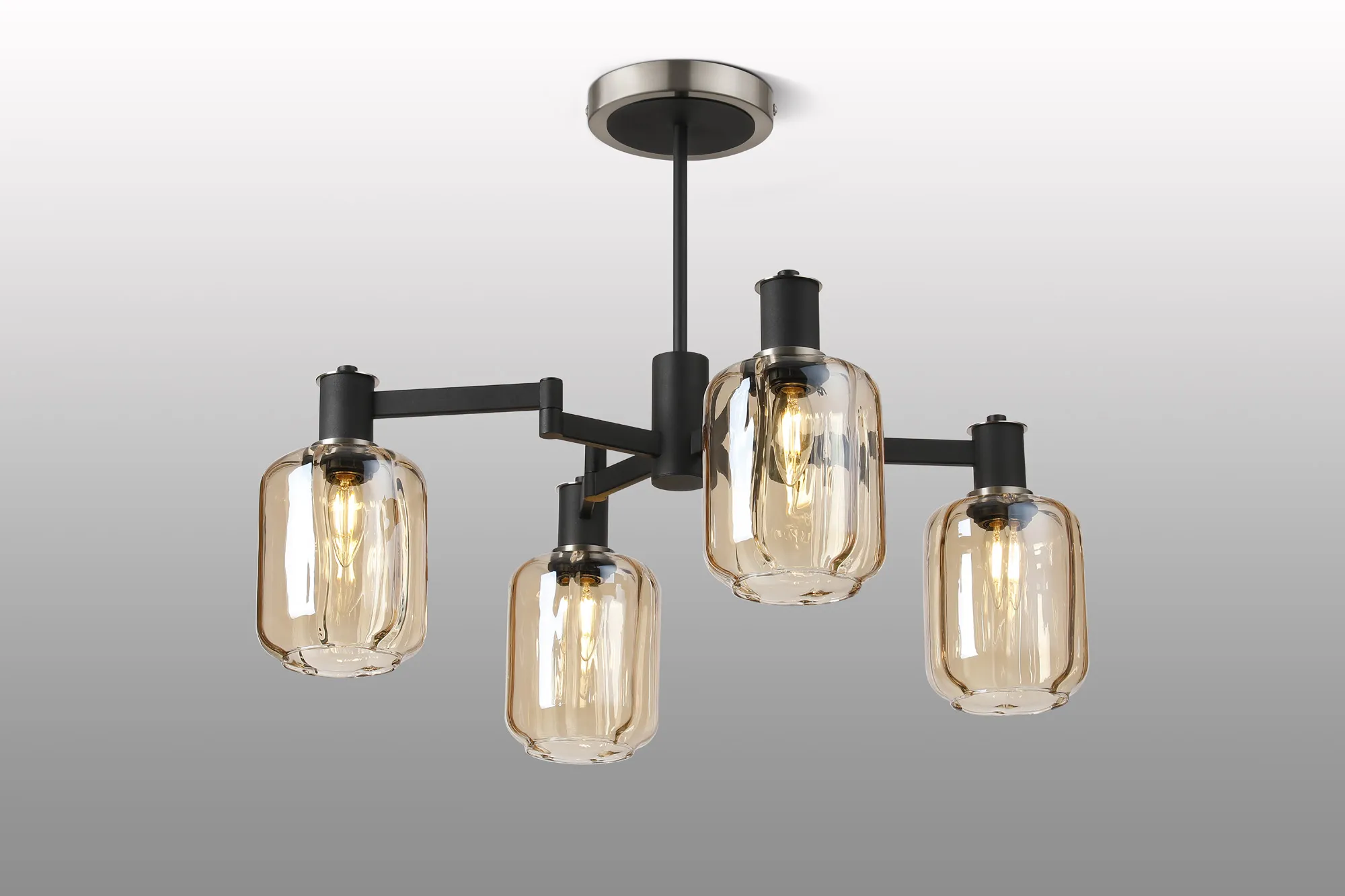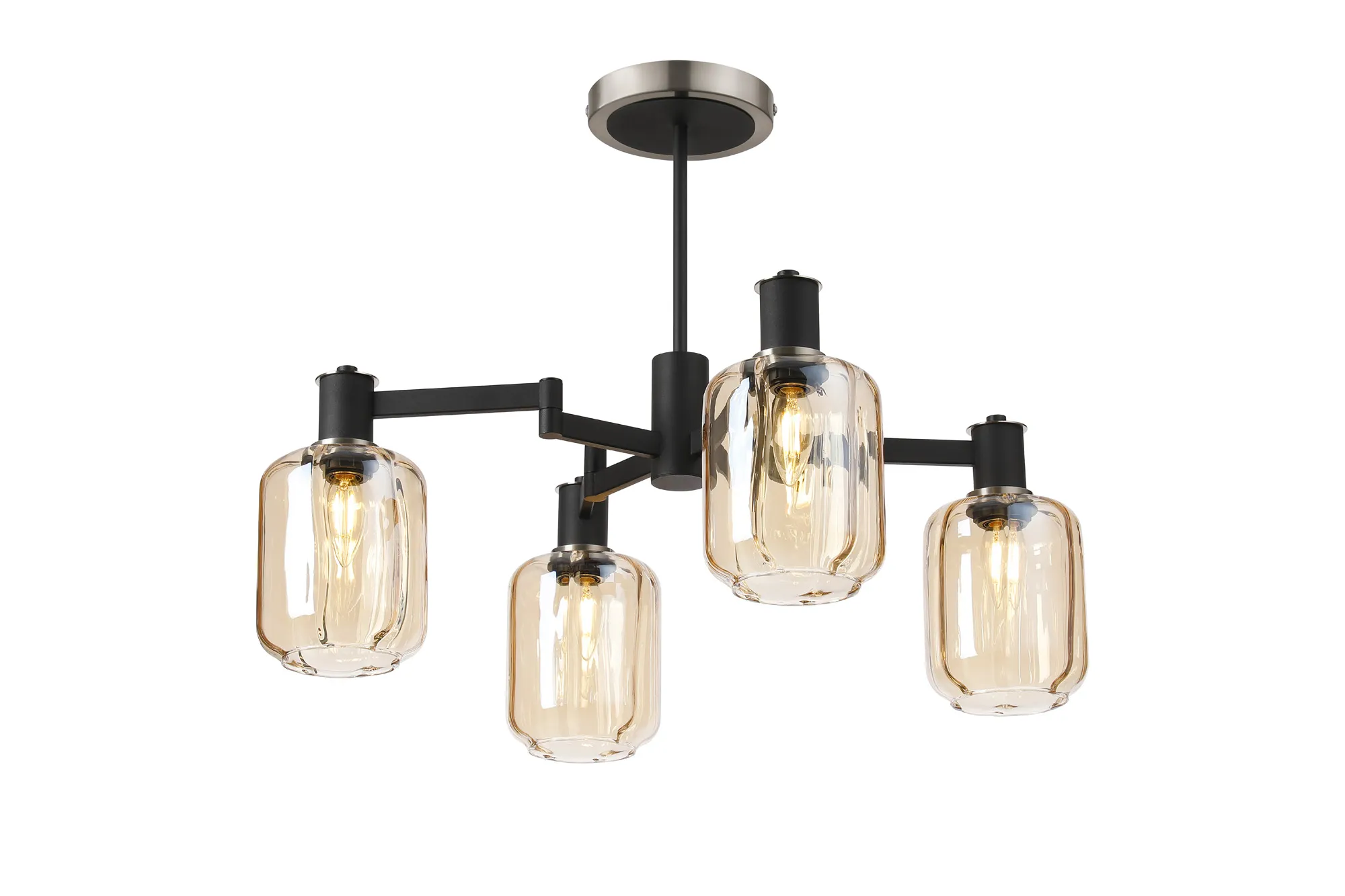 OTHER Alberni Swing Arm Semi Ceiling 4 x E14 Satin Nickel/Satin Black/Amber Striped Cylinder Glass