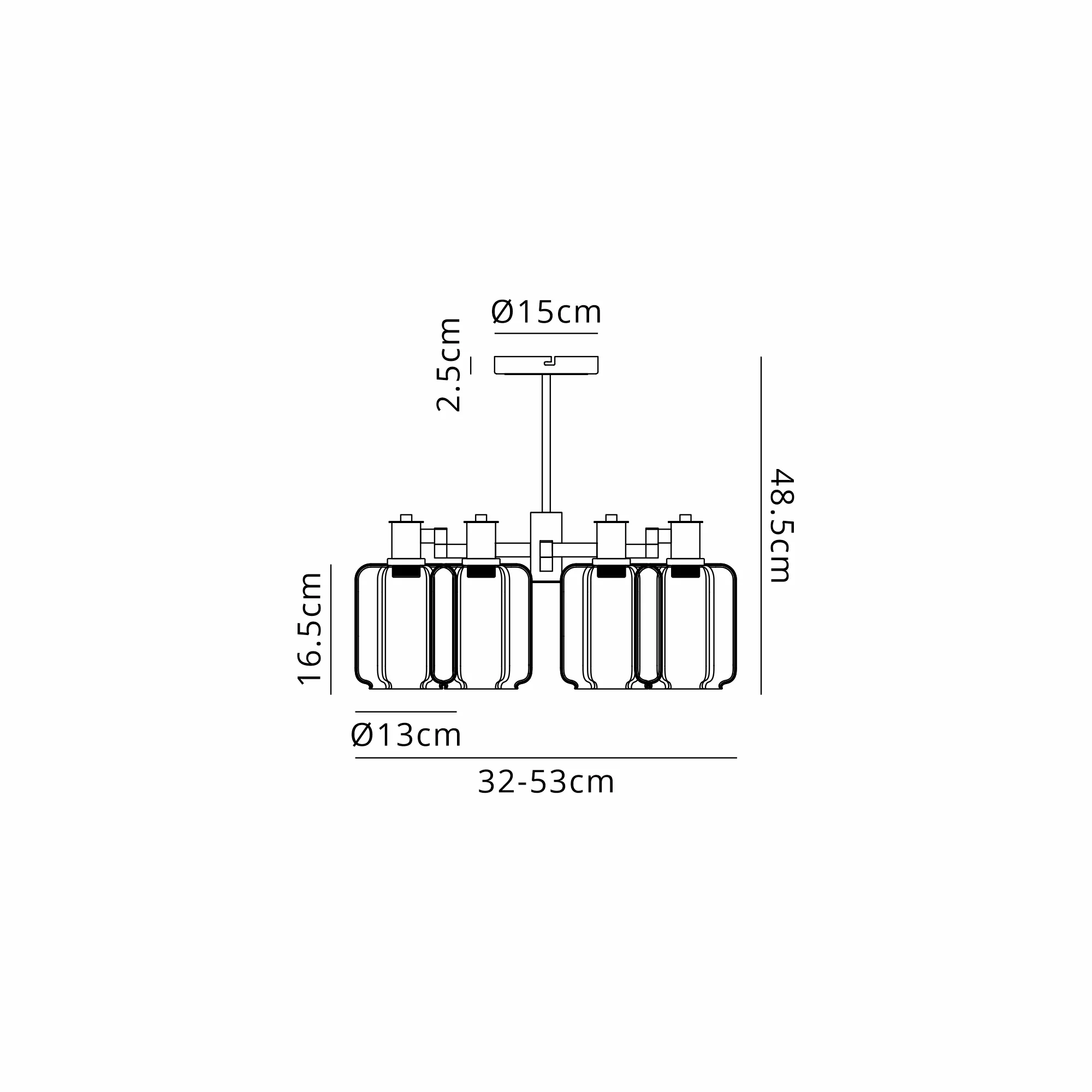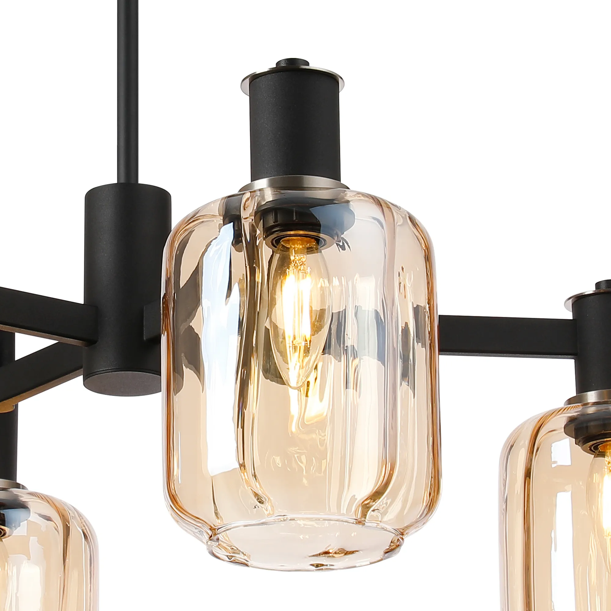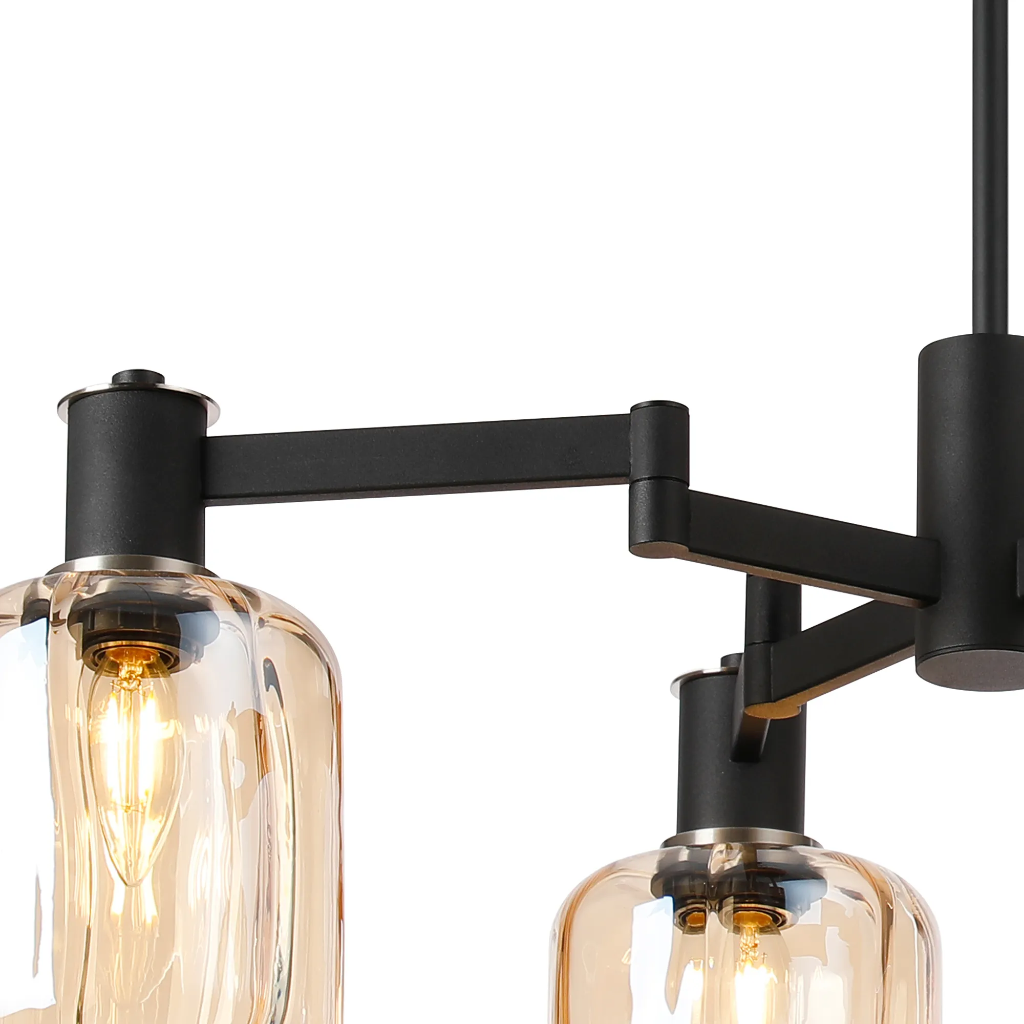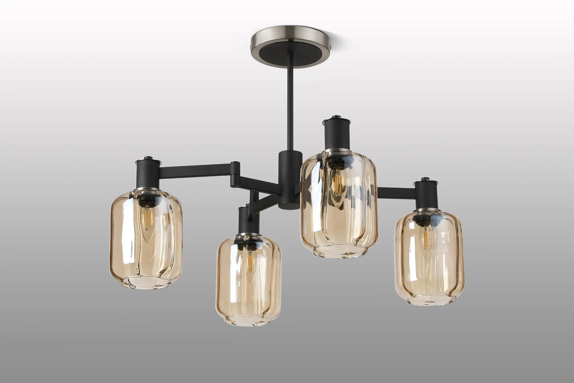 OTHER Alberni Swing Arm Semi Ceiling 4 x E14 Satin Nickel/Satin Black/Amber Striped Cylinder Glass