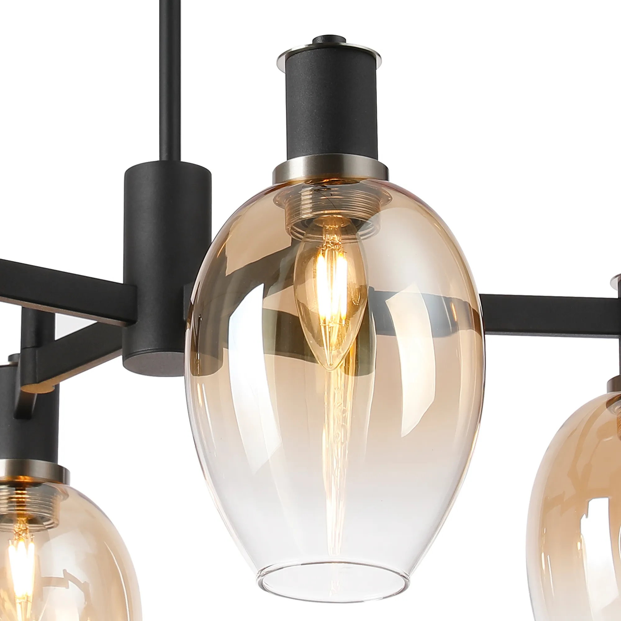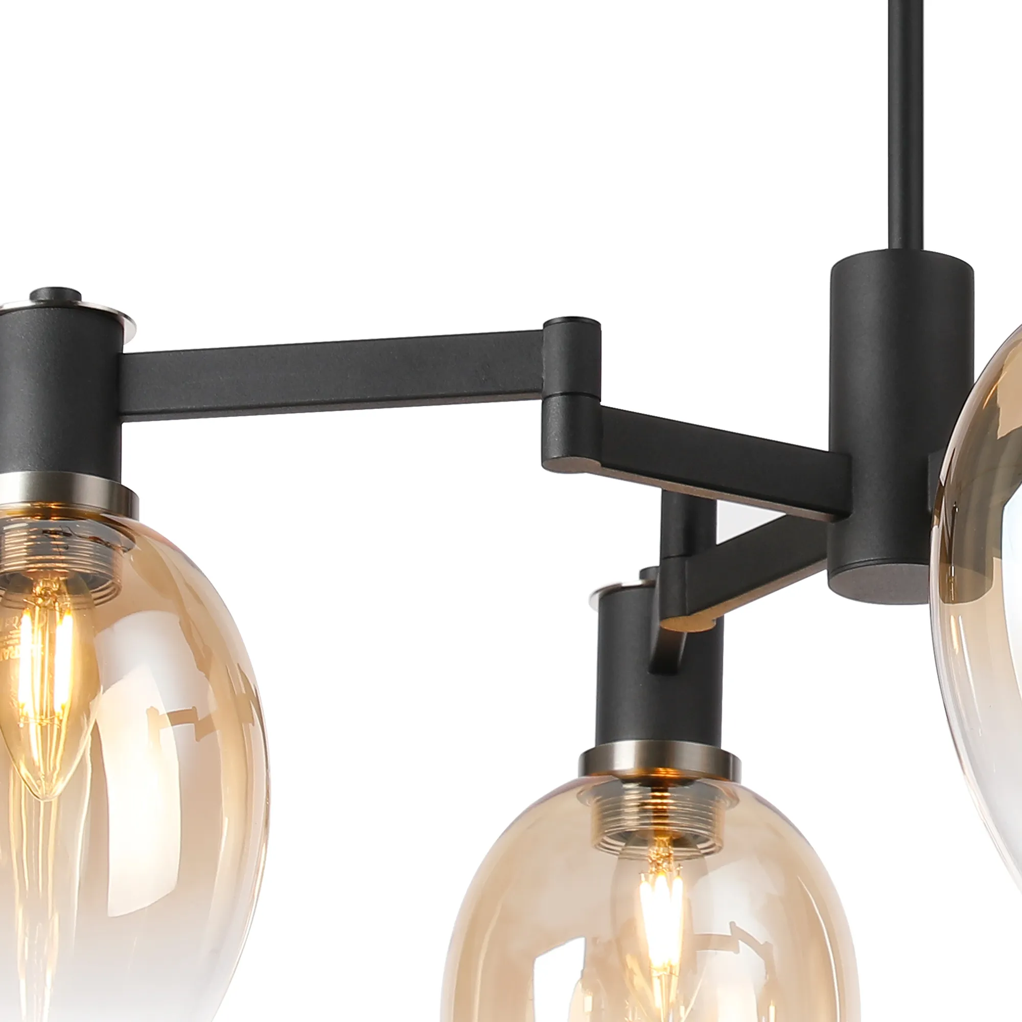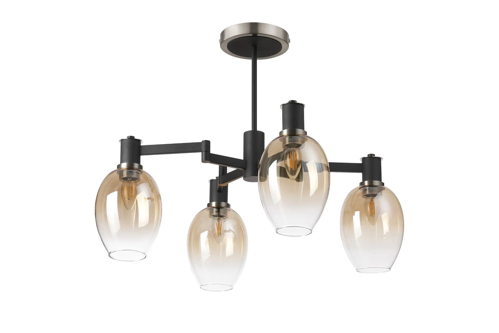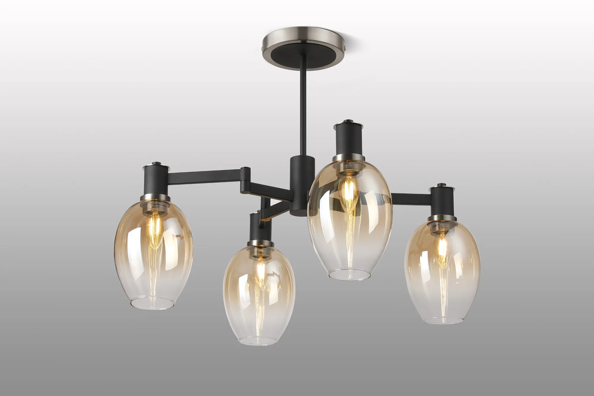 OTHER Alberni Swing Arm Semi Ceiling 4 x E14 Satin Nickel/Satin Black/Amber Fade Wine Glass Glass