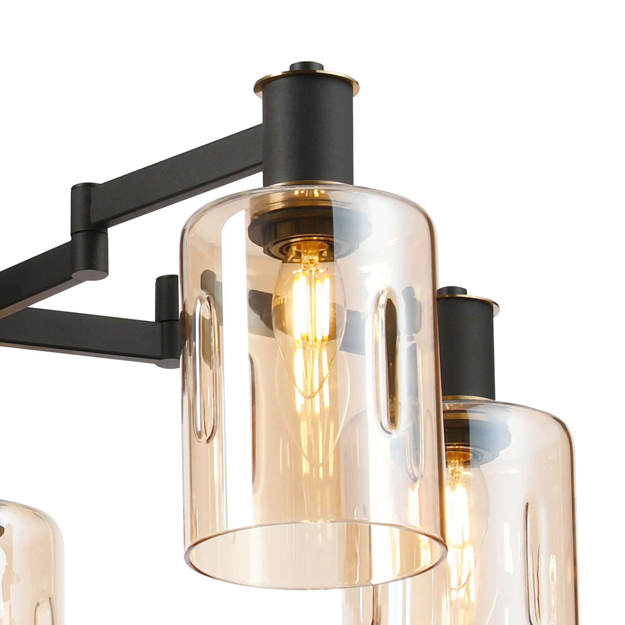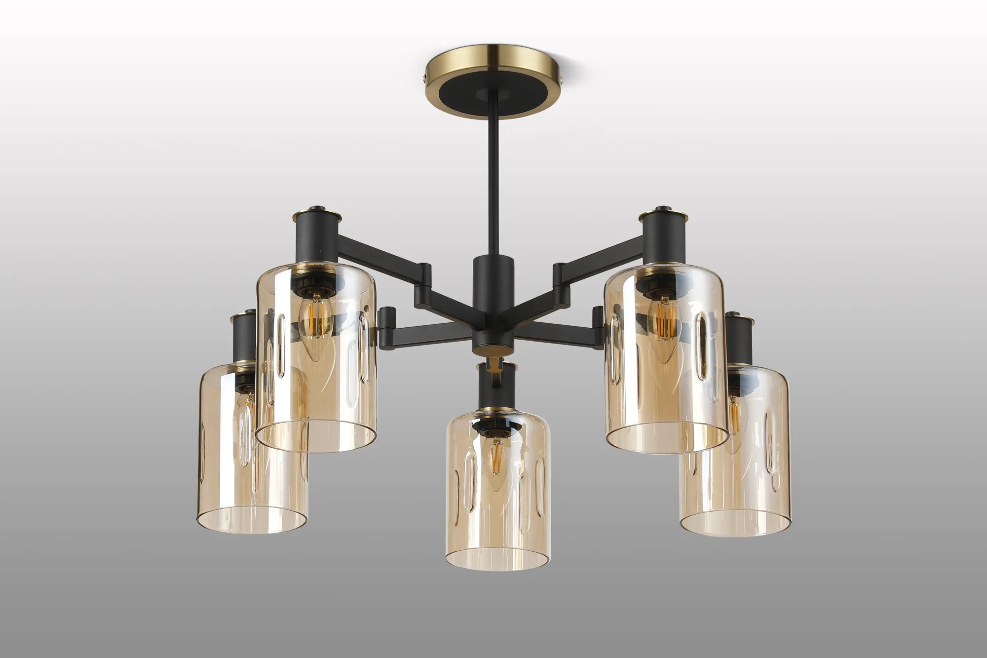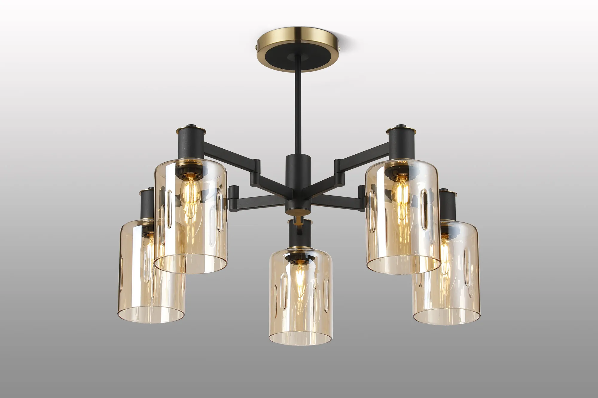 OTHER Alberni Swing Arm Semi Ceiling 5 x E14 Brass/Satin Black/Amber Uniform Dimple Cylinder Glass