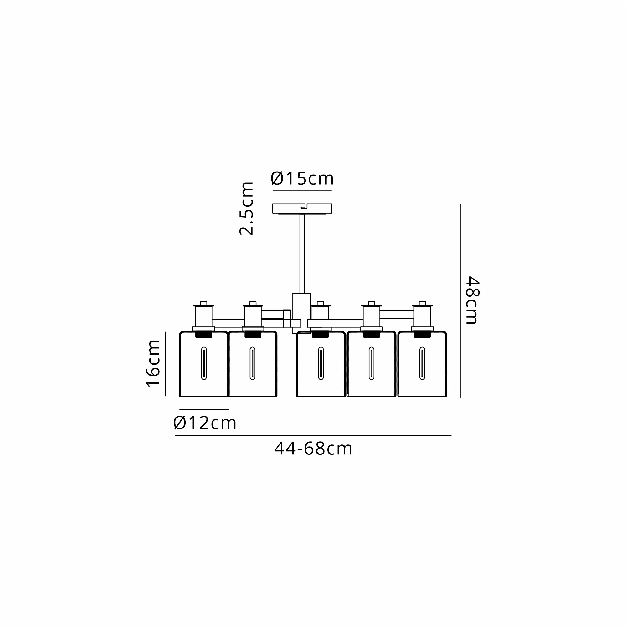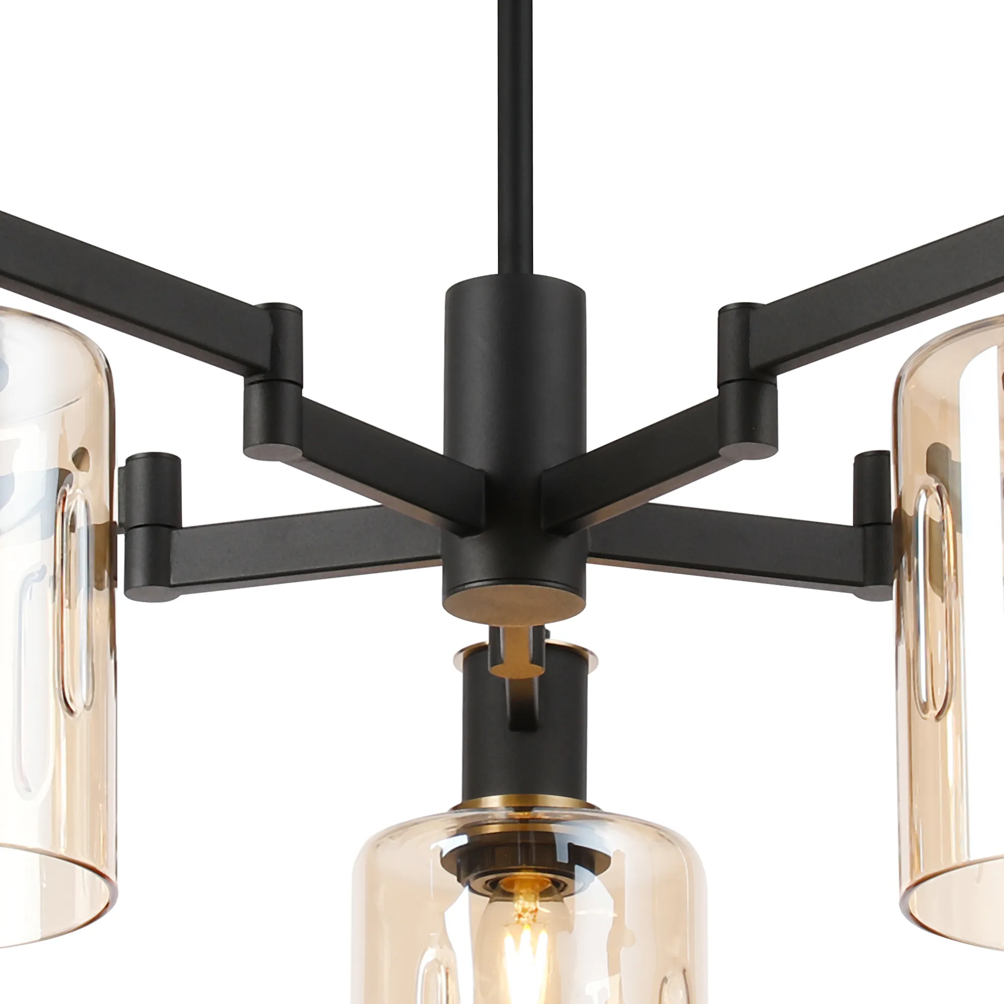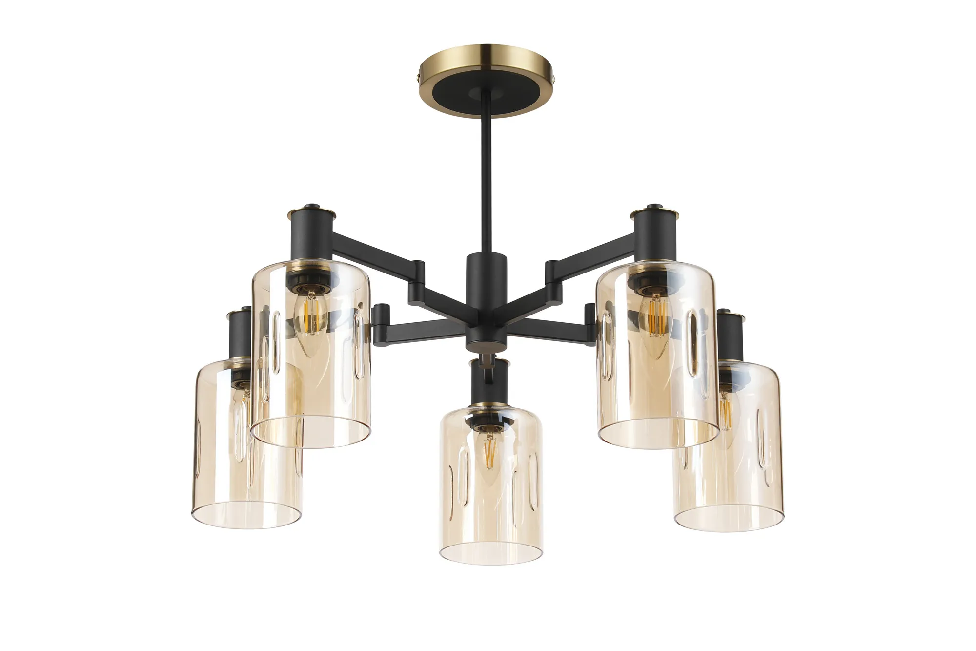 OTHER Alberni Swing Arm Semi Ceiling 5 x E14 Brass/Satin Black/Amber Uniform Dimple Cylinder Glass