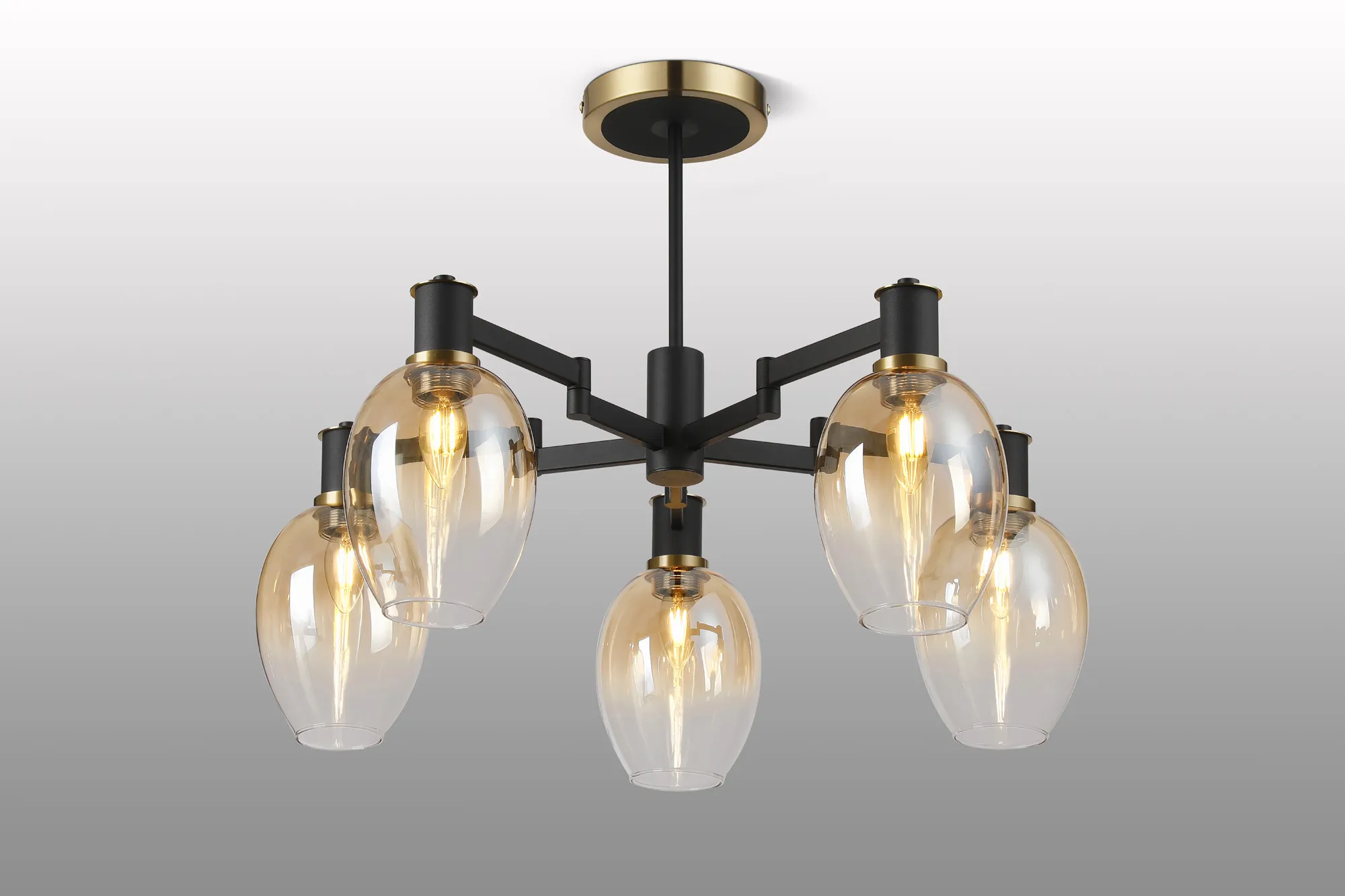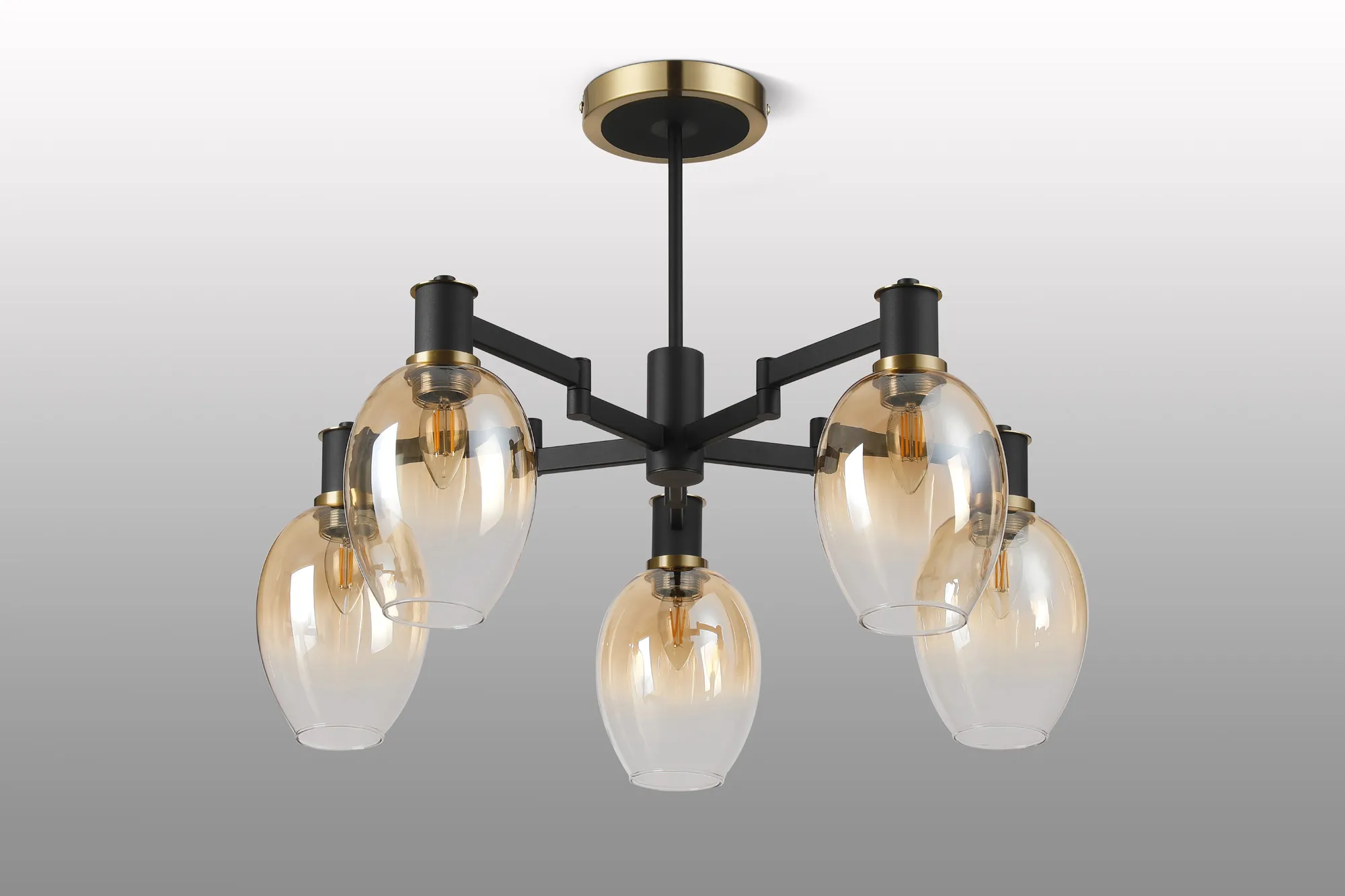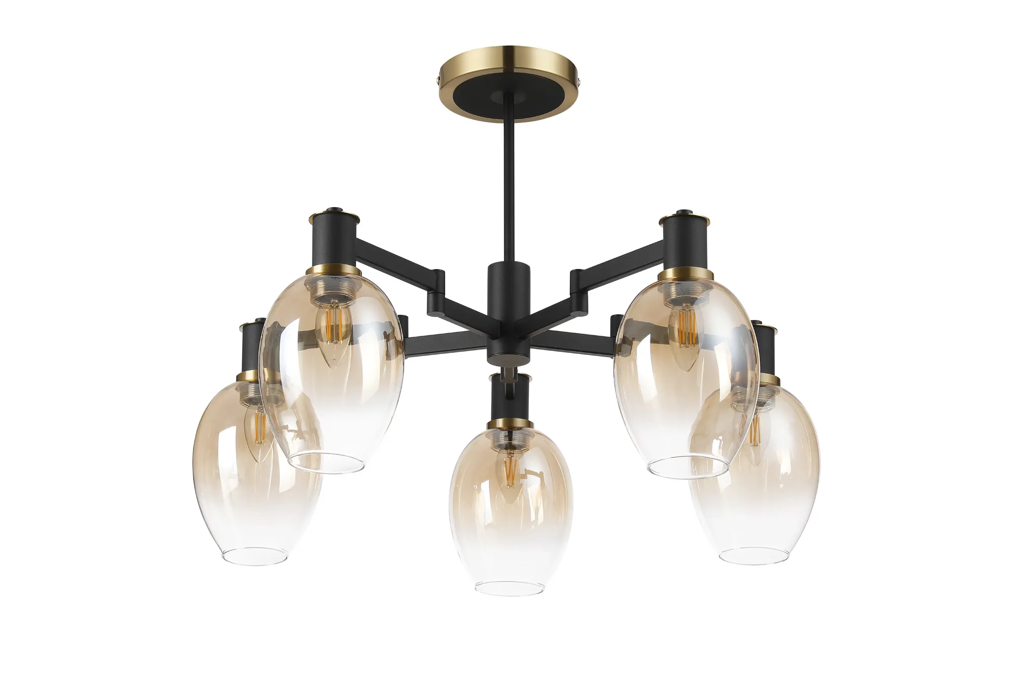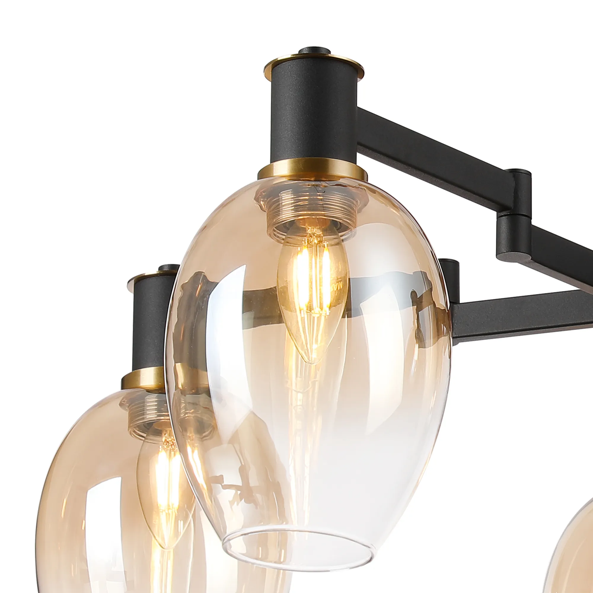 OTHER Alberni Swing Arm Semi Ceiling 5 x E14 Brass/Satin Black/Amber Fade Wine Glass Glass