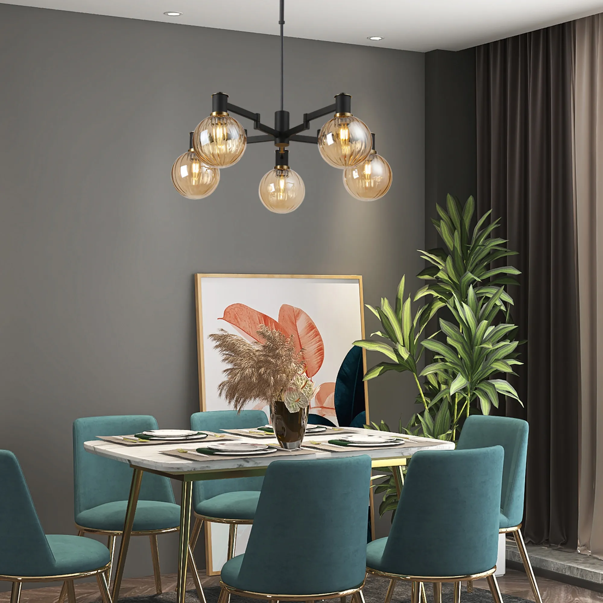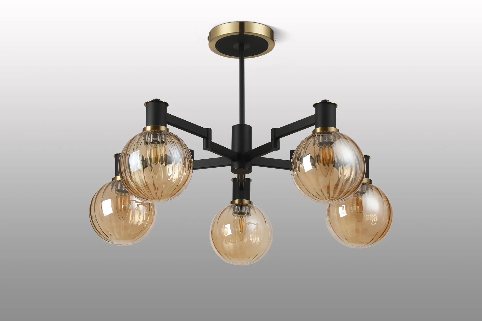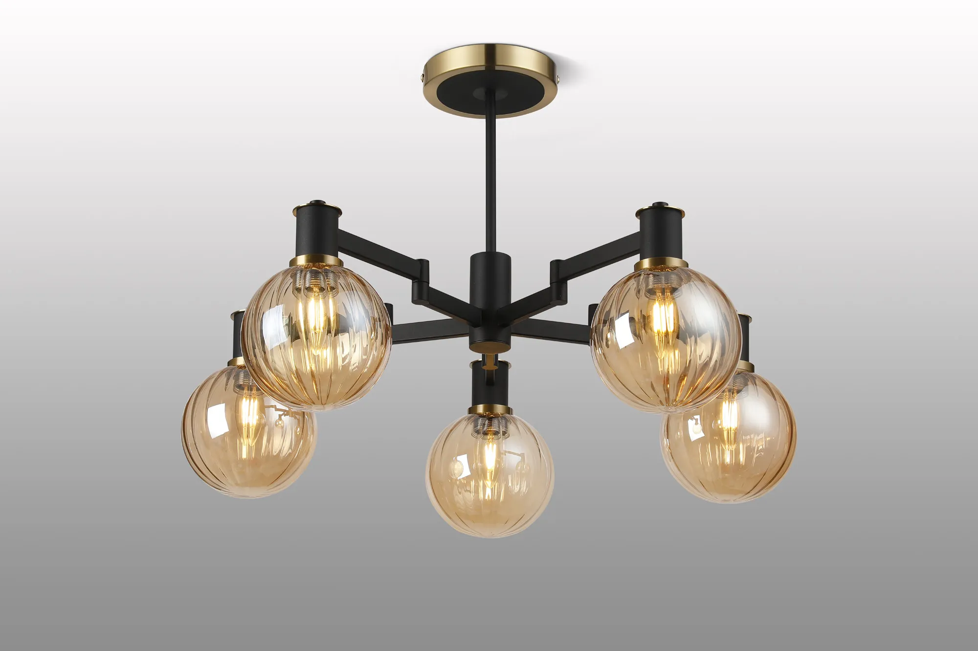 OTHER Alberni Swing Arm Semi Ceiling 5 x E14 Brass/Satin Black/Amber Plated Round Segment Glass