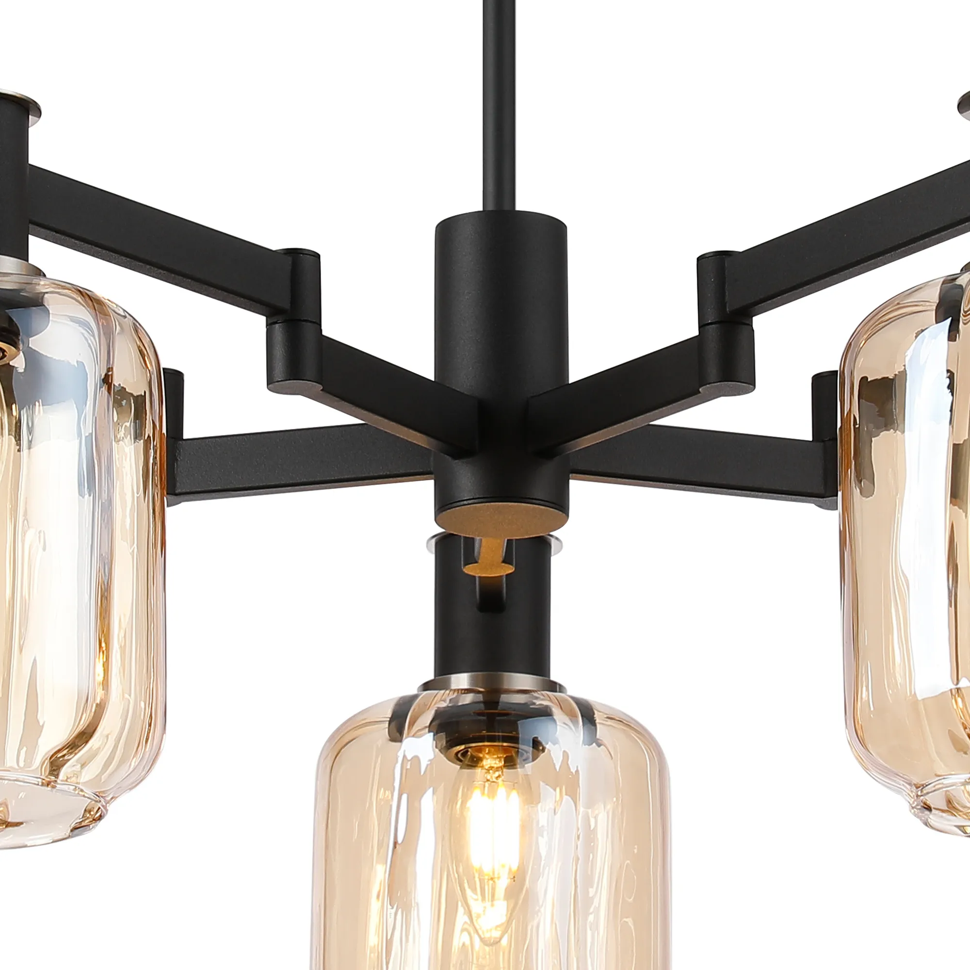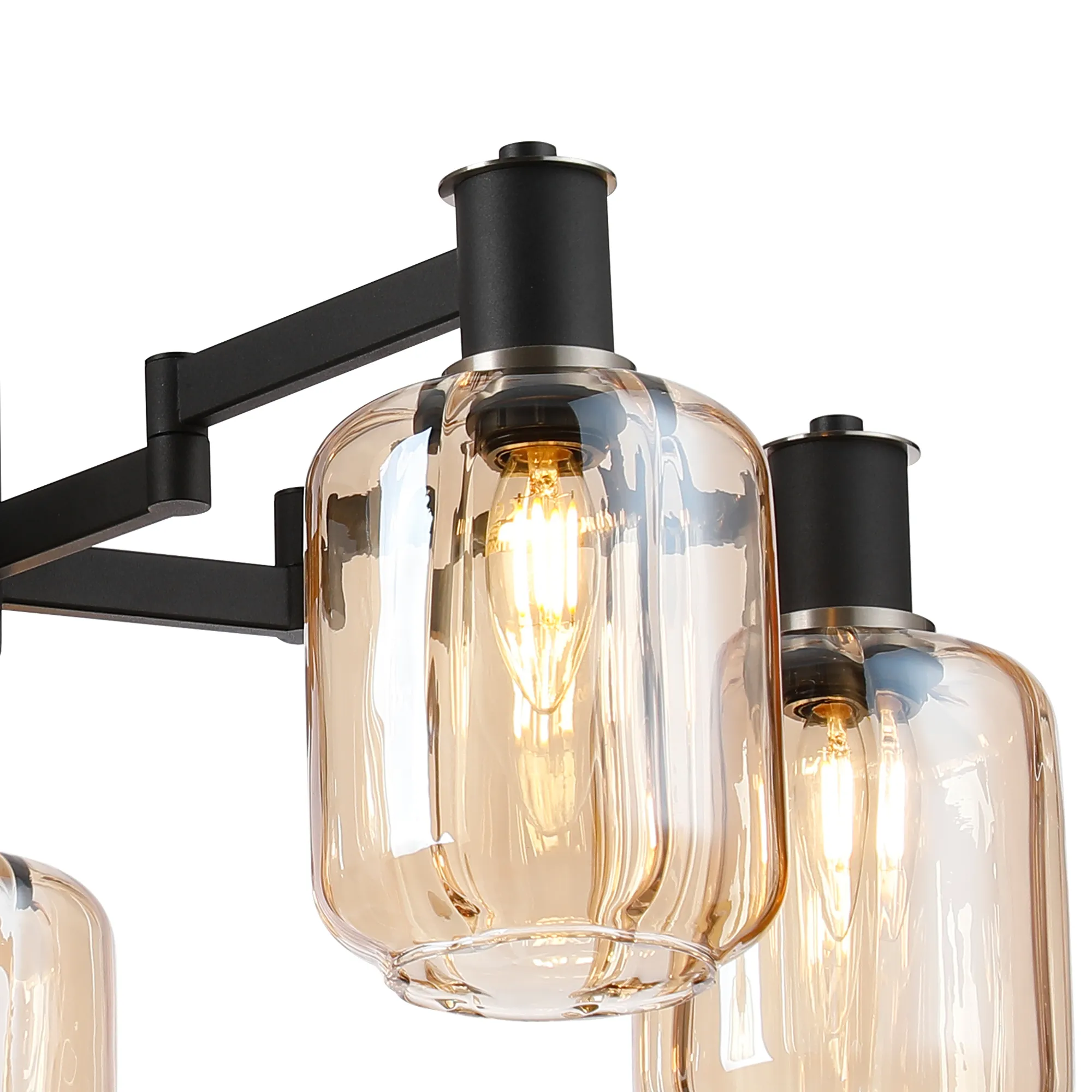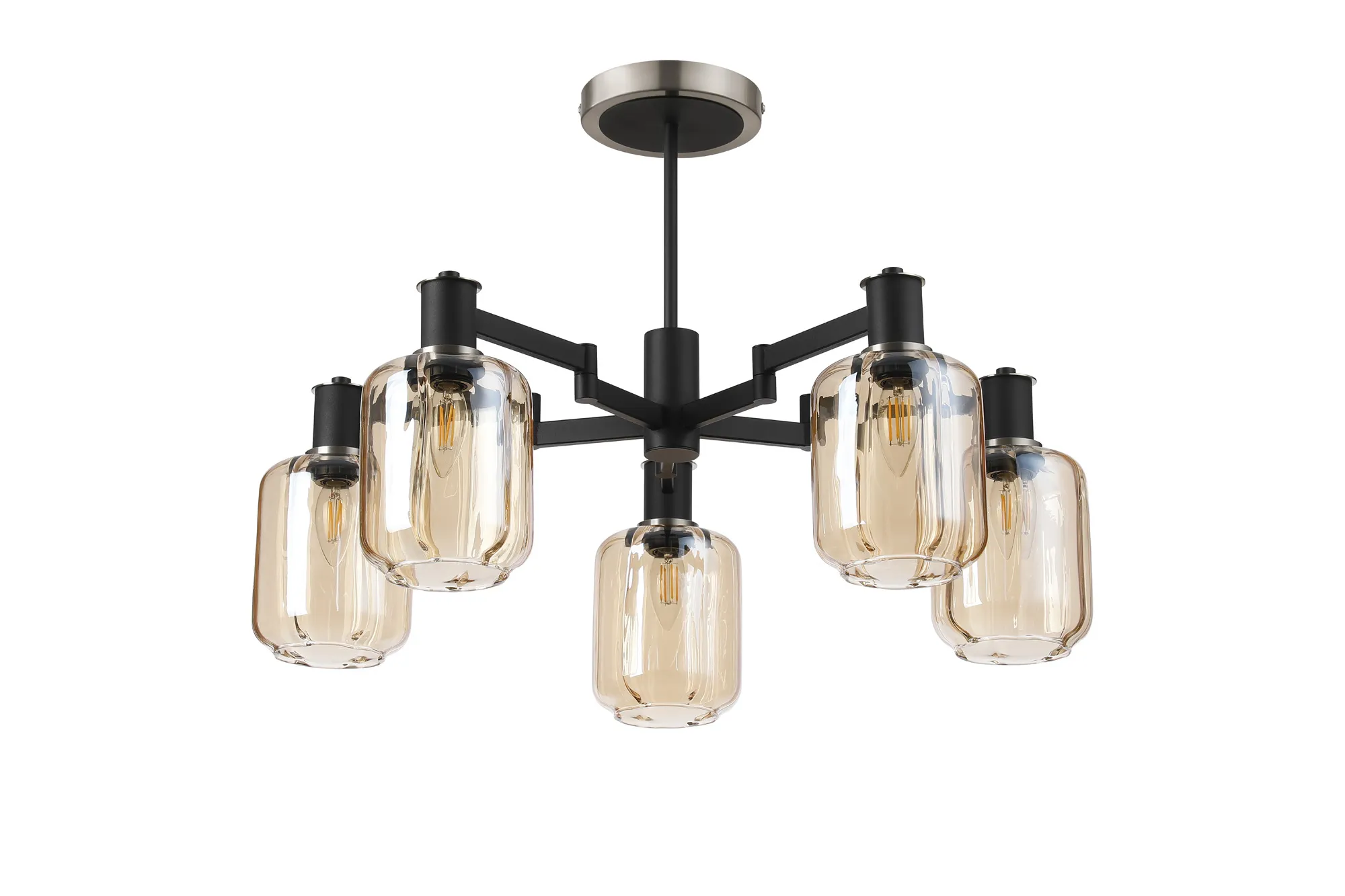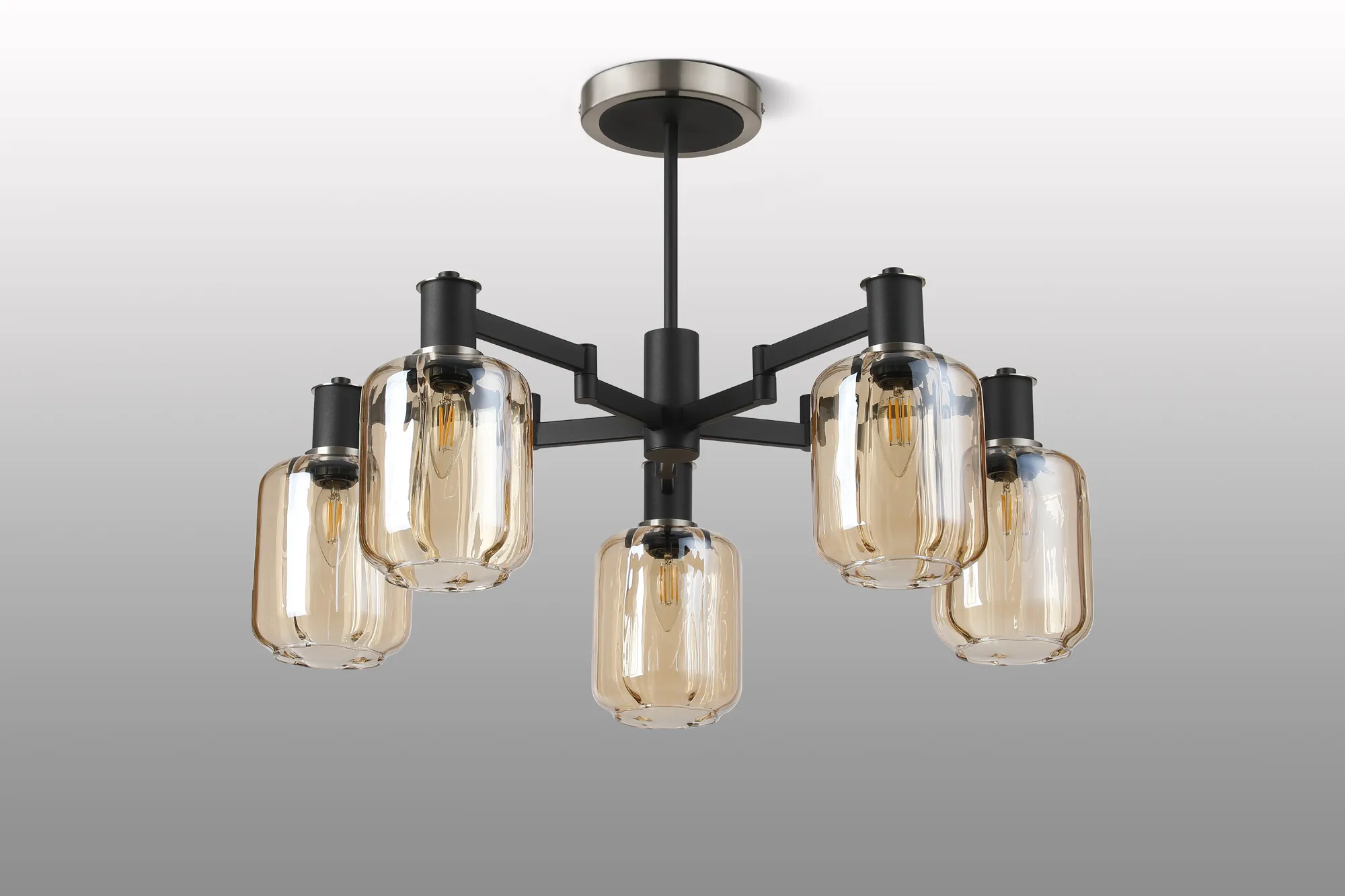 OTHER Alberni Swing Arm Semi Ceiling 5 x E14 Satin Nickel/Satin Black/Amber Striped Cylinder Glass