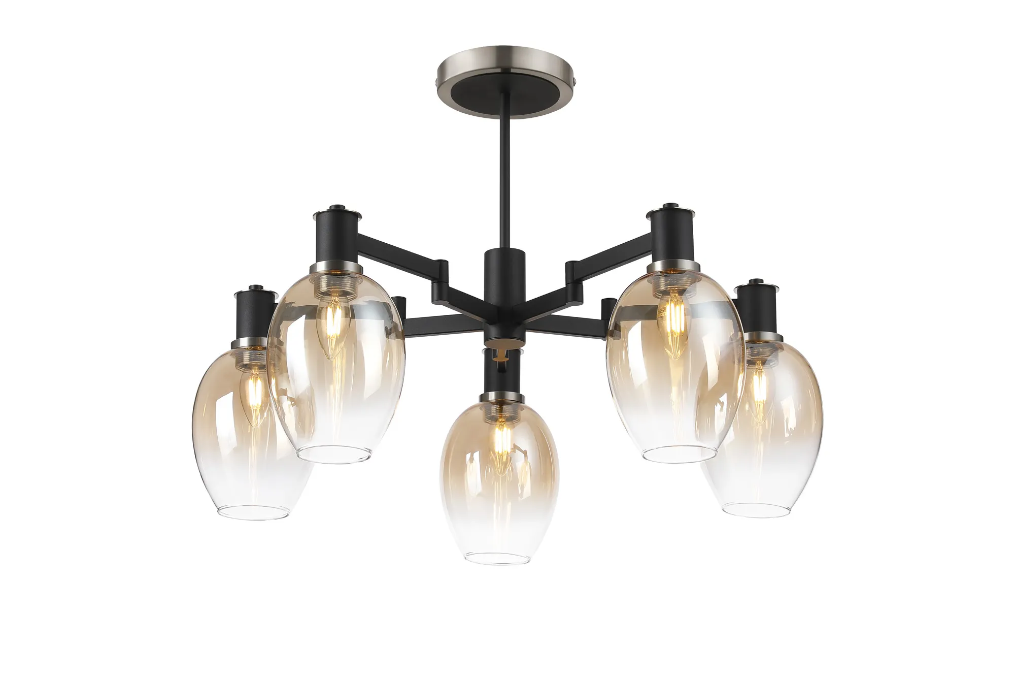 Alberni presents a fully comprehensive collection of lighting solutions from telescopic pendants and flush fitting to complementing wall, table and floor lamps. The neutral sand black colour finish is accentuated by either brass or satin nickel components adding a touch of opulence. A key feature throughout this range are the adjustable arms hosting each E14 lamp holder. This function allows modern adaptability of a traditional structural design. Also included, to further enhance your chosen lighting, is a beautiful selection of clear, amber or smoke artisanal glass.