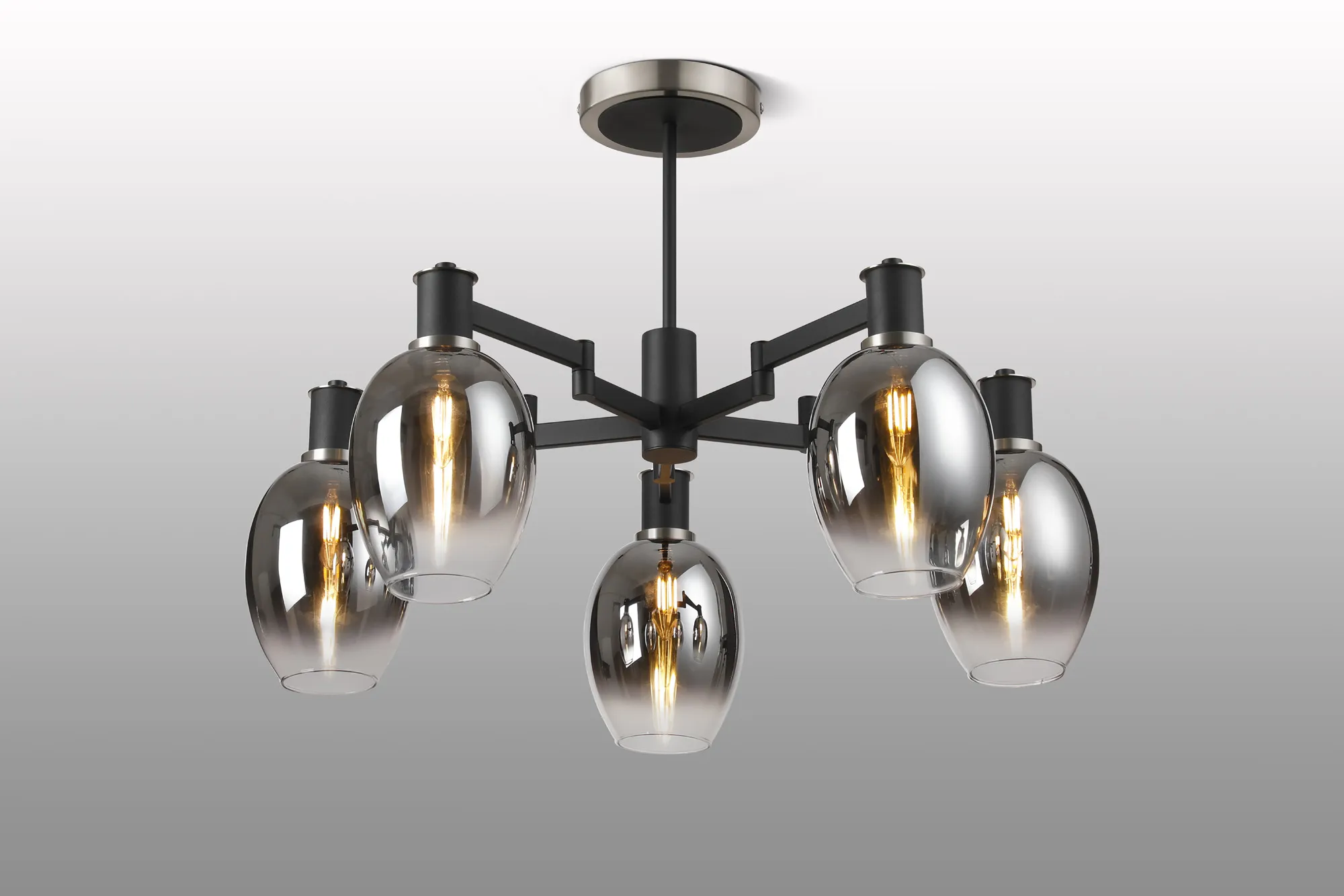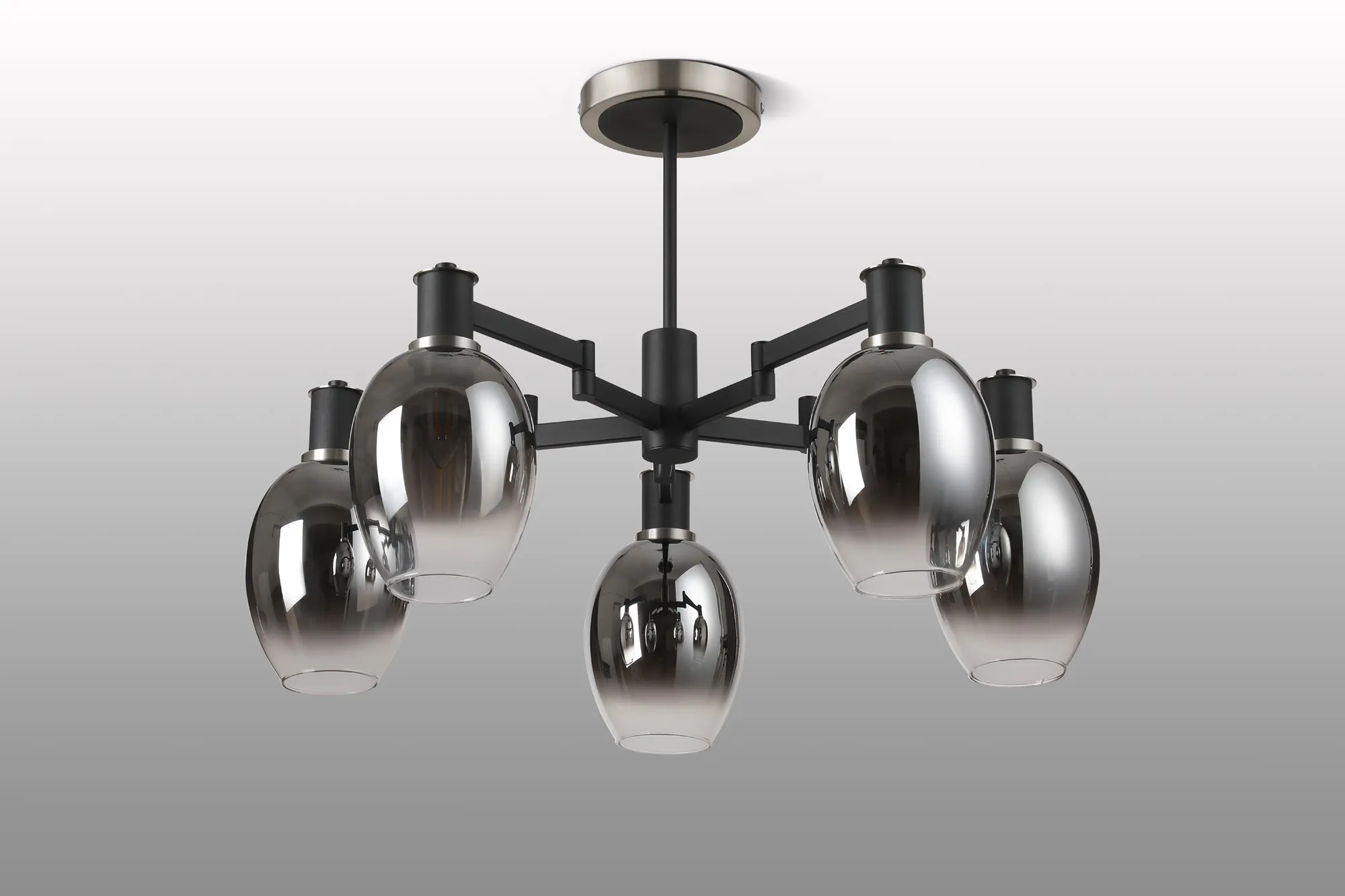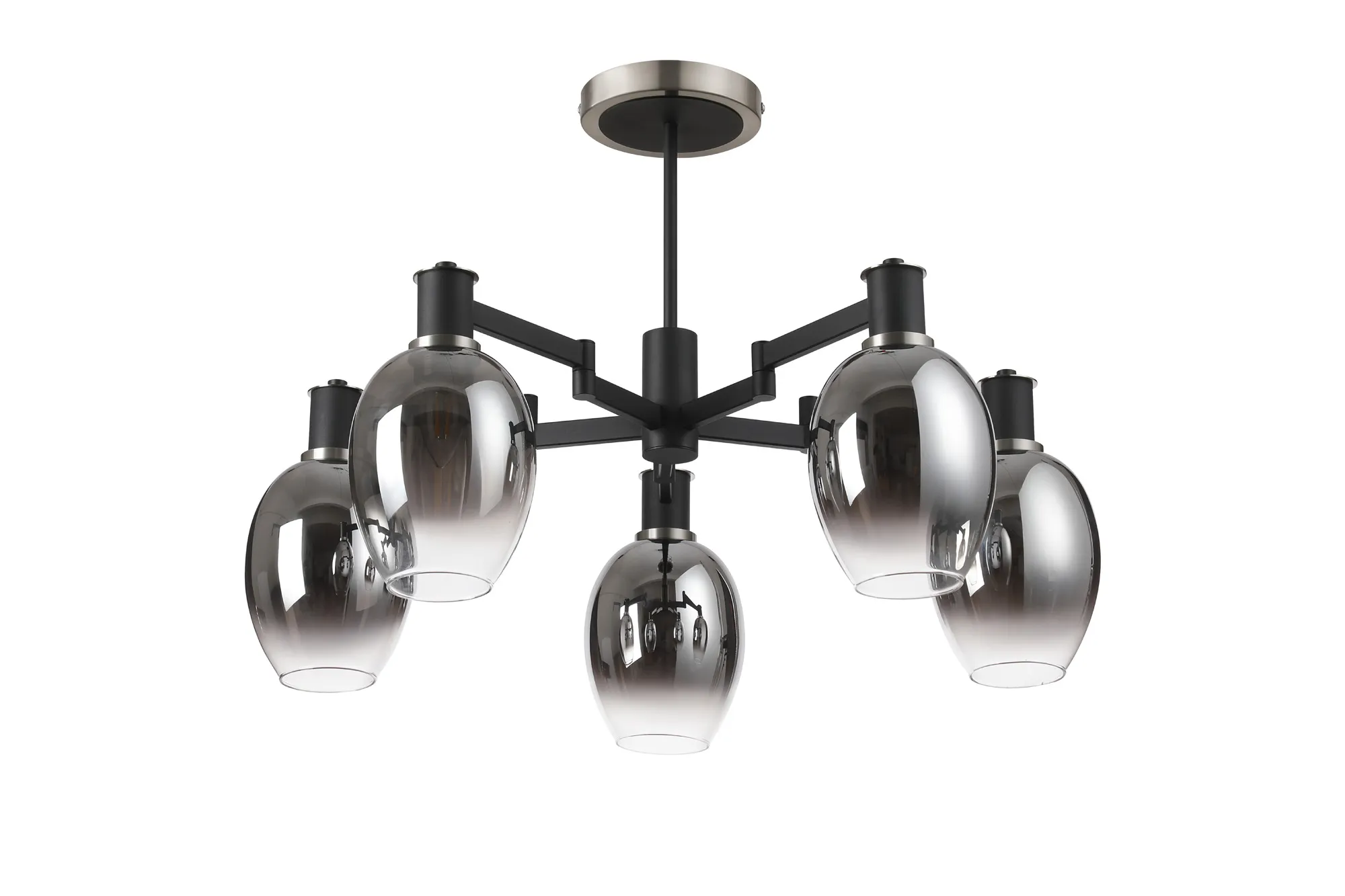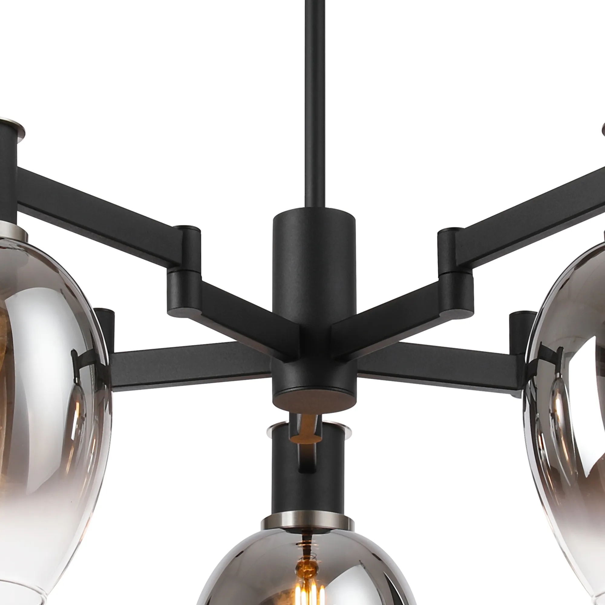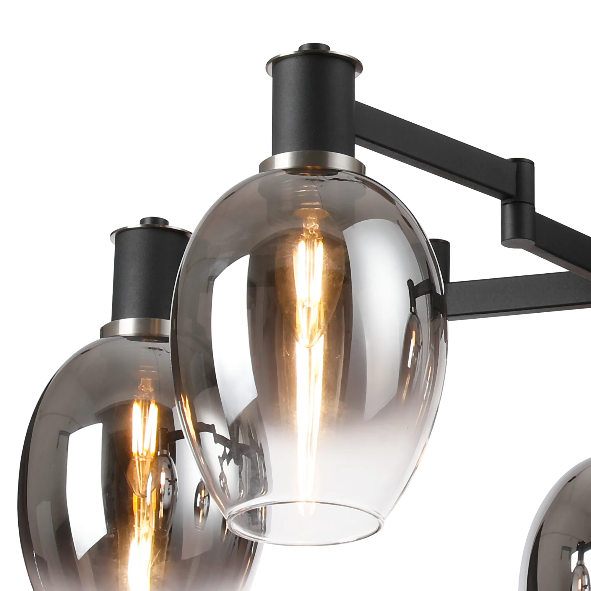 Alberni Swing Arm Telescopic Linear Pendant 6 x E14 Satin Nickel/Satin Black/Smoke Fade Wine Glass Glass